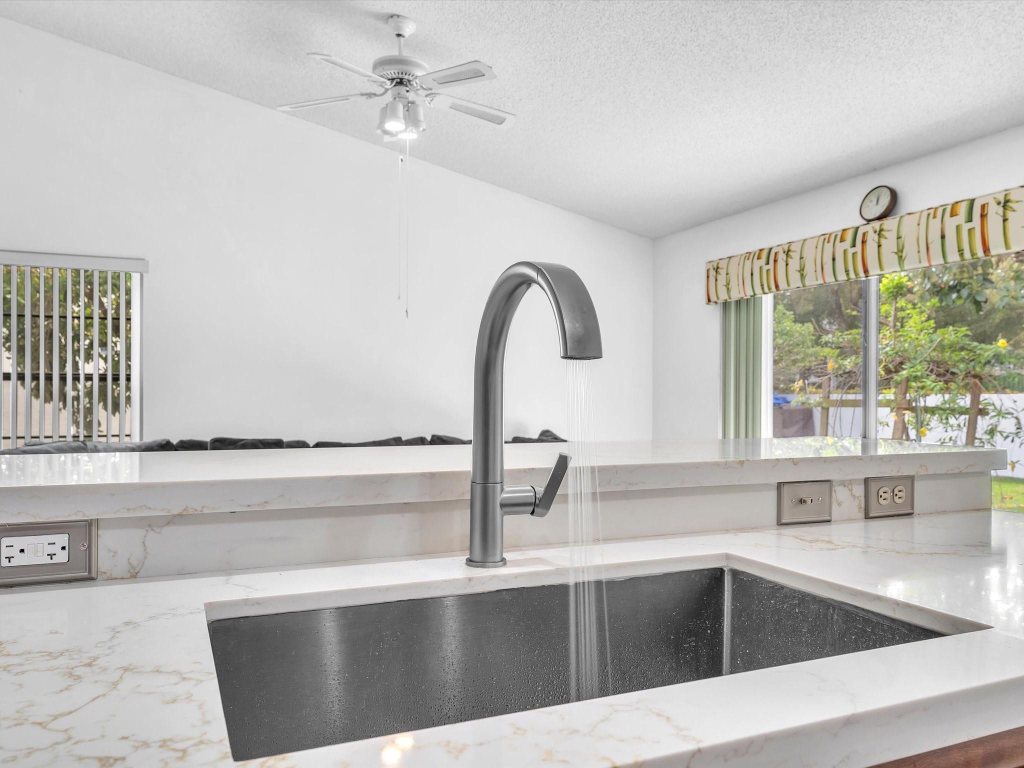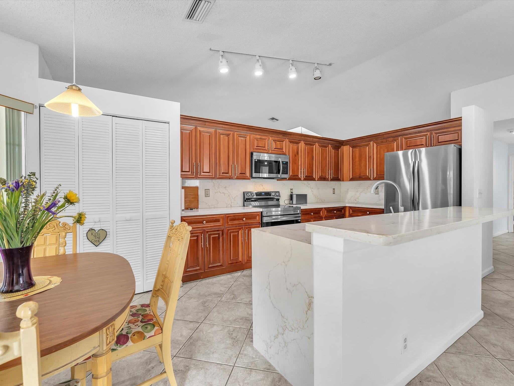 Why pay for High fruit prices when you can pick it from your own yard? Enjoy Julie mangoes, avocados, ackee, and sweet sap without leaving home. This home is in the highly desirable neighborhood of FOX RUN. Inside, you’ll find a BRAND-NEW KITCHEN (2025) with BRAND NEW stainless steel appliances (2025). The homes exterior has been freshly painted from top to bottom. NEWER BARREL TILE ROOF (2016). The split floor plan means extra privacy, and the primary bathroom has both a Roman tub and a walk-in shower. Home has vaulted ceilings and Low Dues at only $211 Per Quarter. UNBEATABLE convenience with Central Park, Publix, Fresh Market, and Aldi all just a three-minute drive away. Sawgrass Mall and Volunteer Park is less than a mile from your doorstep.