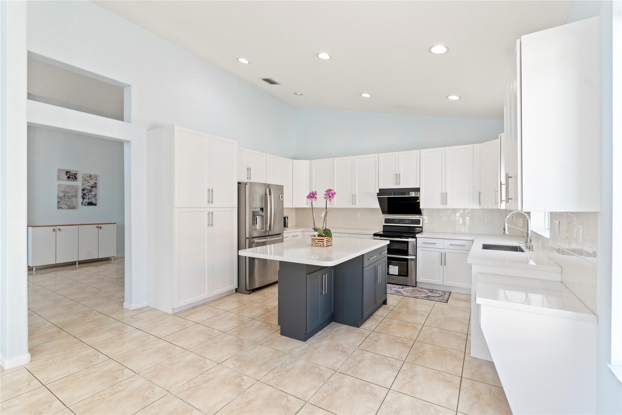 Impeccable and bright one story house with upgraded kitchen, quartz countertops, new bathroom, impact windows and doors, new washer and dryer, wood and tile floors throughout the property. Enjoy the screened patio surrounded with mango ,avocado and more fruit trees with a peaceful lake view. Association fee includes internet, cable, alarm and the facilities of a 5 star clubhouse with fitness center, tennis , basketball, volleyball courts, heated pool.