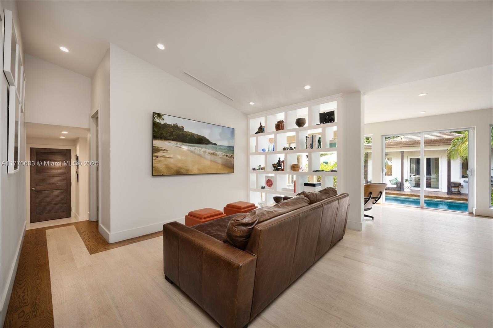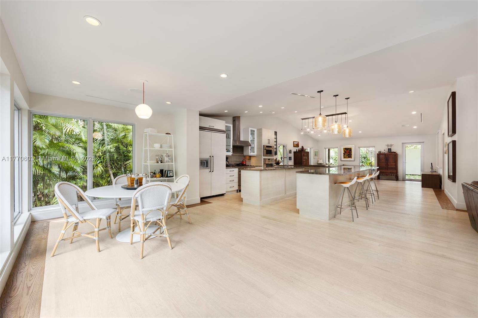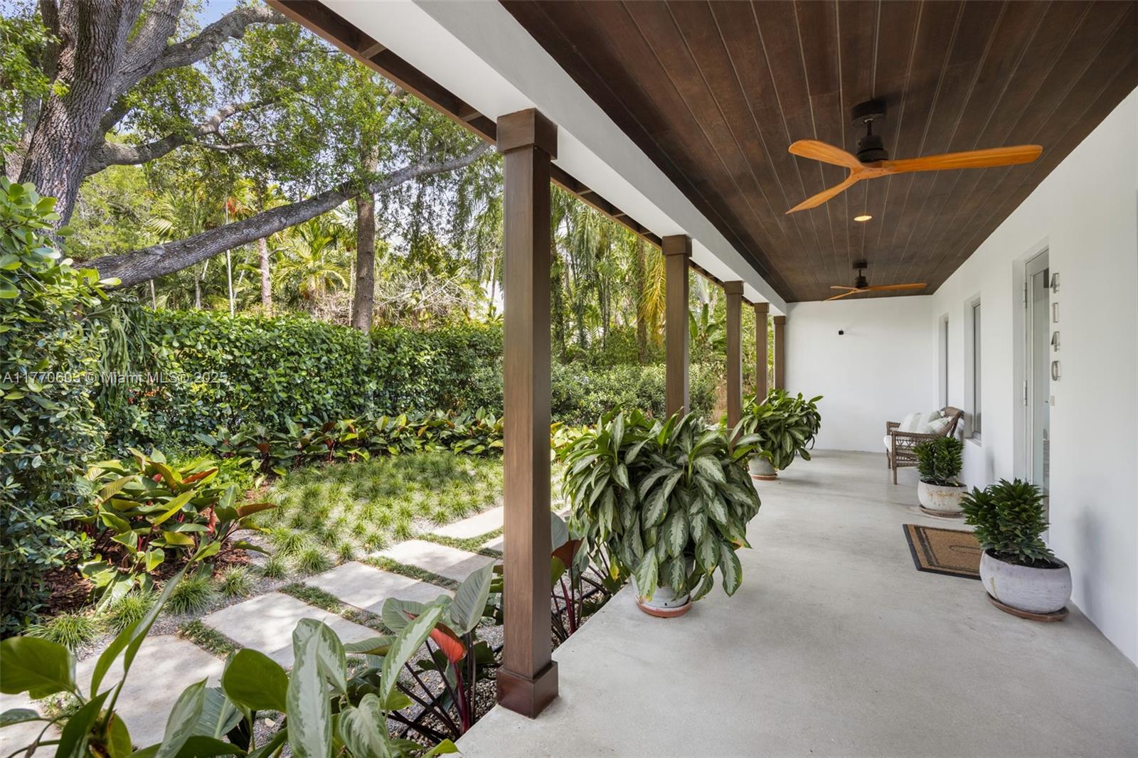 Captivating home with a coastal contemporary vibe. Totally redesigned, rebuilt & expanded by Brillhart Architecture in 2014. Experience an ultra-private lifestyle behind tall privacy hedges on tree-canopied Battersea Rd. Enter into light-filled living spaces featuring high ceilings, bleached wide plank oak flooring and abundant windows with views of lush tropical greenery. Expansive, modern style kitchen offers an island, high-end appliances & breakfast area. The stunning, oversized primary suite w/sitting area & spa-like bath overlook the lush, tropical garden. Magical outdoor spaces offer a tranquil pool & a free-standing cabana w/bathroom (potential guest suite). 4161 SFLA. (High sea-level elevation-not a flood zone). Close to the Grove village and to bayfront parks & marinas.