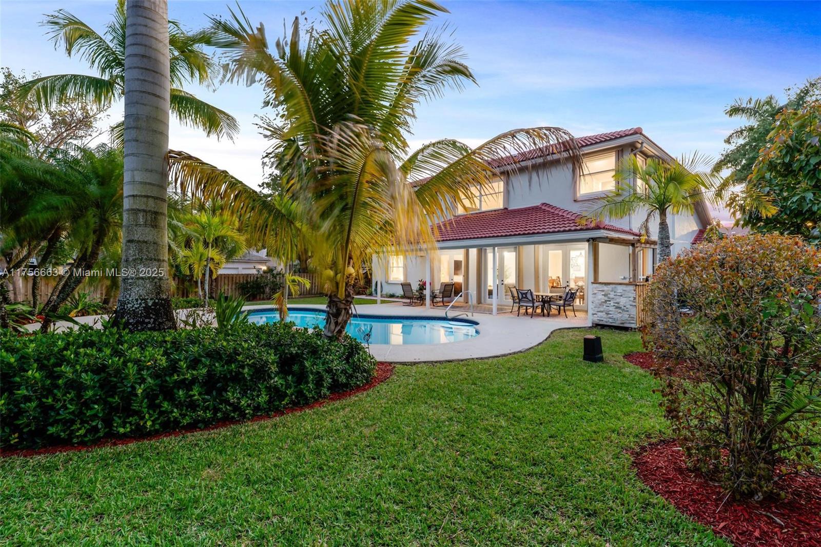 RARELY AVAILABLE SANTA BARBARA MODEL ON A PREMIUM CORNER LOT IN EXCLUSIVE PEMBROKE FALLS! THIS MOVE-IN READY OPEN FLOOR PLAN HOME COMBINES SPACE & STYLE WITH THE ADDED CONVENIENCE OF A CIRCULAR DRIVEWAY FOR AMPLE PARKING * NEW 2024 ROOF, UPDATED KITCHEN & BATHROOMS ADD A MODERN TOUCH * GOURMET KITCHEN FEATURES GRANITE COUNTERTOPS, REAL WOOD CABINETRY & STAINLESS STEEL APPLIANCES * 1ST FLOOR OFFERS A CONVENIENT BEDROOM & UPDATED CABANA BATH * UPSTAIRS YOU'LL FIND A VERSATILE LOFT OR 5TH BEDROOM & A SPACIOUS MASTER SUITE WITH TWO WALK-IN CLOSETS & LUXURIOUSLY UPDATED BATHROOM * EXPANSIVE PRIVATE BACKYARD BOASTS A POOL & COVERED PATIO, IDEAL FOR ENTERTAINING & RELAXATION * GATED COMMUNITY WITH NATURAL GAS & RESORT-STYLE AMENITIES * HOA INC. CABLE, FIBER OPTIC INTERNET, 24HR SECURITY & MORE!