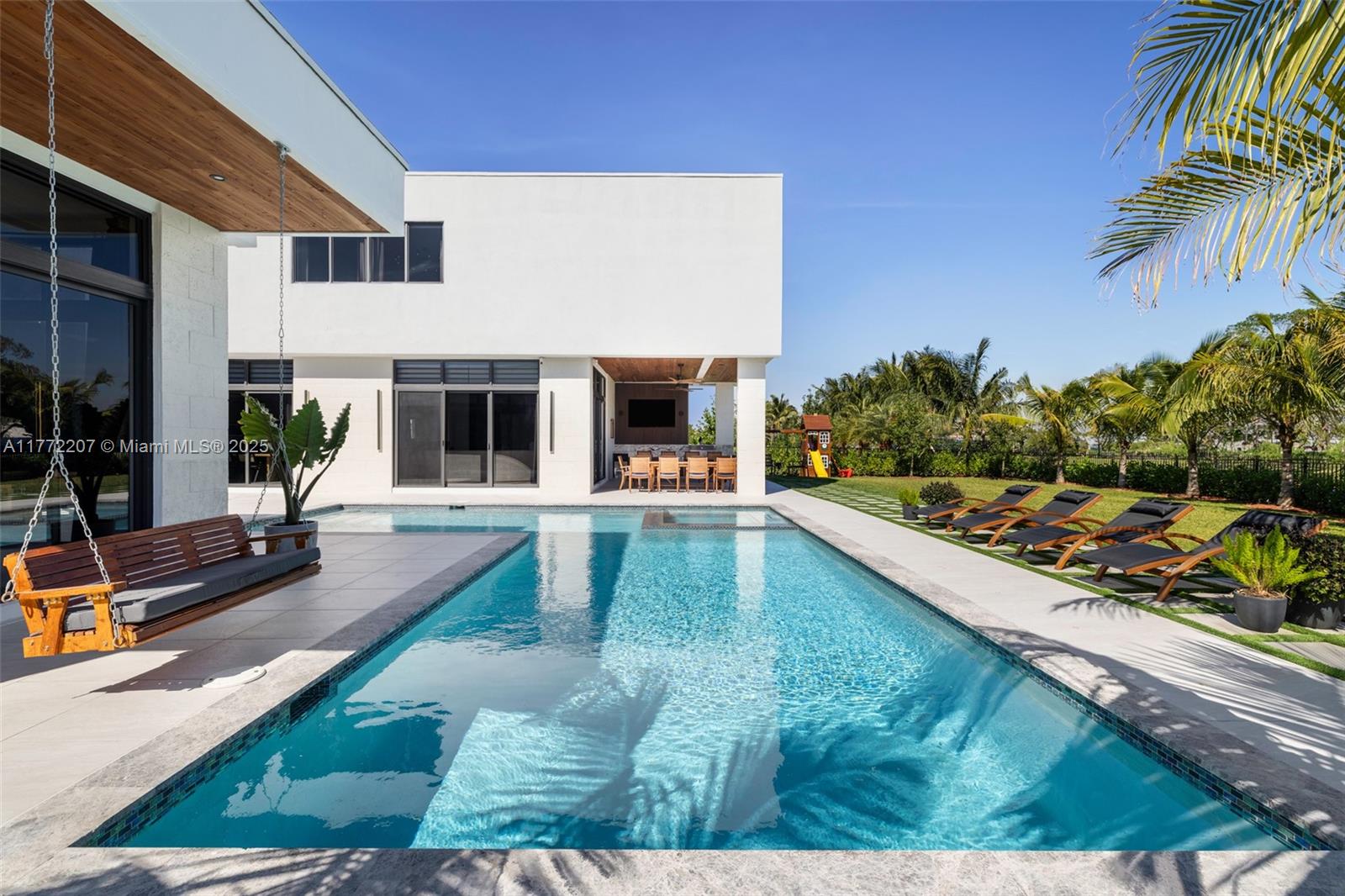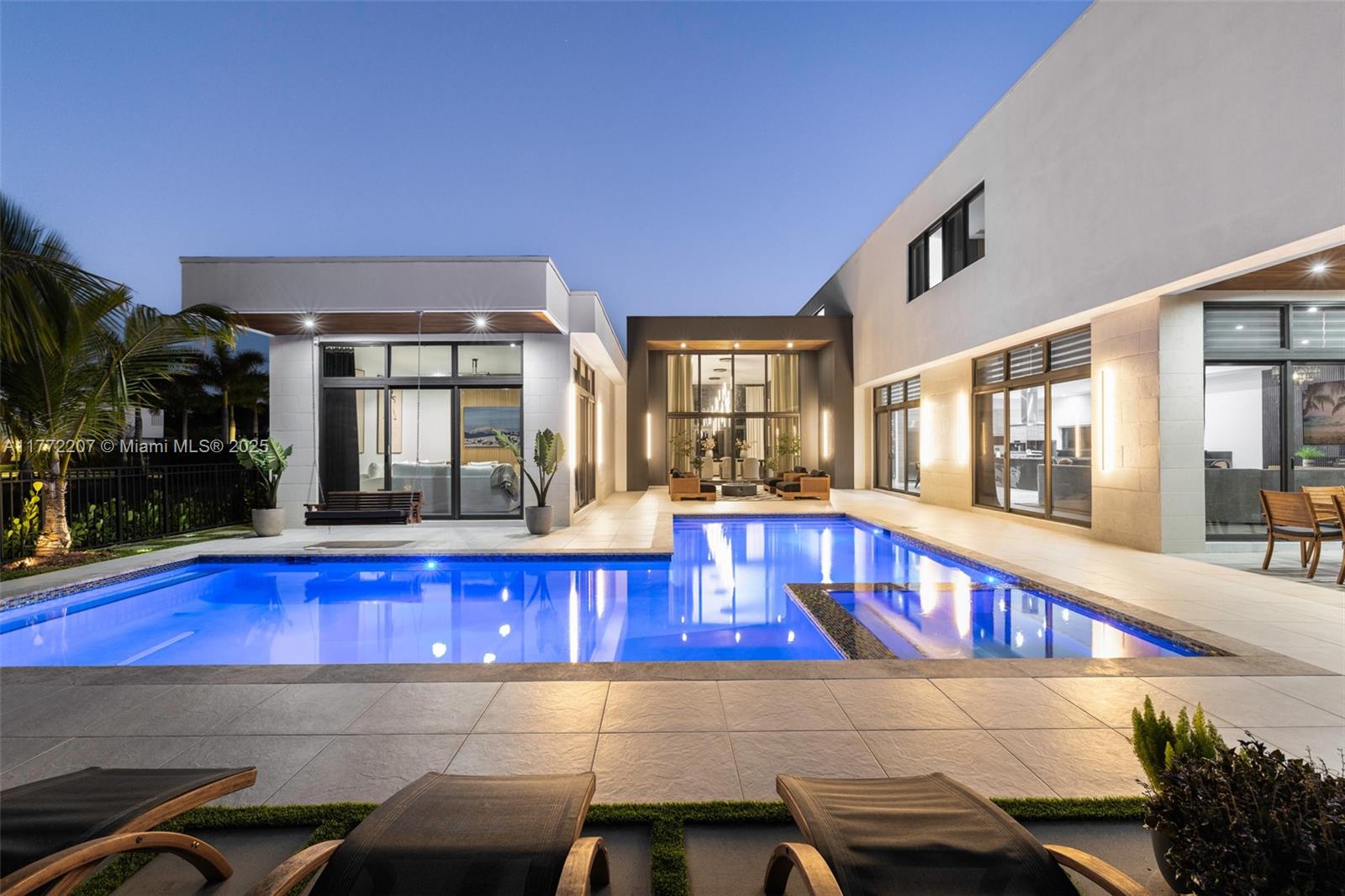 Welcome to this exquisite corner-lot residence, surrounded by water for exceptional privacy and tranquility. Step inside to 14-foot ceilings, a spacious living area and formal dining room with floor-to-ceiling windows framing the pool and garden. Designed by architect Oppenheim, this home includes a chef’s kitchen with Subzero/Wolf appliances, wine storage and two large pantries. The layout offers a media room, guest suite and maid’s quarters. Upstairs, a lounge leads to the primary suite and three en-suite bedrooms. The backyard is an entertainer's dream with a pool, outdoor shower and summer kitchen. Additional highlights include a four-car garage, guest parking & gated security in one of Weston’s premier communities close to top schools, parks, dining and shopping.