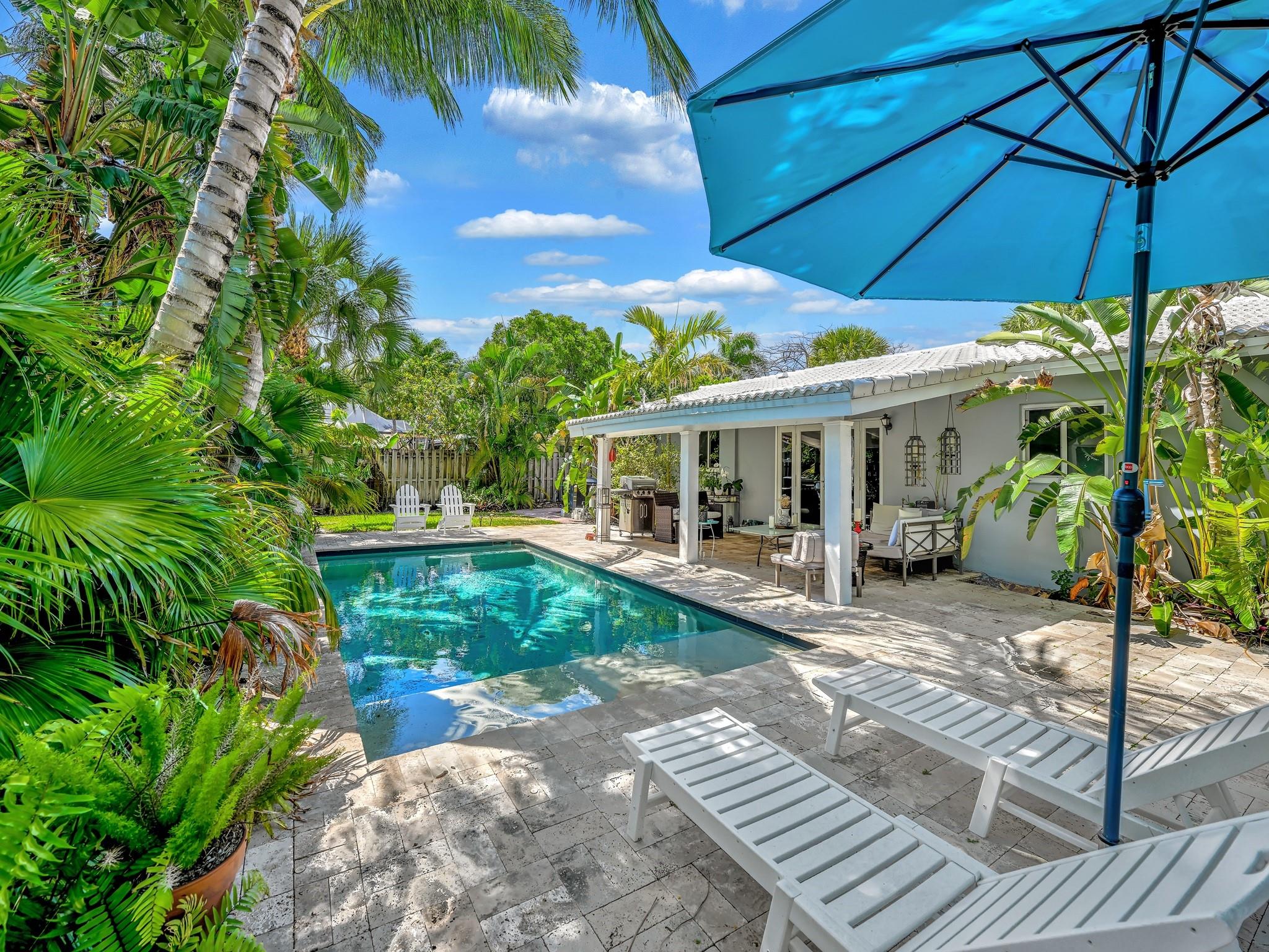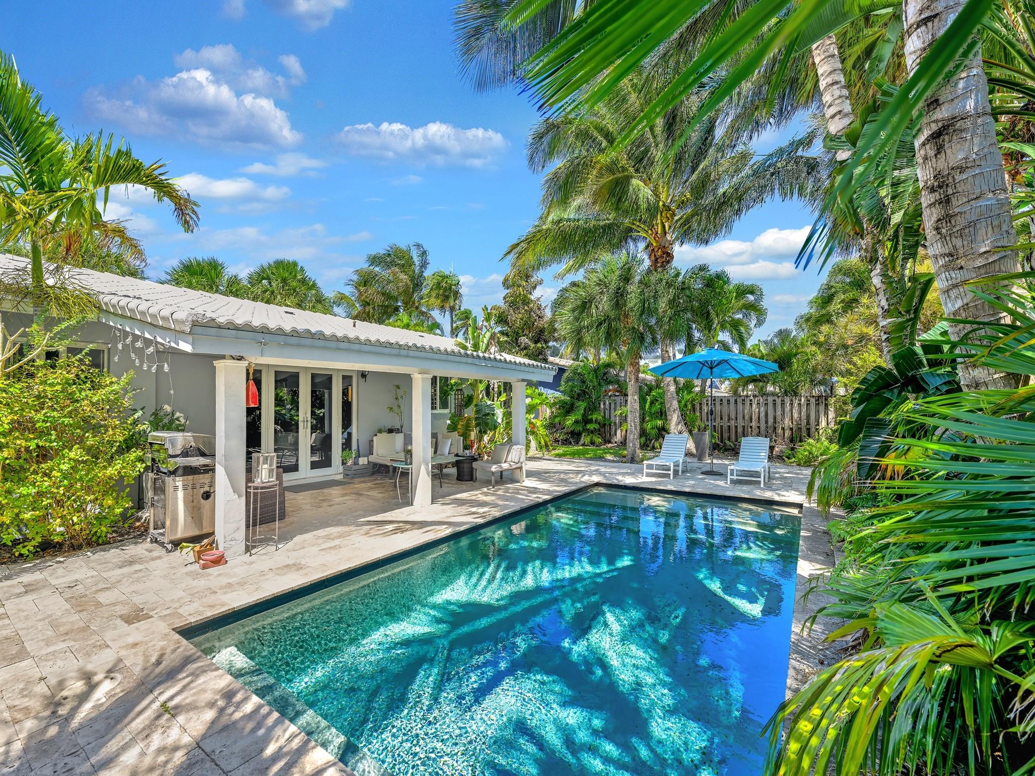 Discover this charming gem in Coral Ridge Isles! This beautifully updated 2-bedroom, 2-bathroom pool home boasts an open, light & bright floor plan designed for South Florida living. Property features include 2-car garage, impact windows and doors, white barrel tile roof, tile and laminate wood flooring. Enjoy the outdoor living space with an inviting arbor-shaded brick paver front porch, heated pool with sun shelf, travertine paver pool deck, and a covered back patio. The private, fully fenced backyard is surrounded by lush, mature tropical landscaping. Ideally located just minutes from the beach and close to local shopping, dining and entertainment options. This home offers the perfect blend of convenience and relaxation - Schedule your private showing today!