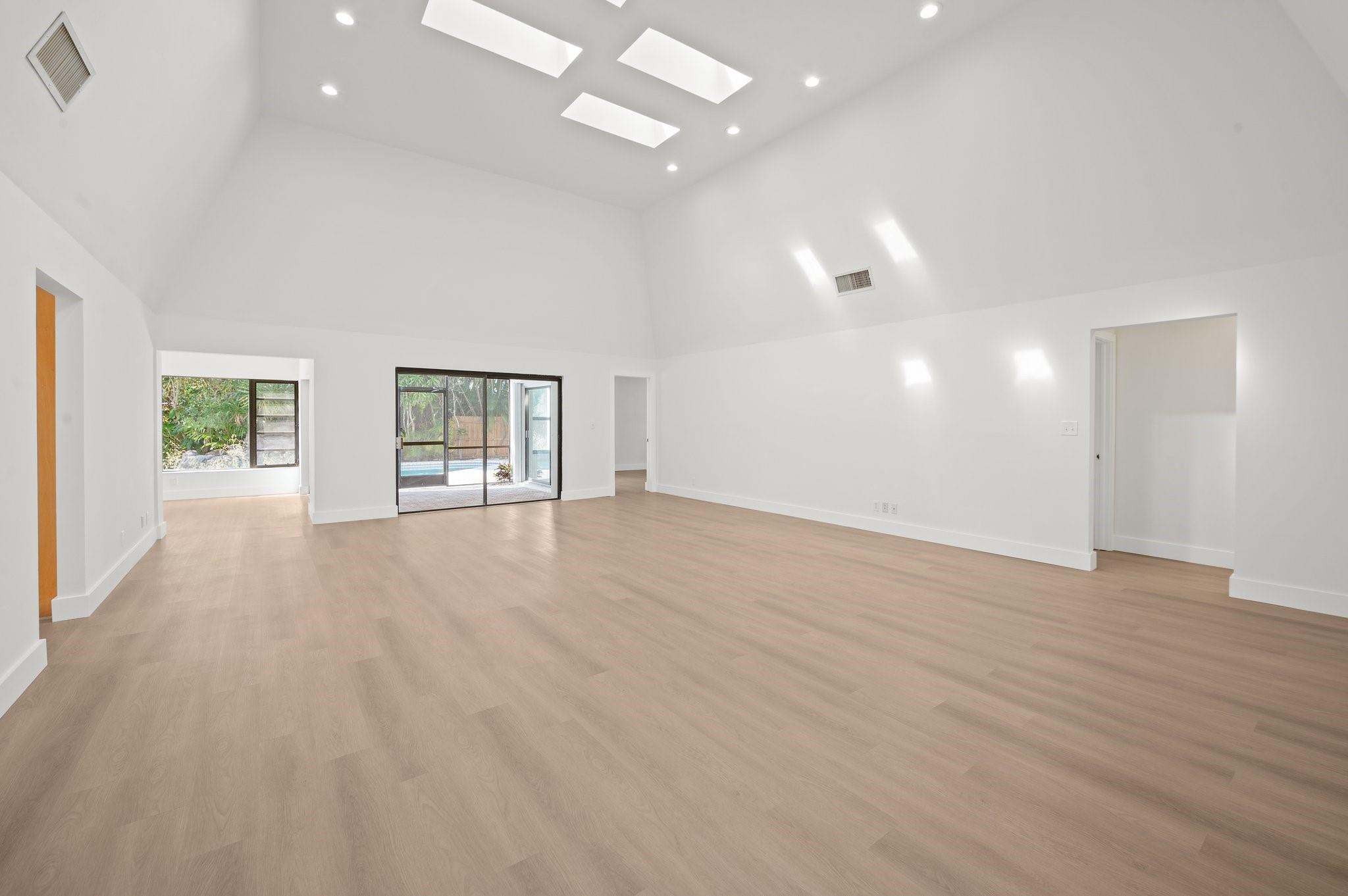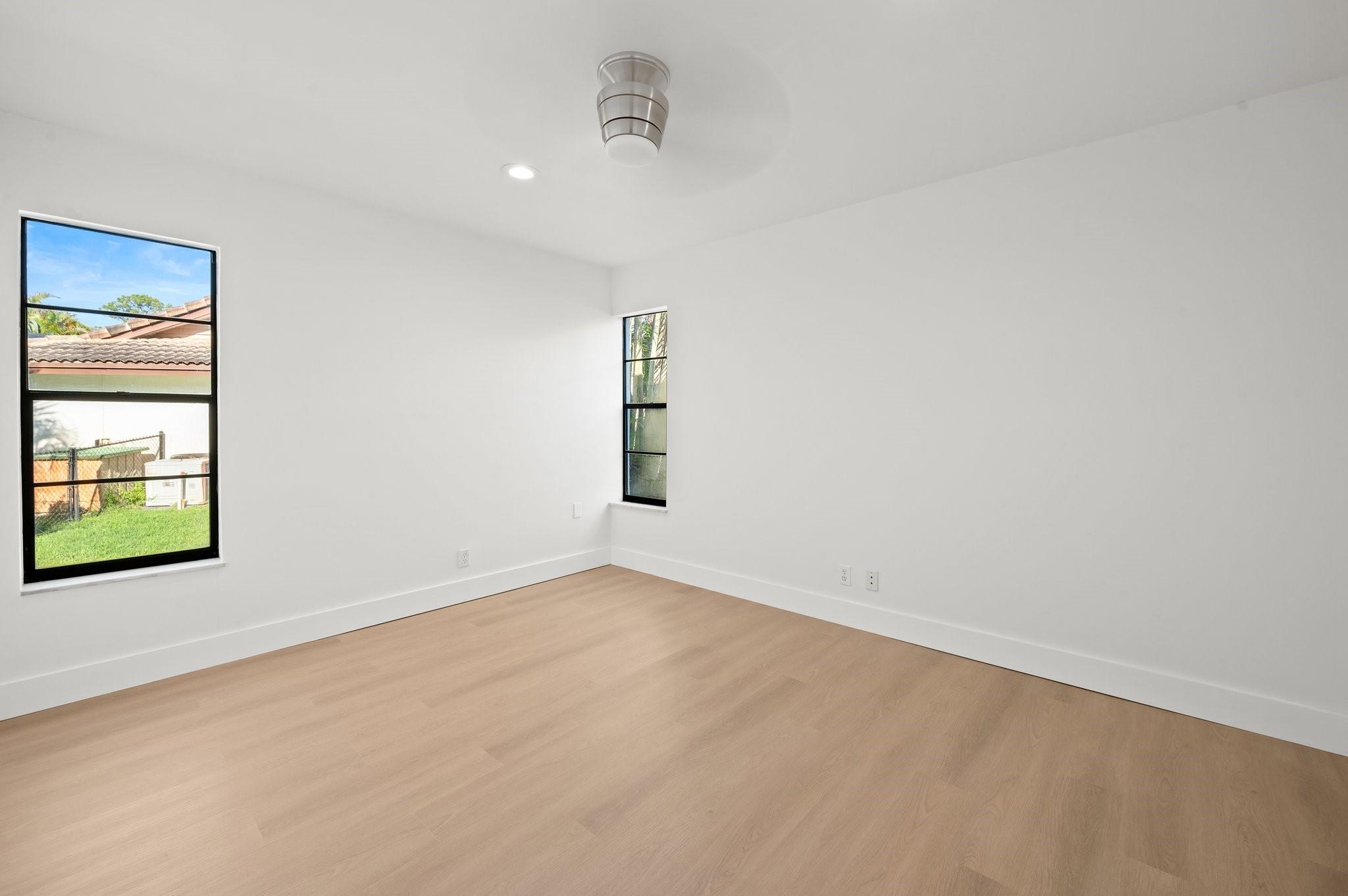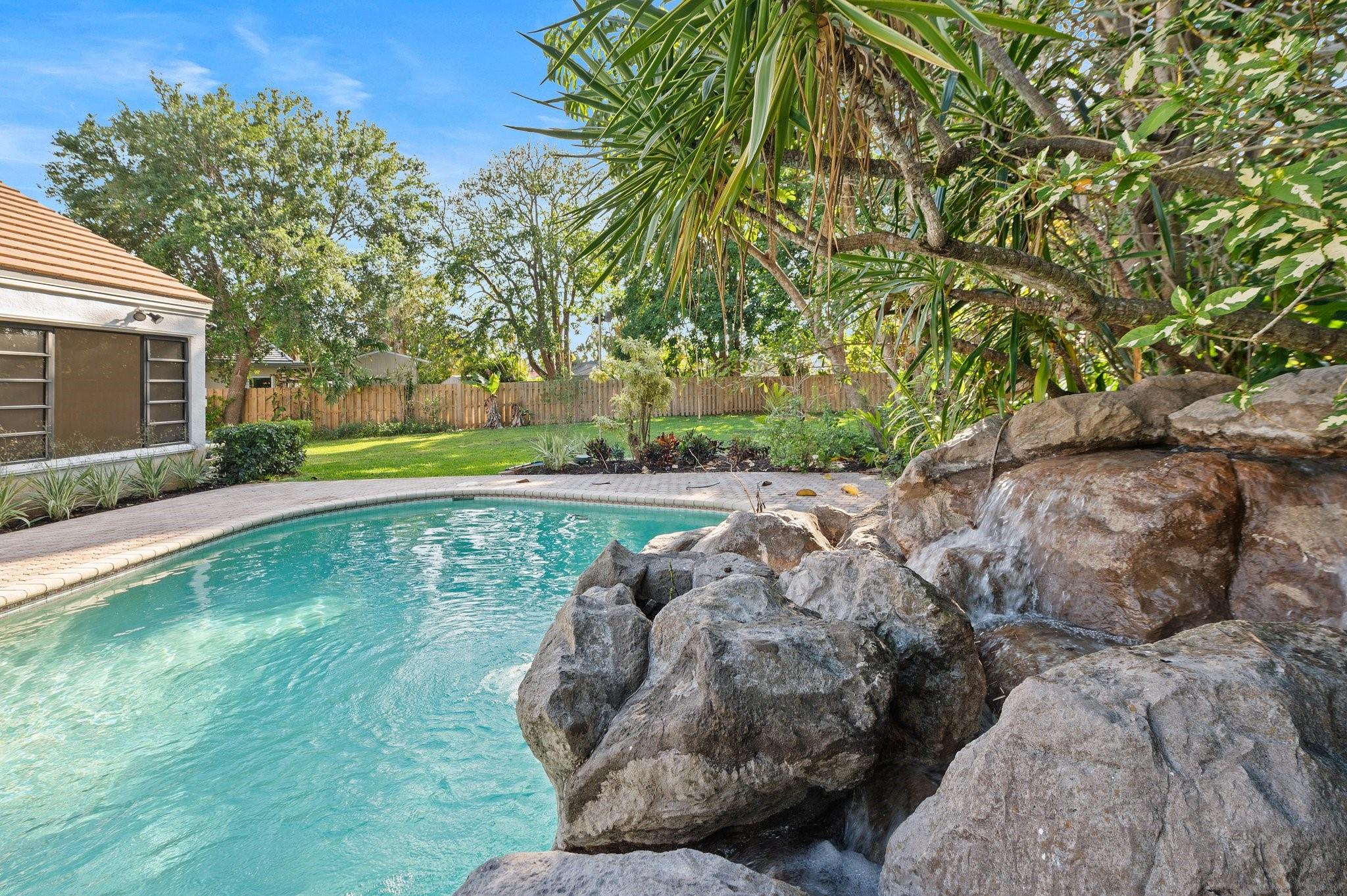 This stunning home is located in a serene cul-de-sac on a generous 15,413 sq. ft. private lot and the house with 3,016 sq. ft. of total area, it features 4 bedrooms, 2 bathrooms, and separate living, family, and dining rooms, all freshly painted with a new tile roof 2021. Step outside to your private oasis, complete with a sparkling pool, a cascading waterfall, and a spacious covered patio, all surrounded by a privacy fence. Inside, you’ll find wood laminate flooring, recessed lighting, and a chef’s delight kitchen with wood cabinets, granite countertops, and new stainless steel appliances. The expansive primary suite serves as a peaceful retreat with a walk-in closet, dual sinks, and a frameless glass shower. The home also includes hurricane protection with accordion & panel shutters.