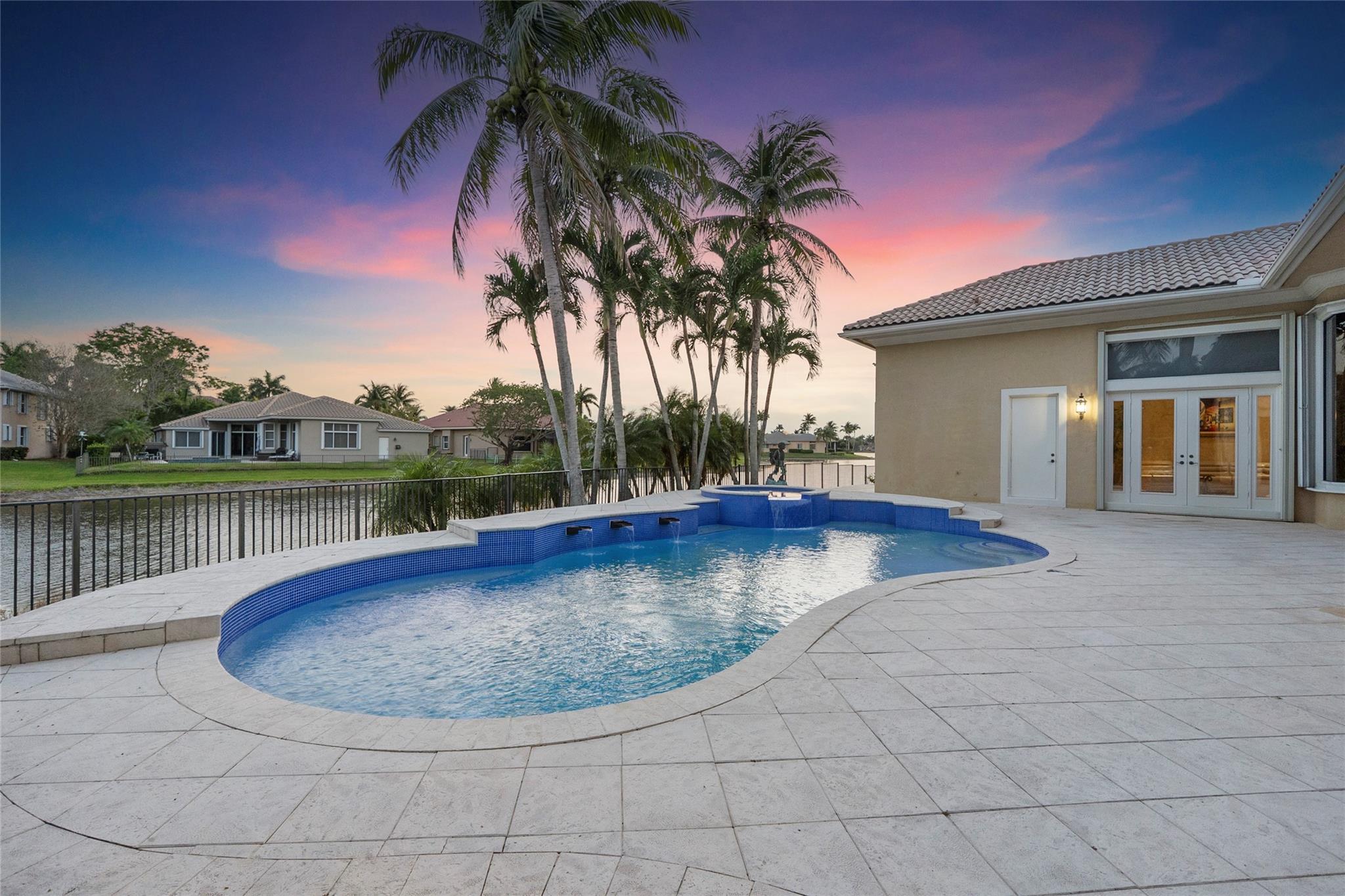 "The Falls" The first double gated custom designed community in Heron Bay, Double security gates to get through for extra privacy & security, The Courtyard is also Gated at the front of the home, This luxury hidden subdivision surrounds a small island of waterfall & lakes, Custom built 4 way split open floor plan home, Brand new roof (paid by seller) installing April 25, New sapphire modern resurfaced heated oversized pool with multi color LED lighting, Hurricane impact windows & doors, 3 newer A/c units, Newly polished Creme de Marfil marble flooring, European country kitchen & top of the line cabinetry, Huge rooms with wet bar & carved built-ins, High custom 14 foot ceilings & crown moldings throughout, 15,508 sq foot oversized pie shape fenced lot overlooking a serene quiet water lake,