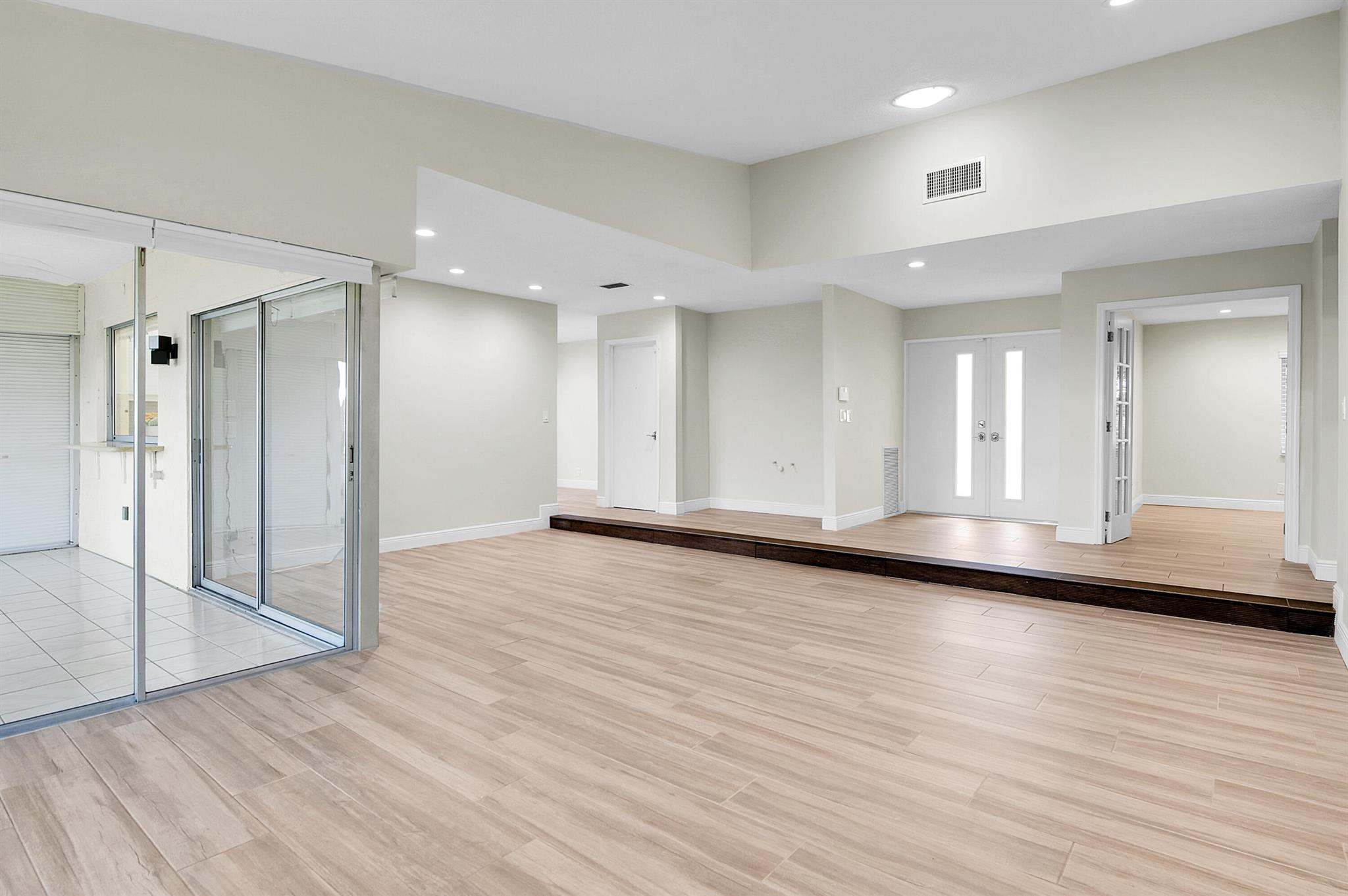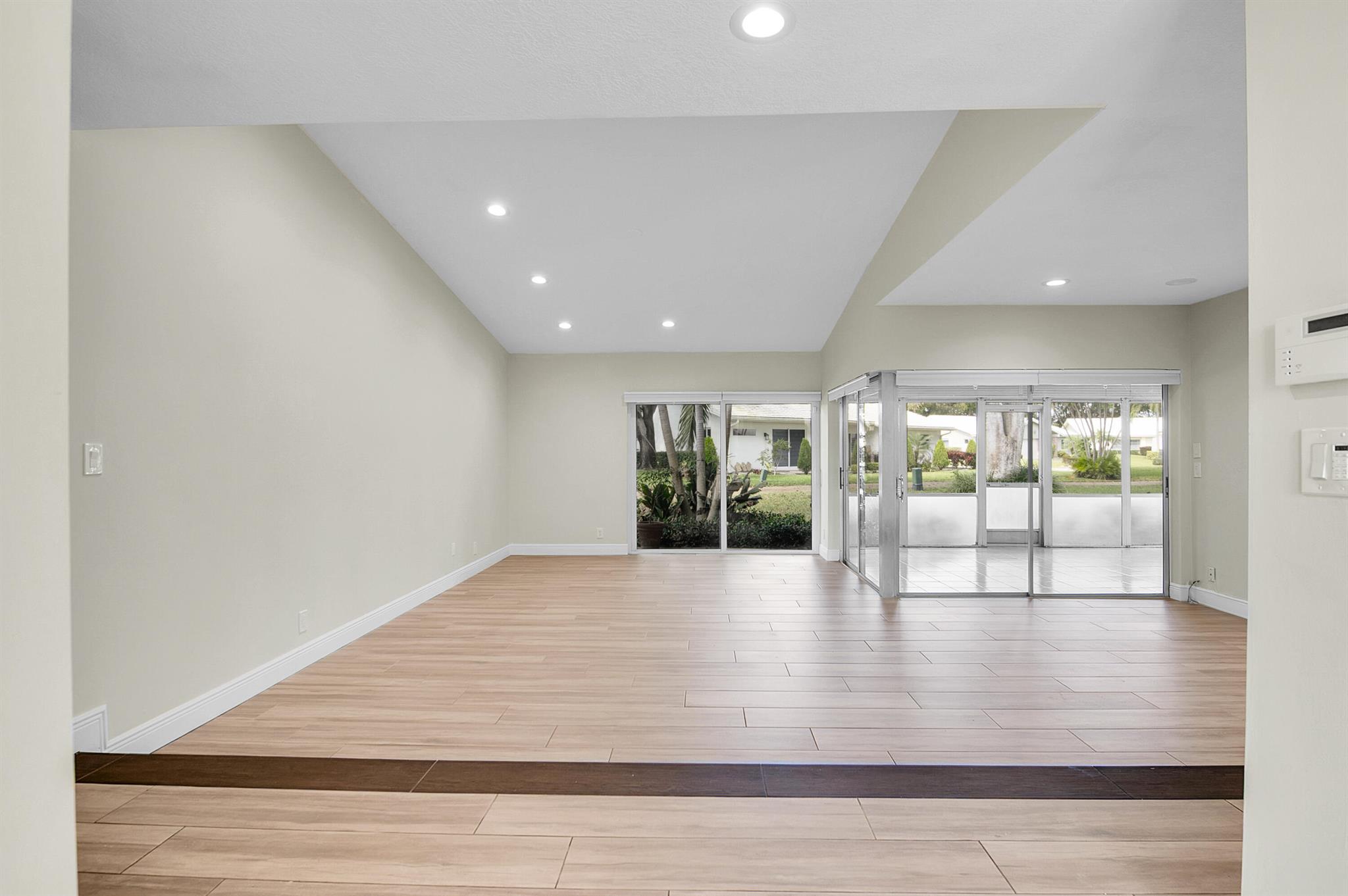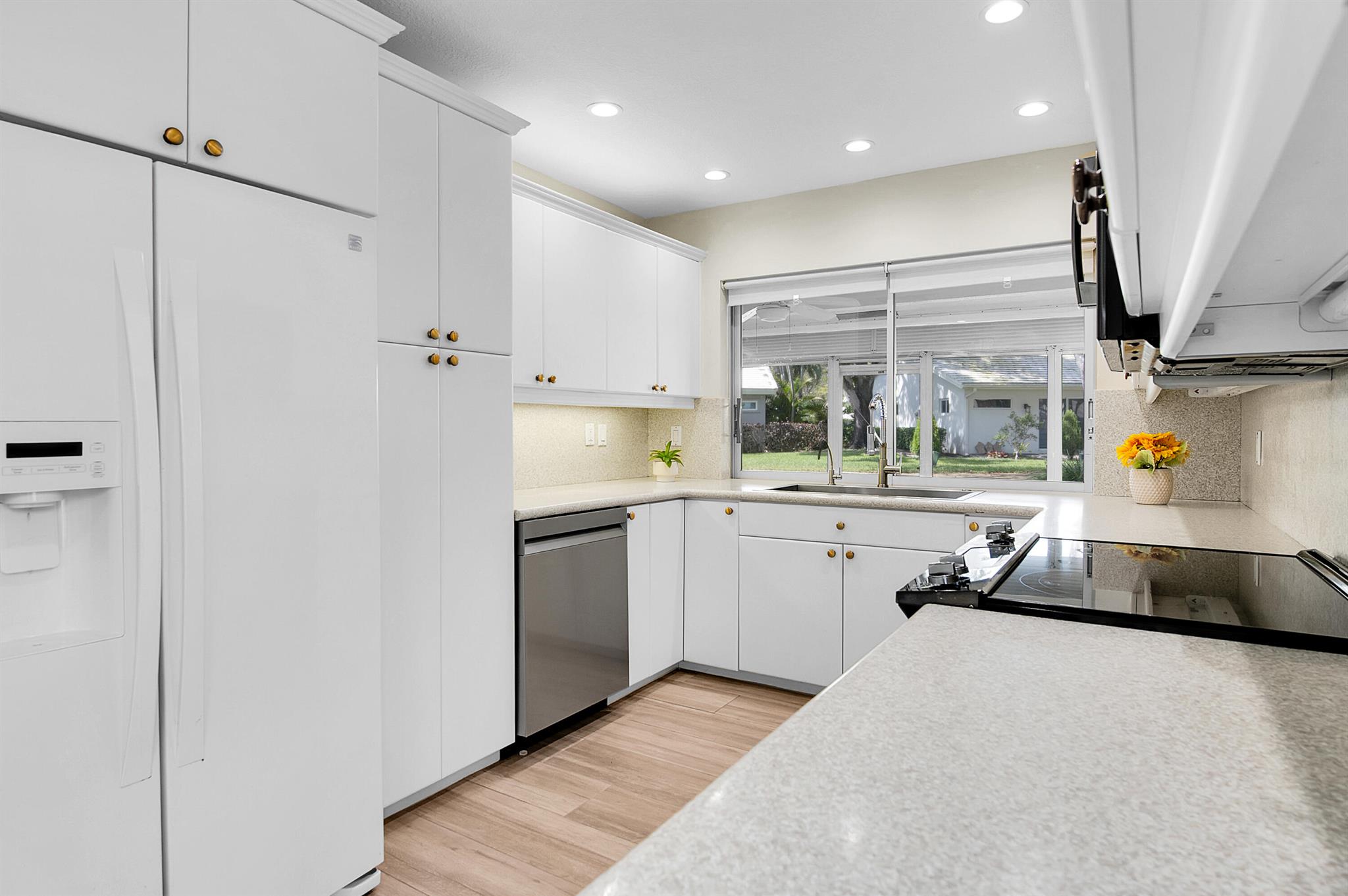Such an wonderful home in an amazing location!!! This property is very light and bright as soon as you walk through the front door. Beautiful wood-look tile throughout home. Kitchen has lots of storage and cabinet space with neutral corian countertops and nice eat in kitchen area. Stainless steel stove, dishwasher & microwave are1 - 4 years old. Both bathrooms have been exquisetly remodeled with floating sinks, frameless shower door and pebblestone flooring in primary shower. Primary bath has a barn door for added charm. Living areas have been freshly painted in a nice light neutral tone. Brand new roof and whole house has impact windows except for the florida room, front door and garage doors. This is a very low maintenance community that paints the homes every 5-7 years