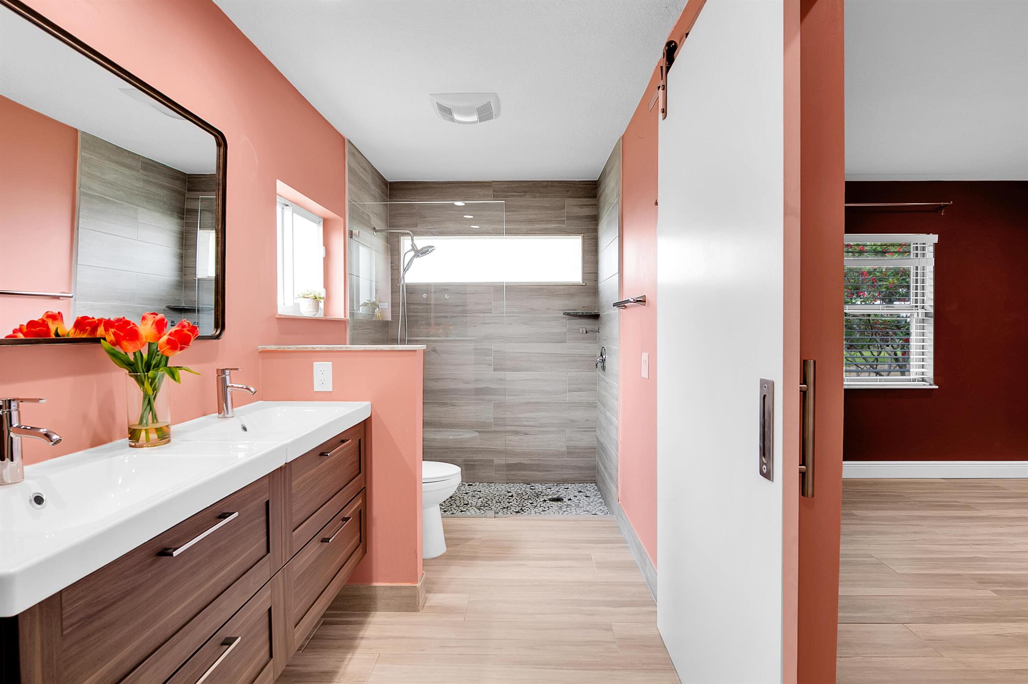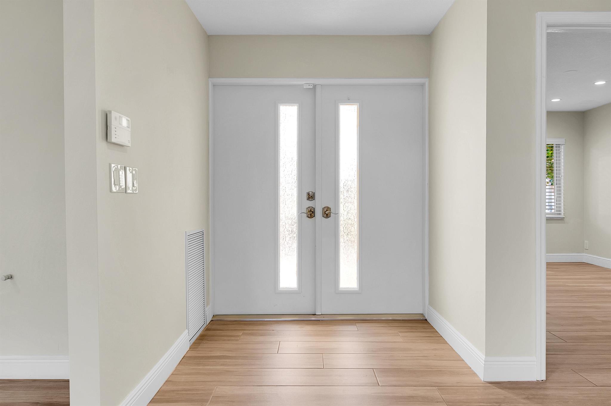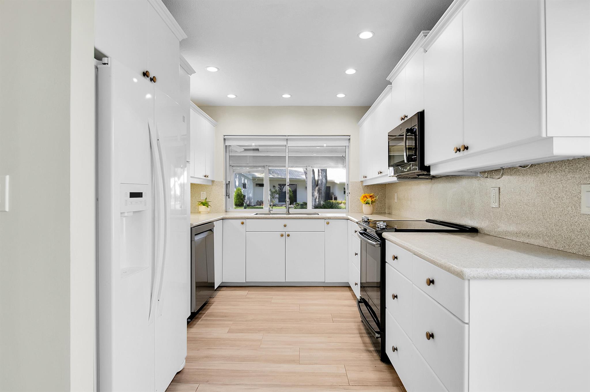 Such an wonderful home in an amazing location!!! This property is very light and bright as soon as you walk through the front door. Beautiful wood-look tile throughout home. Kitchen has lots of storage and cabinet space with neutral corian countertops and nice eat in kitchen area. Stainless steel stove, dishwasher & microwave are1 - 4 years old. Both bathrooms have been exquisetly remodeled with floating sinks, frameless shower door and pebblestone flooring in primary shower. Primary bath has a barn door for added charm. Living areas have been freshly painted in a nice light neutral tone. Brand new roof and whole house has impact windows except for the florida room, front door and garage doors. This is a very low maintenance community that paints the homes every 5-7 years