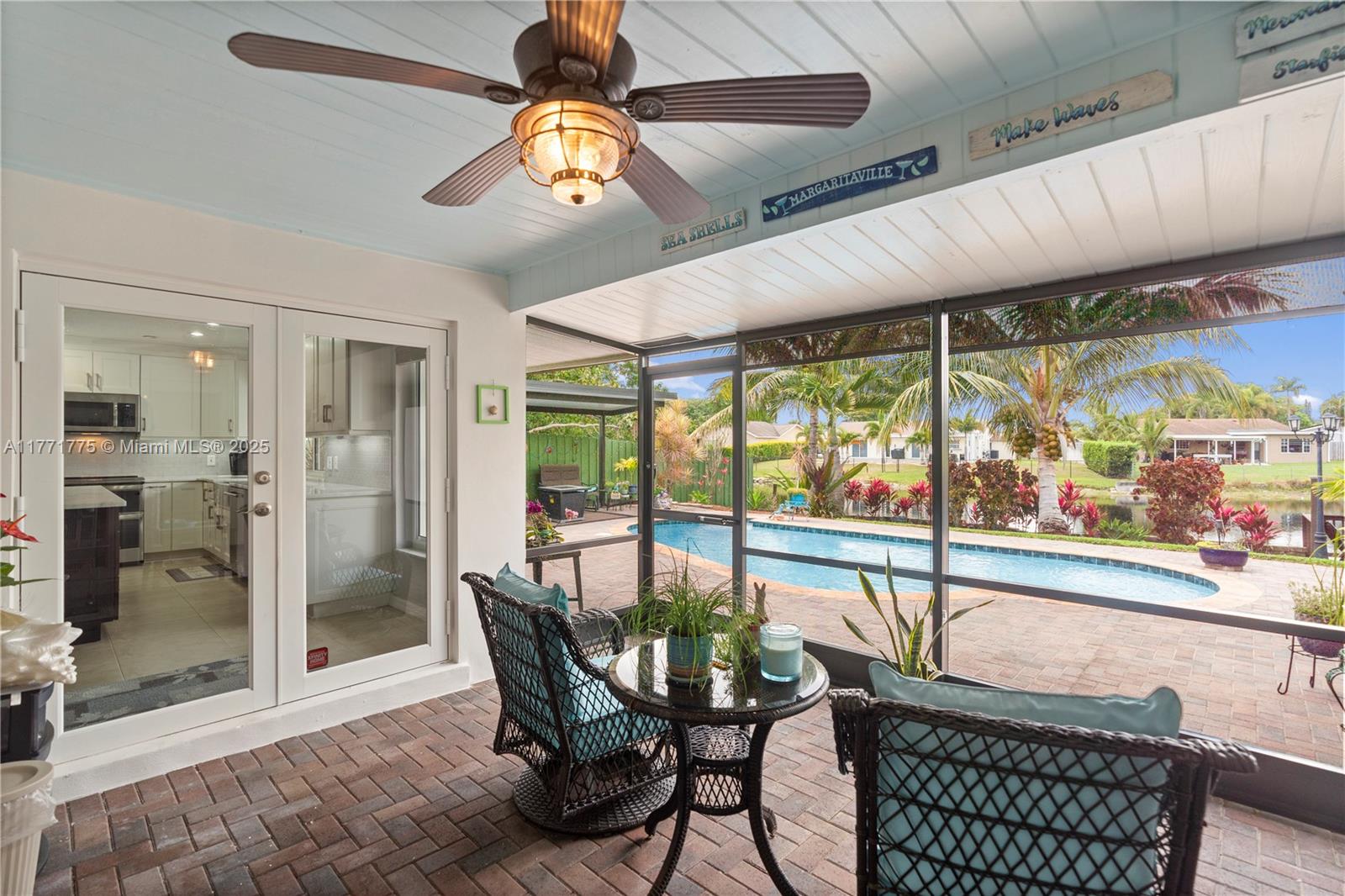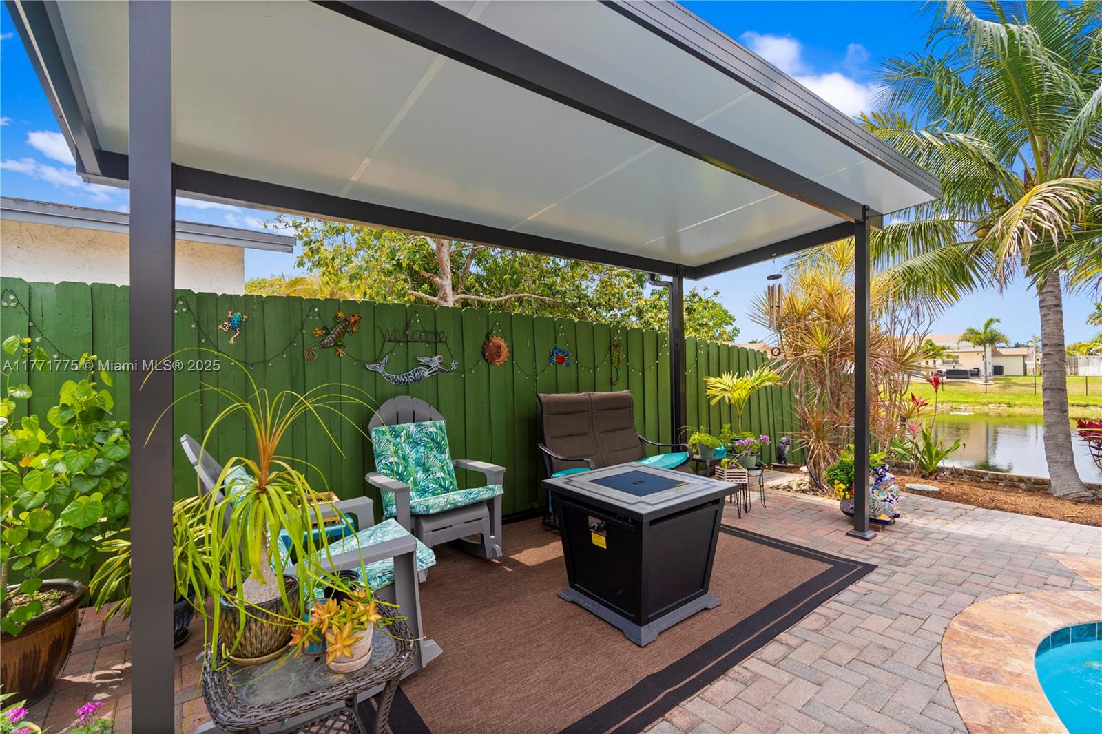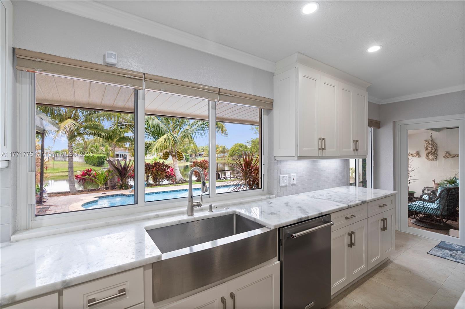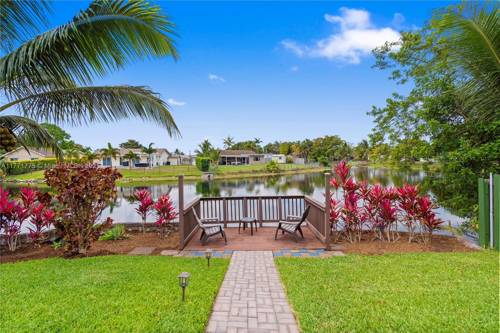 Stunning waterfront pool home, Highly upgraded thru-out, Quartz countertops, White wood cabinets, Stainless steel kitchen appliances, GE dual oven & cook top, Under cabinet lighting, Bar with wine refrigerator, Remodeled bathrooms, Updated porcelain tile flooring, Hurricane impact windows & doors, New A/C 2024 with 9 years left on warranty, Tankless water heater, Vivint security system with 3 cameras, Finished garage under A/C, Updated insulated garage door & motor, New exterior paint & stucco 2023, Low maintenance salt water pool, Wood waterfront dock, Expansive exterior lighting, Large gazebo, No maintenance putting green on side of house, 3 storage sheds. 1 with power & more!