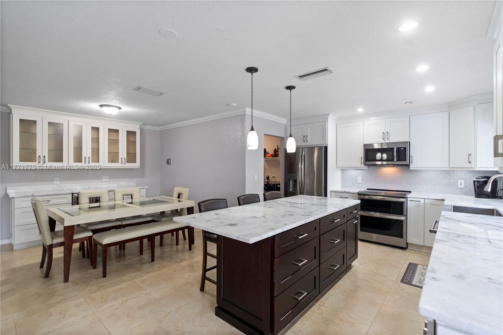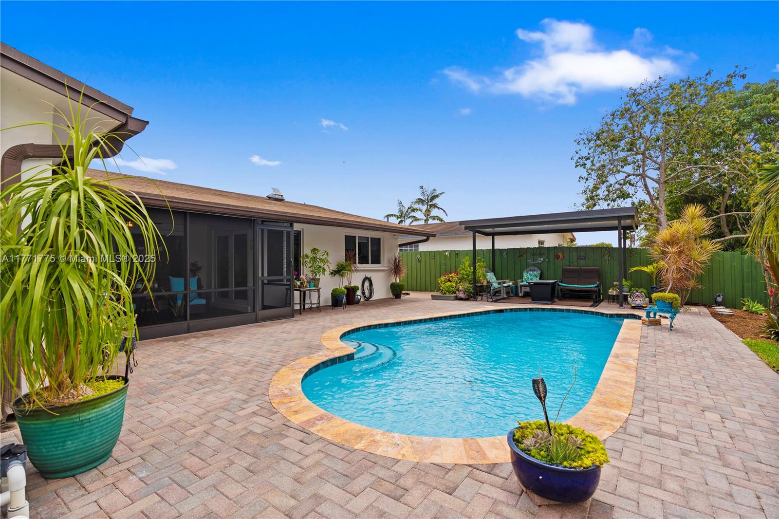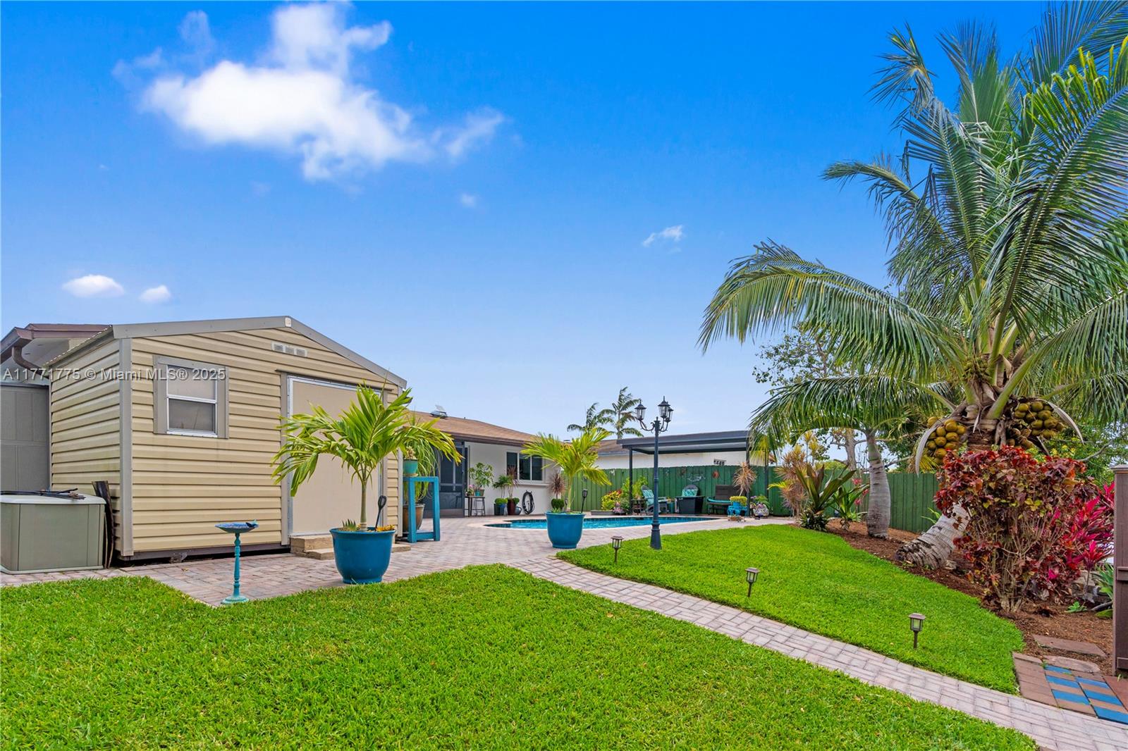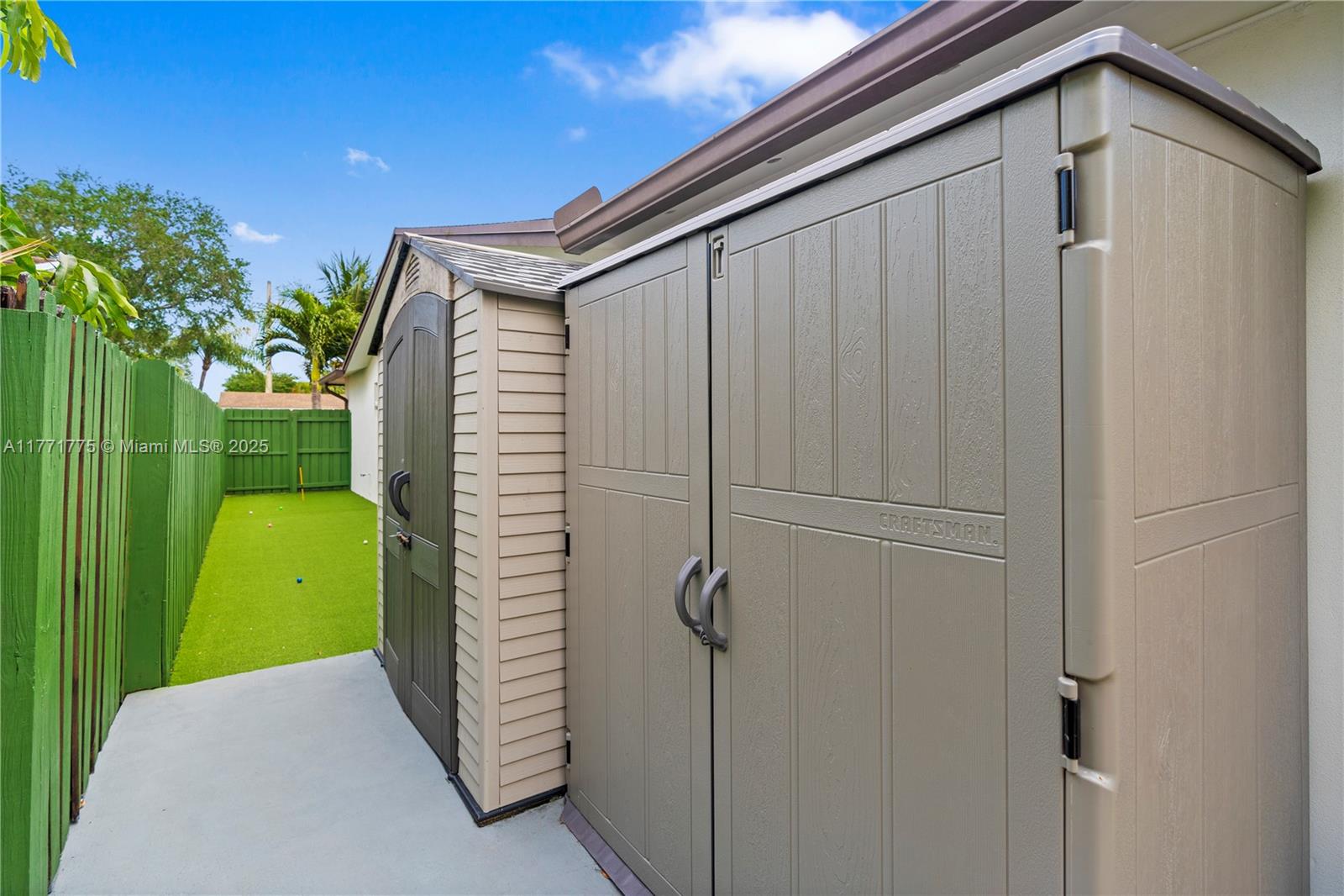 Stunning waterfront pool home, Highly upgraded thru-out, Quartz countertops, White wood cabinets, Stainless steel kitchen appliances, GE dual oven & cook top, Under cabinet lighting, Bar with wine refrigerator, Remodeled bathrooms, Updated porcelain tile flooring, Hurricane impact windows & doors, New A/C 2024 with 9 years left on warranty, Tankless water heater, Vivint security system with 3 cameras, Finished garage under A/C, Updated insulated garage door & motor, New exterior paint & stucco 2023, Low maintenance salt water pool, Wood waterfront dock, Expansive exterior lighting, Large gazebo, No maintenance putting green on side of house, 3 storage sheds. 1 with power & more!
