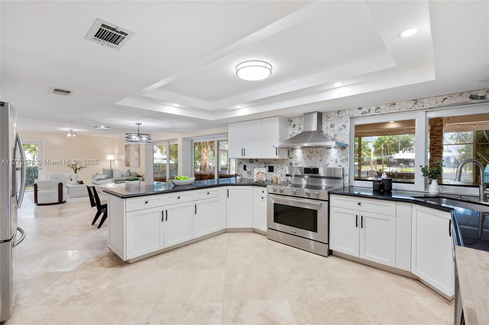 Welcome to an extraordinary boater’s paradise! This remodeled estate offers unparalleled ocean access with no fixed bridges. Featuring brand new impact windows and flooring, this home boasts 5 spacious bedrooms, 4.5 luxurious baths. The 1,000+ sq ft screened patio with a built-in bar is perfect for family gatherings. Step outside to a private waterfront oasis with a new dock fitting a 60-ft boat, seawall, and a boat lift for up to a 34-ft boat. Enjoy a saltwater pool, heated jacuzzi, renovated kitchen and baths, and an upper terrace with a hot tub and sweeping canal views. Just minutes from downtown, Las Olas, and the beach, this estate offers the ultimate in luxury and convenience.
