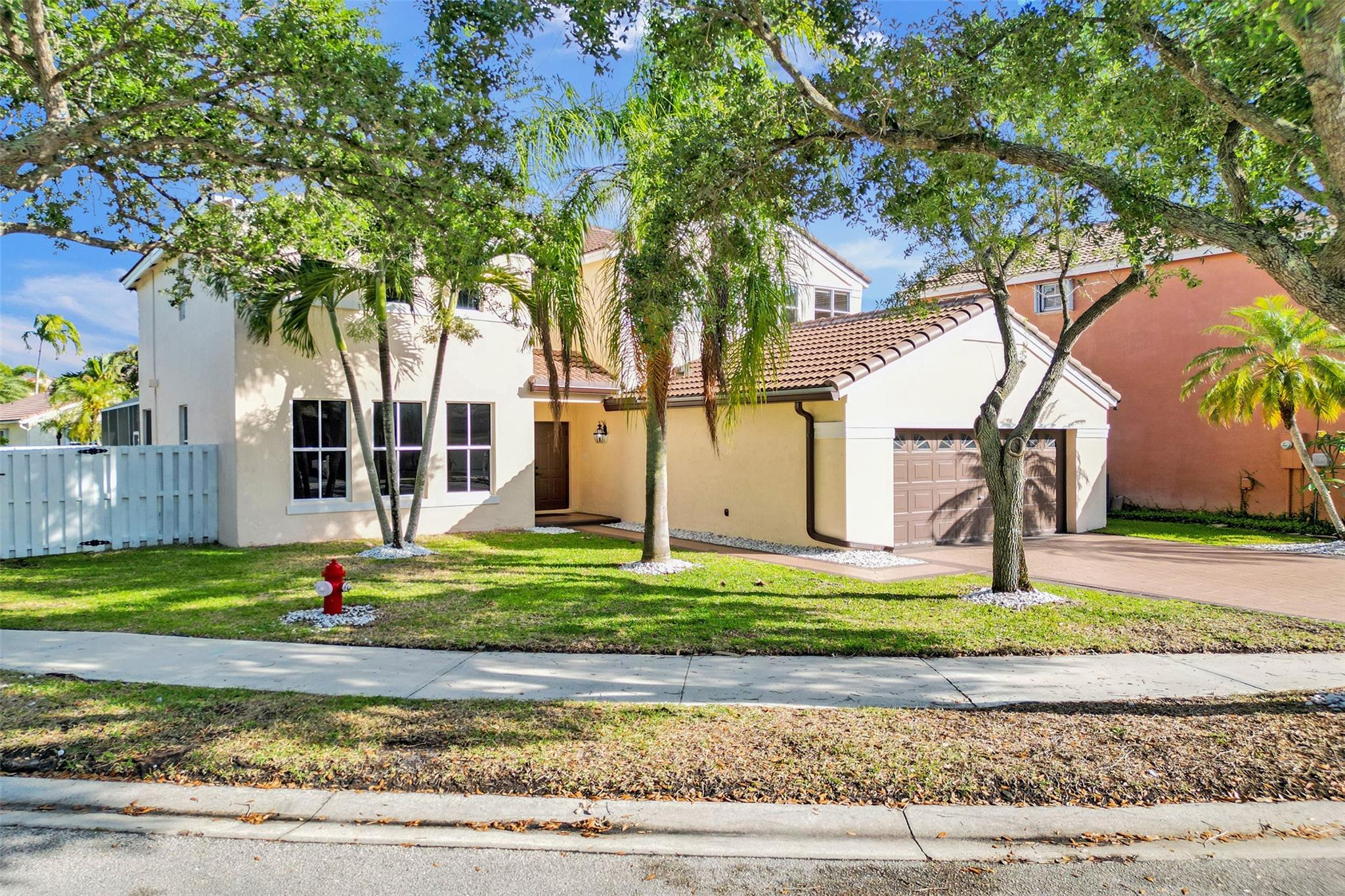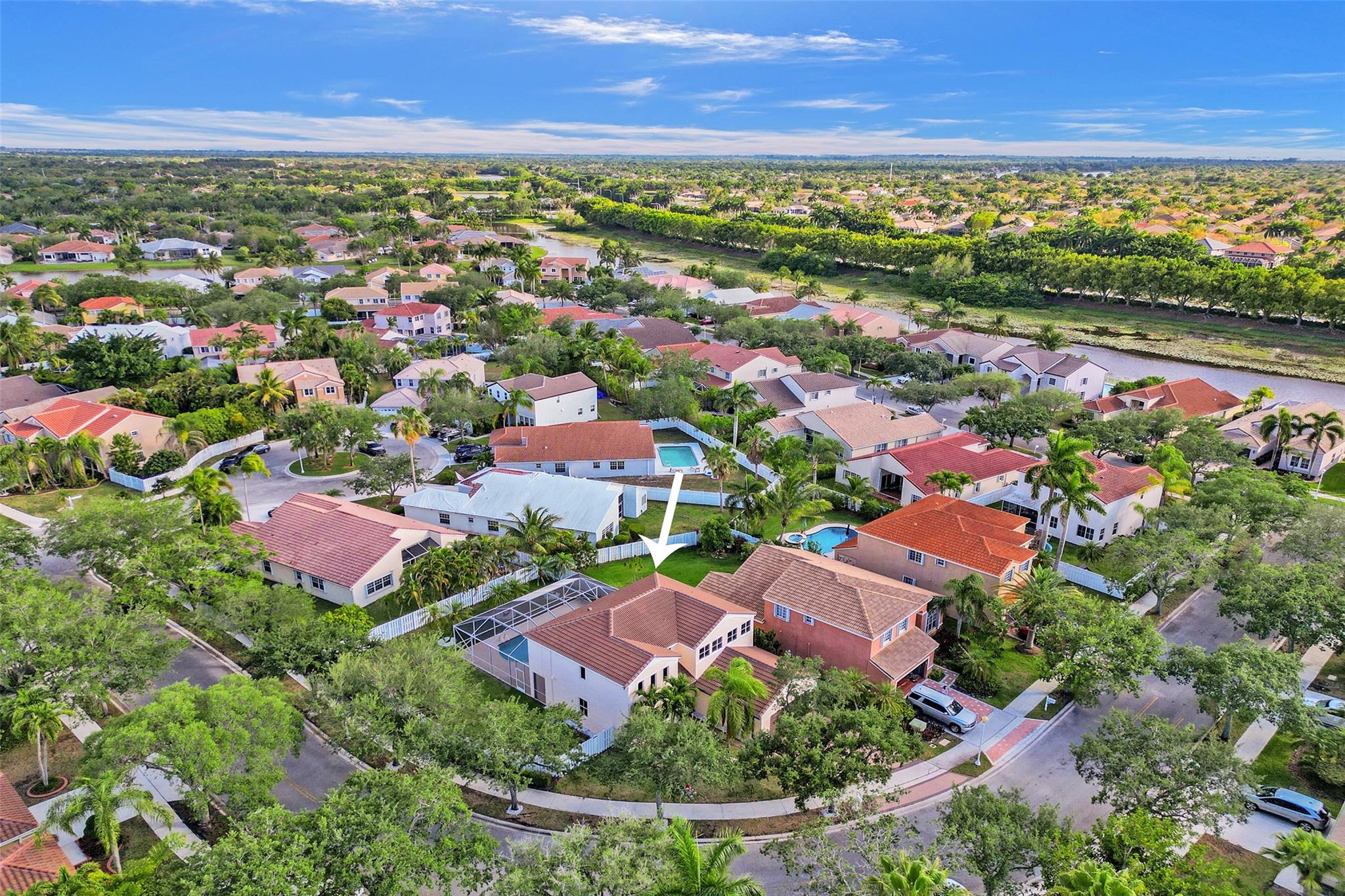 Beautiful Weston 5 bedroom / 3 full bathroom salt water pool home in the exclusive gated community of 'The Falls'. 2022 S-tile roof! First floor den can be converted to 5th bedroom. Primary Bedroom has 2 walk-in closets, ensuite bathroom with dual sinks, a separate shower and Roman size Jacuzzi tub. Brick paver walkway leads to your double door entry. Dramatic volume living ceilings make this home feel extra spacious. Large eat-in kitchen with plenty of cabinets and pantry, granite counters, and stainless appliances. Huge private fenced backyard great for a play area and pets. Fully screened pool with safety fence and covered patio. Walking distance to Eagle Point Elementary and Tequesta Trace Middle schools. Zoned for Cypress Bay High. Great schools and a neighborhood to raise a family!