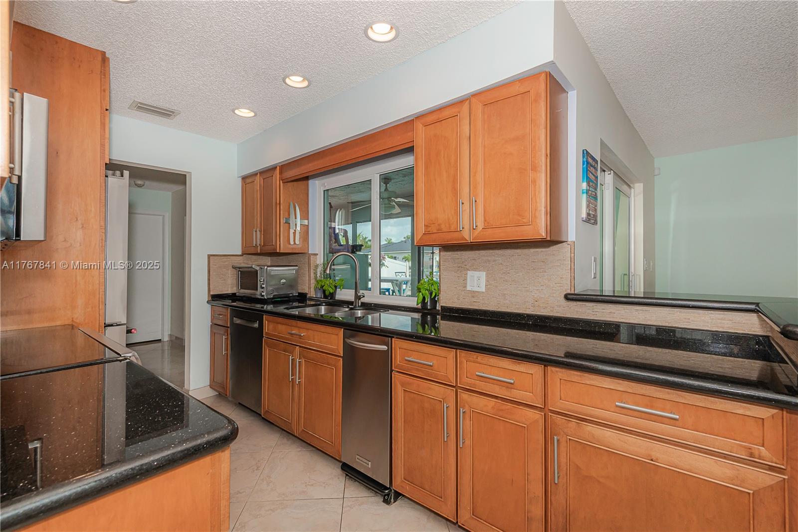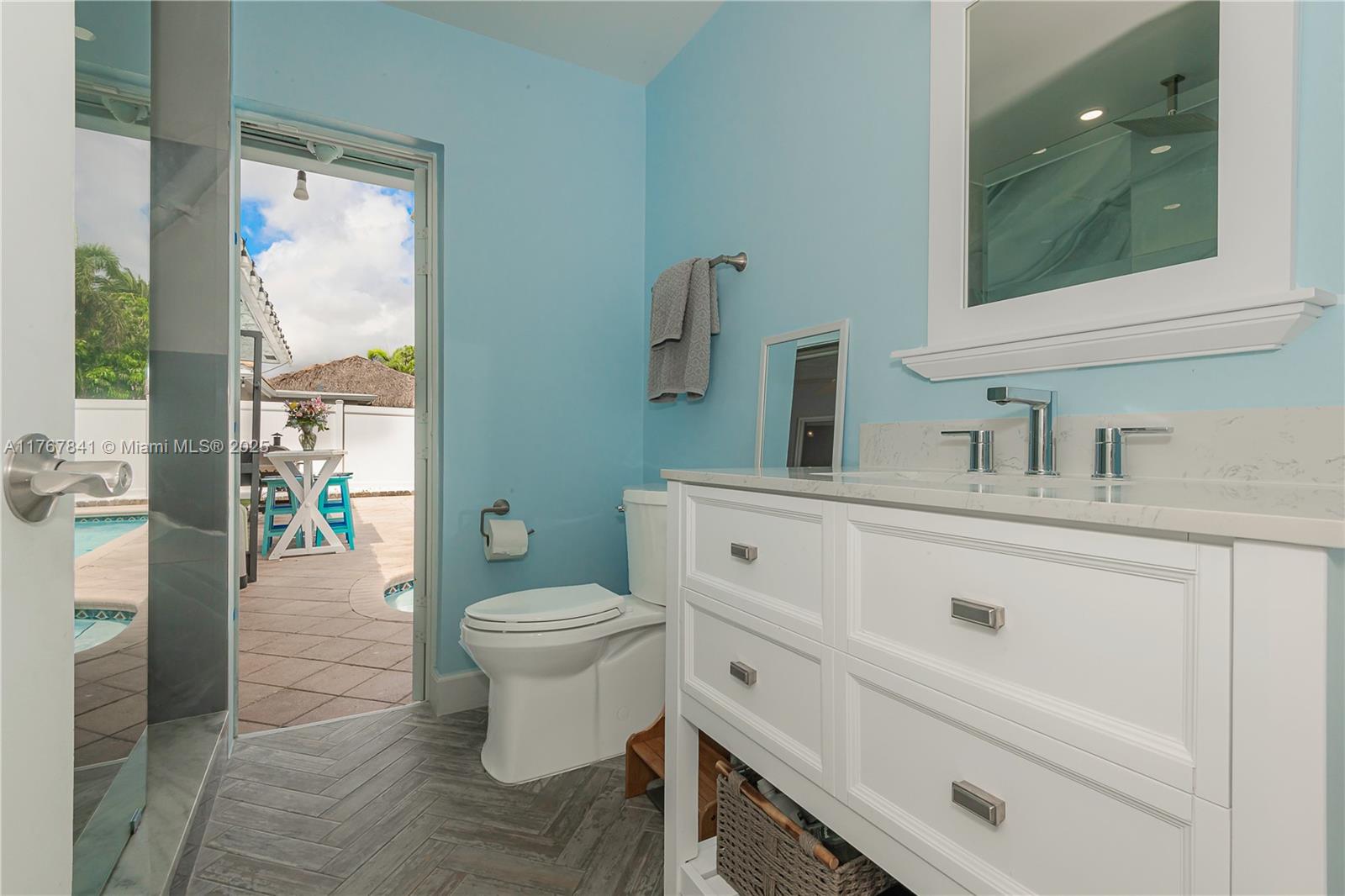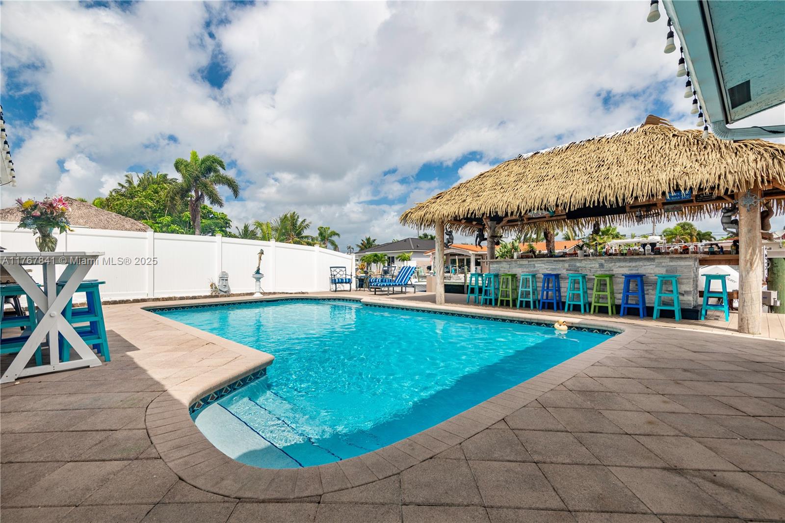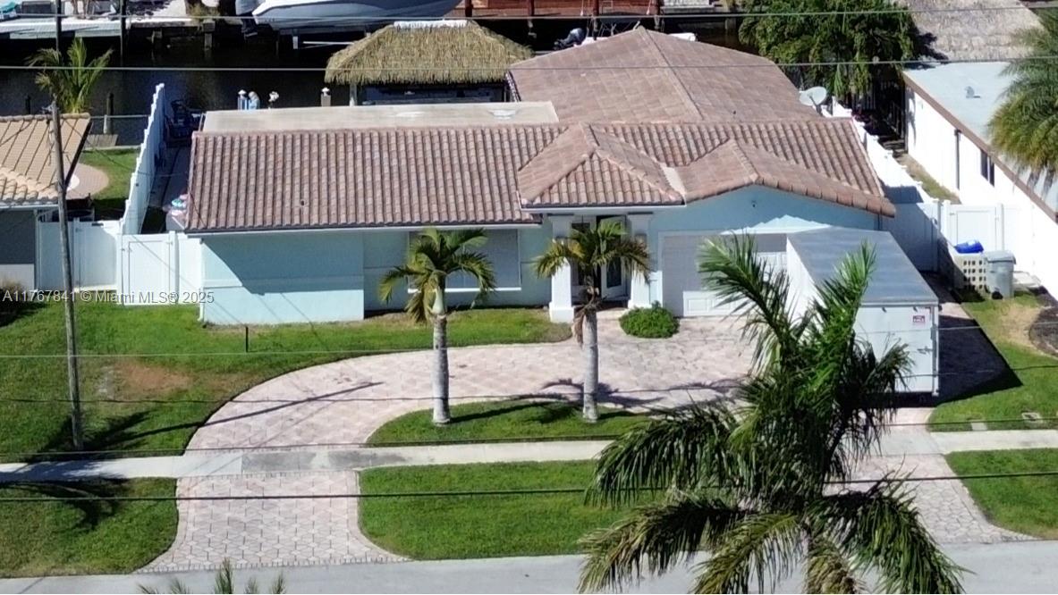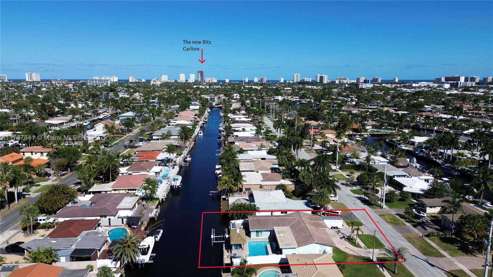 Resort-style living in this waterfront property. Bring your boat to this ocean access, split floor plan home. Complete hurricane windows, doors, and garage door. 3-bedroom, 2-bathroom gem includes a heated pool. 2-car garage is air-conditioned and carpeted & auto garage door opener. NO CAST IRON PIPES, build with PVC. Backyard paradise, complete with a TIKI Bar featuring refrigerators, ice maker, & sink. Enjoy ample room for entertaining under the synthetic palm roof. Take advantage of the $10,000lb four-post boat lift, second bridge clearance same as Federal Highway bridge. The large primary bedroom and bath include a separate shower, whirlpool tub, and walk-in closet. Each bedroom has a walk-in closet. EV charger. East Pompano Beach close to beaches, I-95, shopping & restaurants