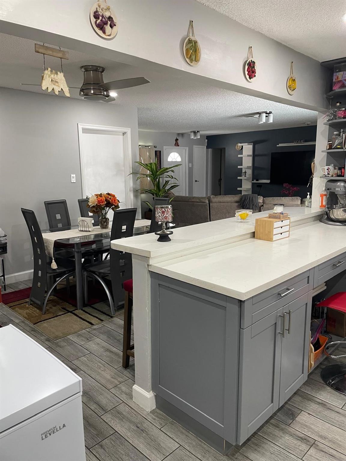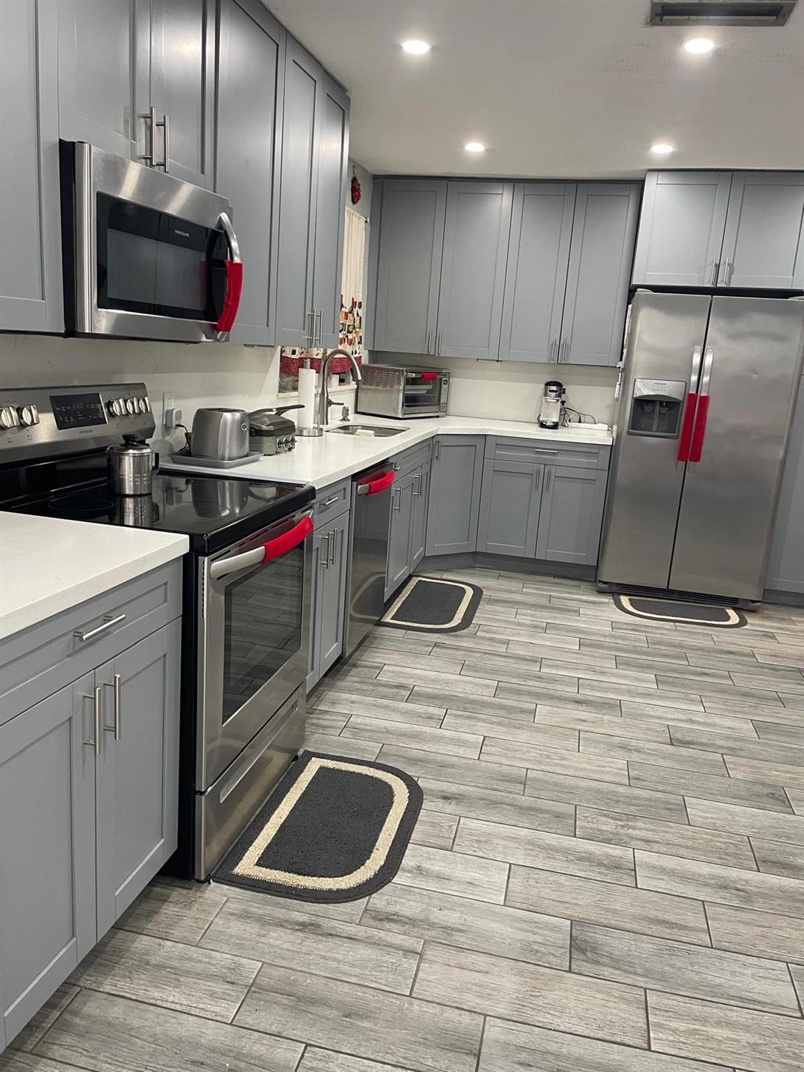 Charming and well maintained 3 BR, 2 BA single family home with no HOA! This move-in ready home features a new roof (2024), impact windows/accordion shutters for the patio. Enjoy screened in pool with water view, security camera system, & fully equipped lawn sprinkler system to keep your yard lush year-round! The updated kitchen boasts quartz countertops and lots of cabinets! Both bathrooms have been renovated. Inside you'll find beautiful ceramic tile that looks like wood throughout, a spacious laundry room with extra storage, & 2 car garage for convenience. A storage shed in the backyard. Close to shopping centers, dining & Hard Rock Stadium, schools, parks and major highways. (Exclude extra freezer in kitchen from sale)