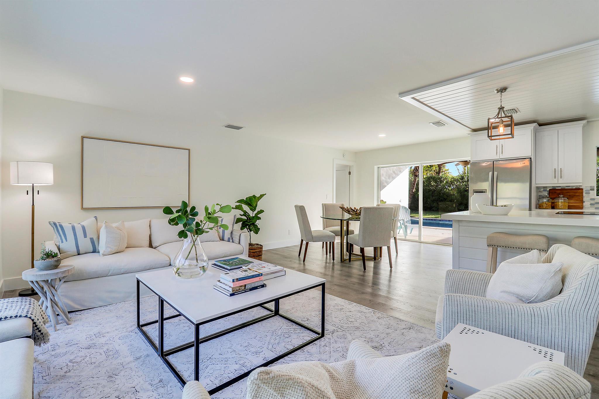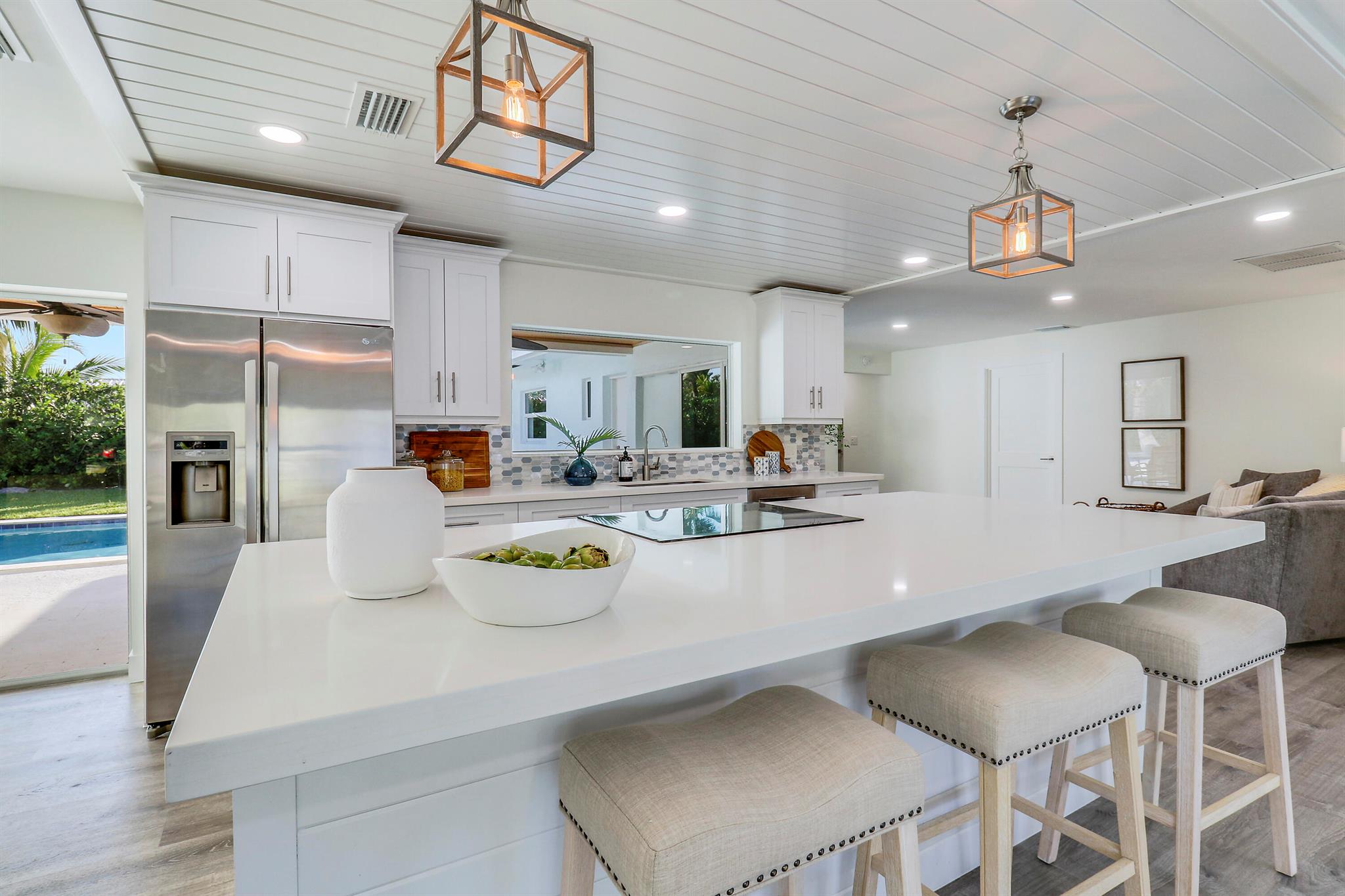 Come home to BERMUDA TERRACE! Welcome to 19228 Caribbean Court, a captivating residence nestled in the highly sought-after Bermuda Terrace community in Tequesta, FL. This stunning 4-bedroom, 2-bathroom CBS pool home offers a renovated living space, perfectly situated on a generous lot.This home offers a beautifully updated interior featuring impact glass windows and doors, a durable metal roof, brand new AC and a spacious 2-car garage. The heart of this home is the chef's kitchen, boasting elegant quartz countertops and stainless steel appliances. Adjacent to the kitchen, a huge interior utility area with washer and dryer adds convenience to your everyday routine.Outside, enjoy the newly laid sod and fresh landscaping, creating a picturesque setting for your