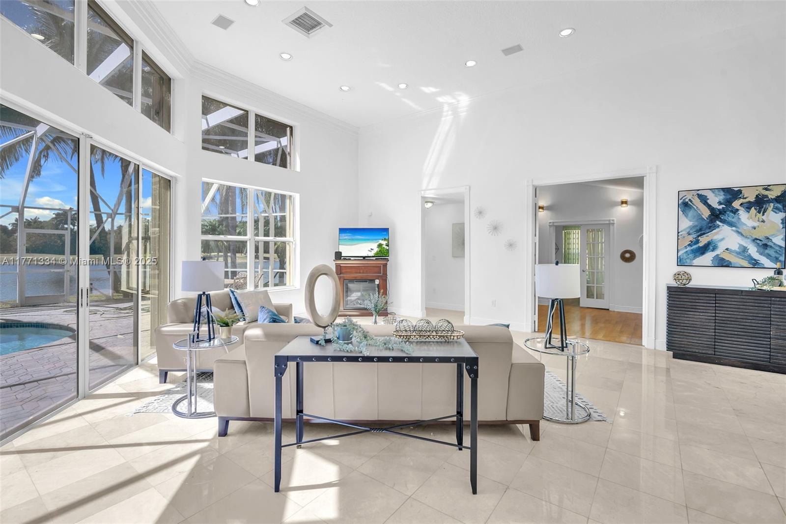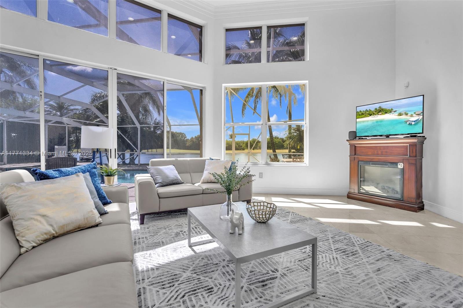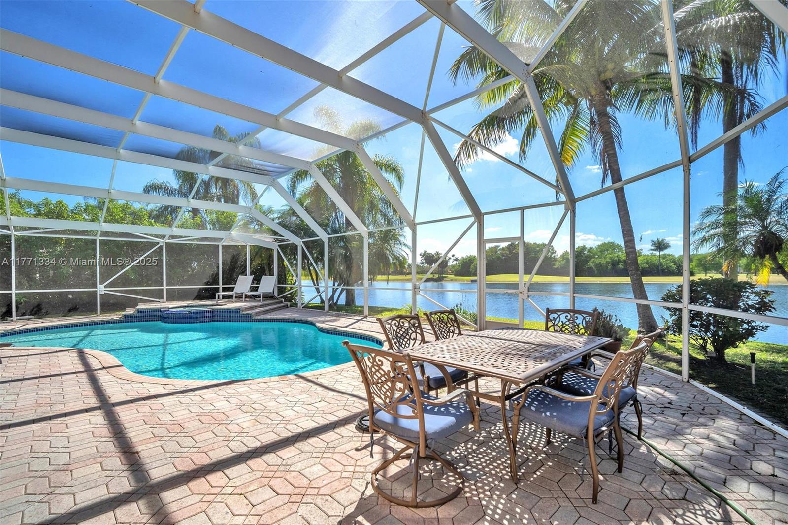 Superb one story 5 BR, 4 full bath water/golf front Capistrano model pool home in resort-level Laurels of Grand Palms. Countless upgrades, huge fully screened covered paver patio, oversized pool w/ spa, 4 dbl sliding glass doors open to gorgeous outdoor living, views. Gourmet kitchen, granite counters, wood cabinetry, 2 pantries, bfast bar, awesome built-in wet bar. Stellar Broward schools, top charter, parochial, private options. 27 hole public golf course, no golf membership req. Newer 2017 roof, accordion shutters, newer rated garage door means best protection, low ins costs, big circular paver driveway. HOA incl manned gate, cable, internet, alarm, roving patrols, tot lot, more. Walk to Whole Foods, other shopping, dining. Close to parks, library, entertainment, I-75 for easy commutes.