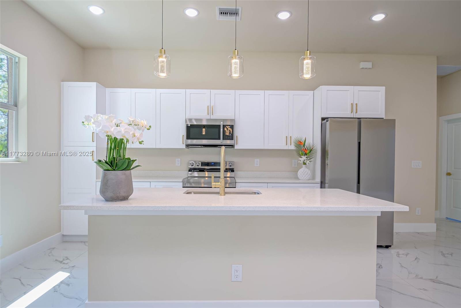 Discover a beautifully designed 3 Bed. 2 Full Bath. plus Den or fourth Bedroom home with wide Lanai and 2 car Garage; This exceptional property stands out with its high-end finishes and modern upgrades, offering a unique living experience you will not find anywhere else; This home is designed for comfort, style, and functionality, setting it apart from other properties in the area. Do not miss your chance to own this exceptional residence with the following features: Custom Interiors, Colors & smooth wall finishing, High-End Lighting & Kitchen Fixtures, kitchen’s cabinets with more storage capacity, Bathroom with elegant Hardware & Fixtures, Laundry equipped with Samsung’s Washer & Dryer & Storage cabinets; Landscaping with Irrigation System installed.