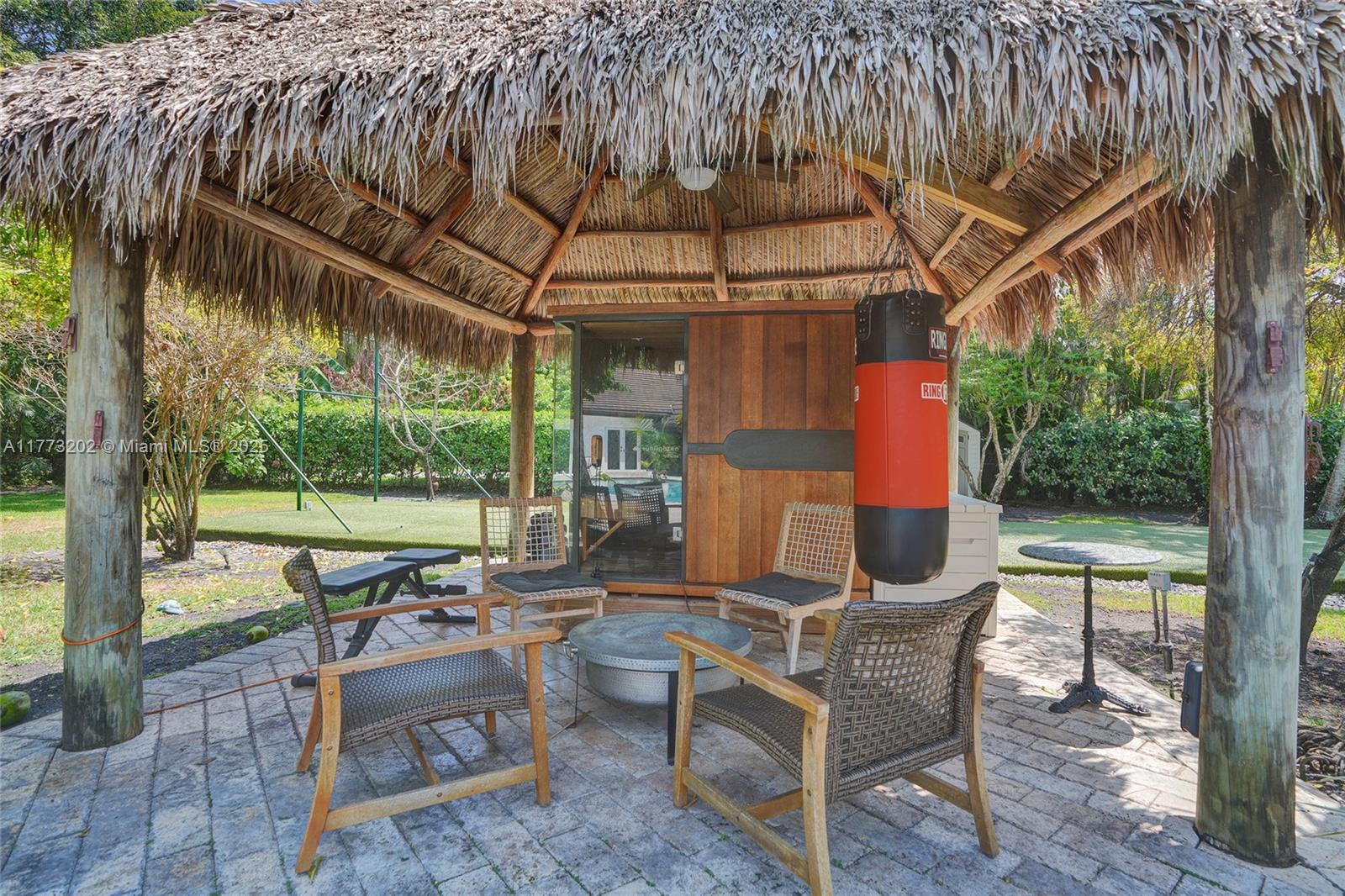 **Own Your Resort-Style Living** Welcome to a stunning estate retreat on 1.03 acres in the heart of Pinecrest. This unique property features: - Extra-large swimming pool surrounded by palm trees - Full-size tennis court with night lights - Two charming tiki huts for lounging - Six bedrooms, including two primary suites with soaring 25-foot ceilings and a loft for a home office - Four bathrooms - Wood-burning fireplace and impact windows/doors - Parking space for up to 12 vehicles The spacious main residence boasts marble floors and large glass windows, creating a bright and inviting atmosphere. Enjoy seamless indoor-outdoor living with a beautiful patio. Don’t miss out on this slice of paradise!