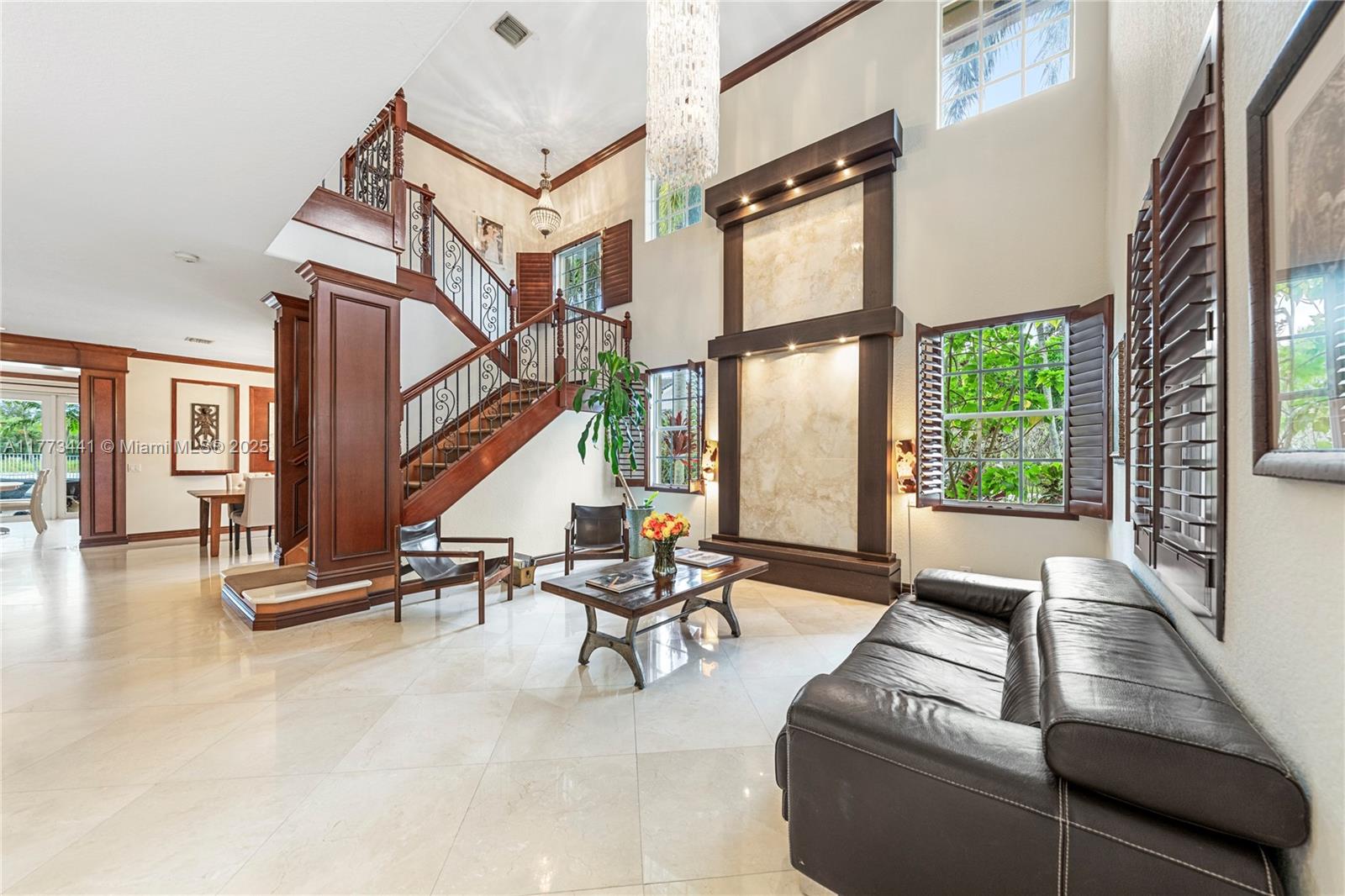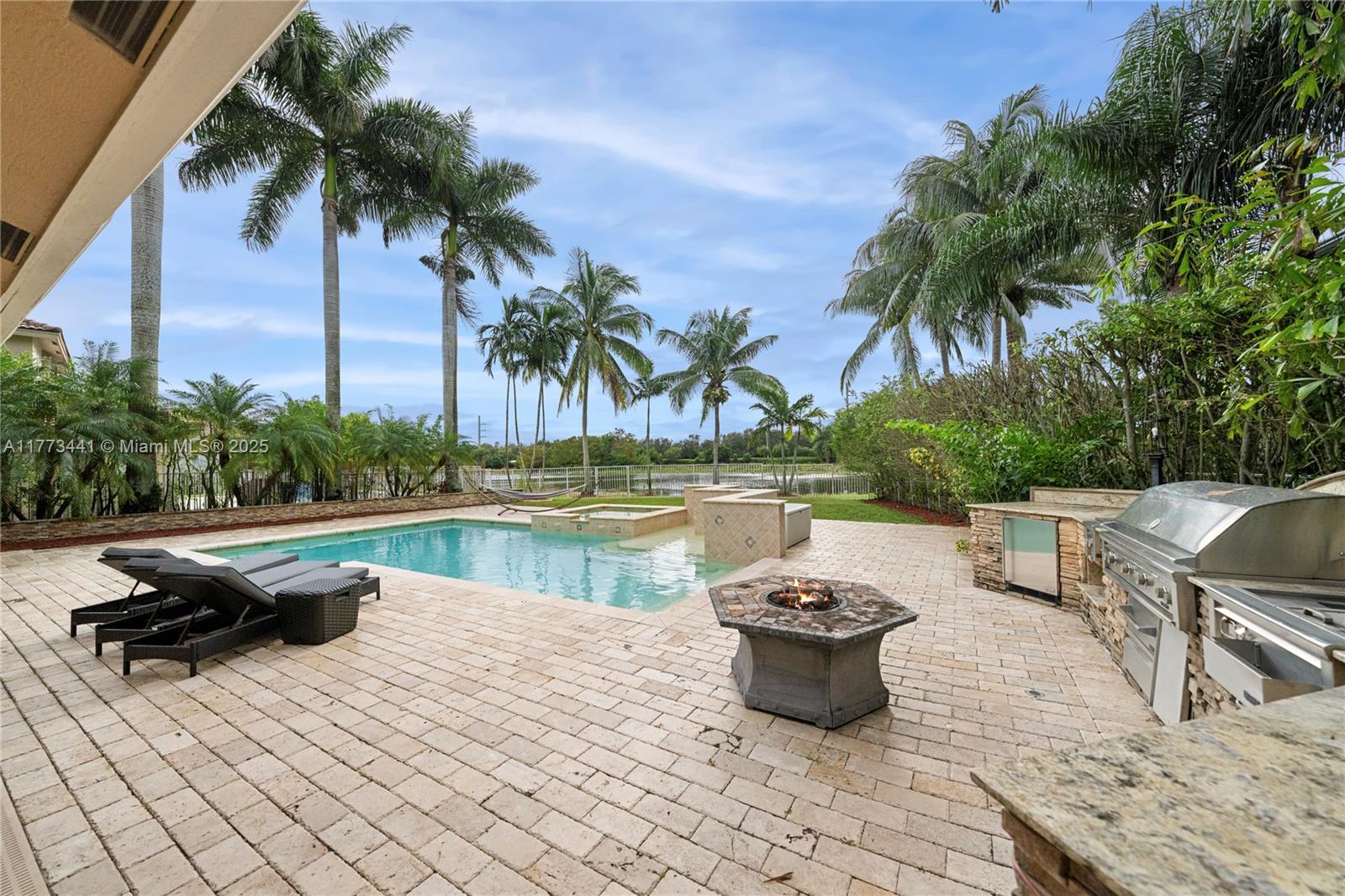 PRESENTING A CUSTOM HOME BUILT BY FORMER NFL FOOTBALL PLAYER. This One of A Kind private lakefront home on an OVERSIZED LOT in Weston Hills Country Club is truly exceptional. A fully customized home w/ 24” marble flooring & solid Italian wood doors w/ intricate designs, wrought iron staircase, & an amazing chef’s kitchen w/ HIGH END BUILT IN appliances: Subzero Refrigerator, Double Wolf Oven, Miele Coffee Maker, Nespresso machine & built in Wine Cooler. This house was made to entertain w/ built-in cabinetry & wet bar! 2nd floor features 4 LARGE sized bedrooms plus office w/ huge master suite (can make an additional room if desired). Stunning finishes w/ huge Marble Circular driveway & patio. The backyard is has a summer kitchen, sun deck, & pool w/ wading area & jacuzzi. A/c in garage!
