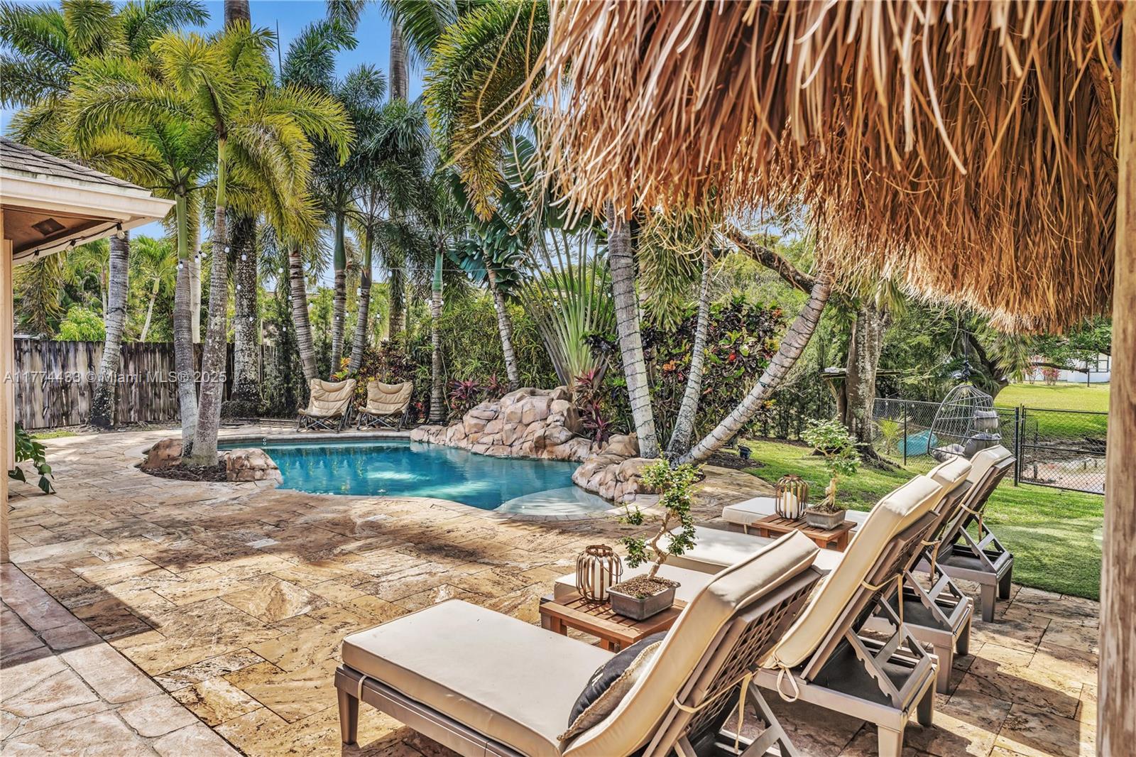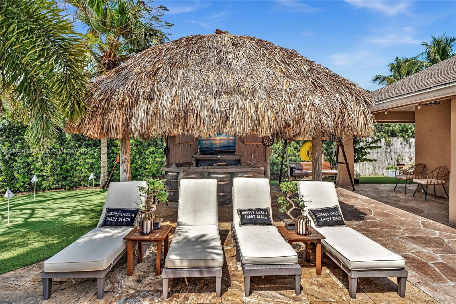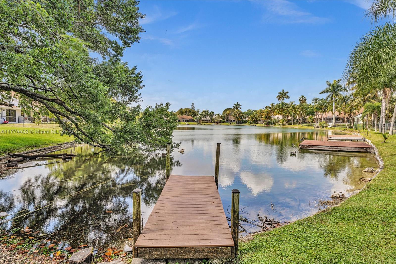 Located in Highly Desirable Country Address. This beautifully renovated home offers the perfect blend of comfort and luxury. Featuring impact windows for safety and efficiency, a brand-new A/C system and a brand-new pool heater, Built-in closets with charming barn doors. This home is move-in ready! Step outside to your oasis backyard overlooking a serene lake, complete with a private dock, tiki bar with a sink and full electric hook-up and a 3-hole putting green—perfect for entertaining or relaxing. Enjoy top A-rated schools and a prime location in a sought-after neighborhood.