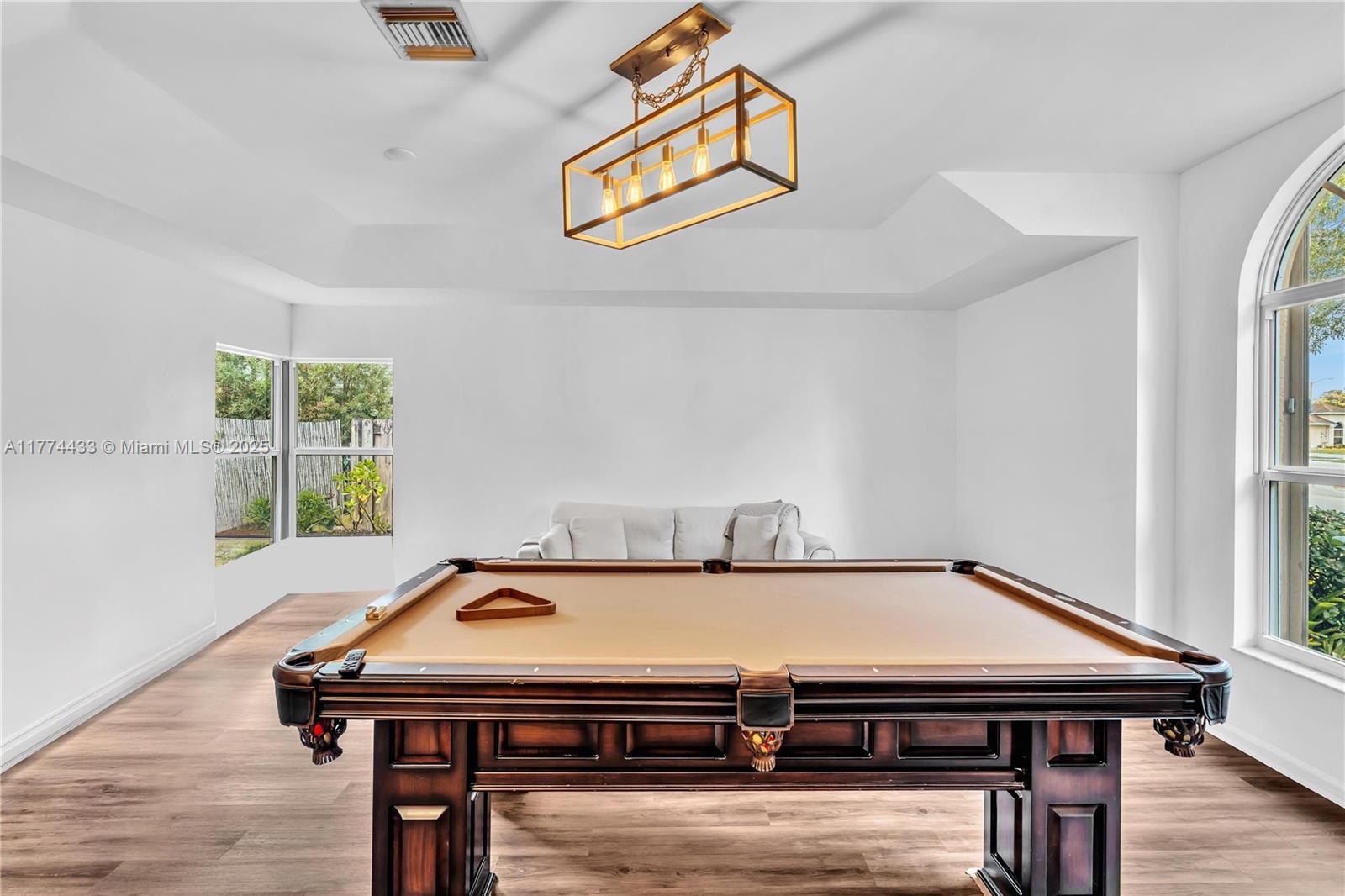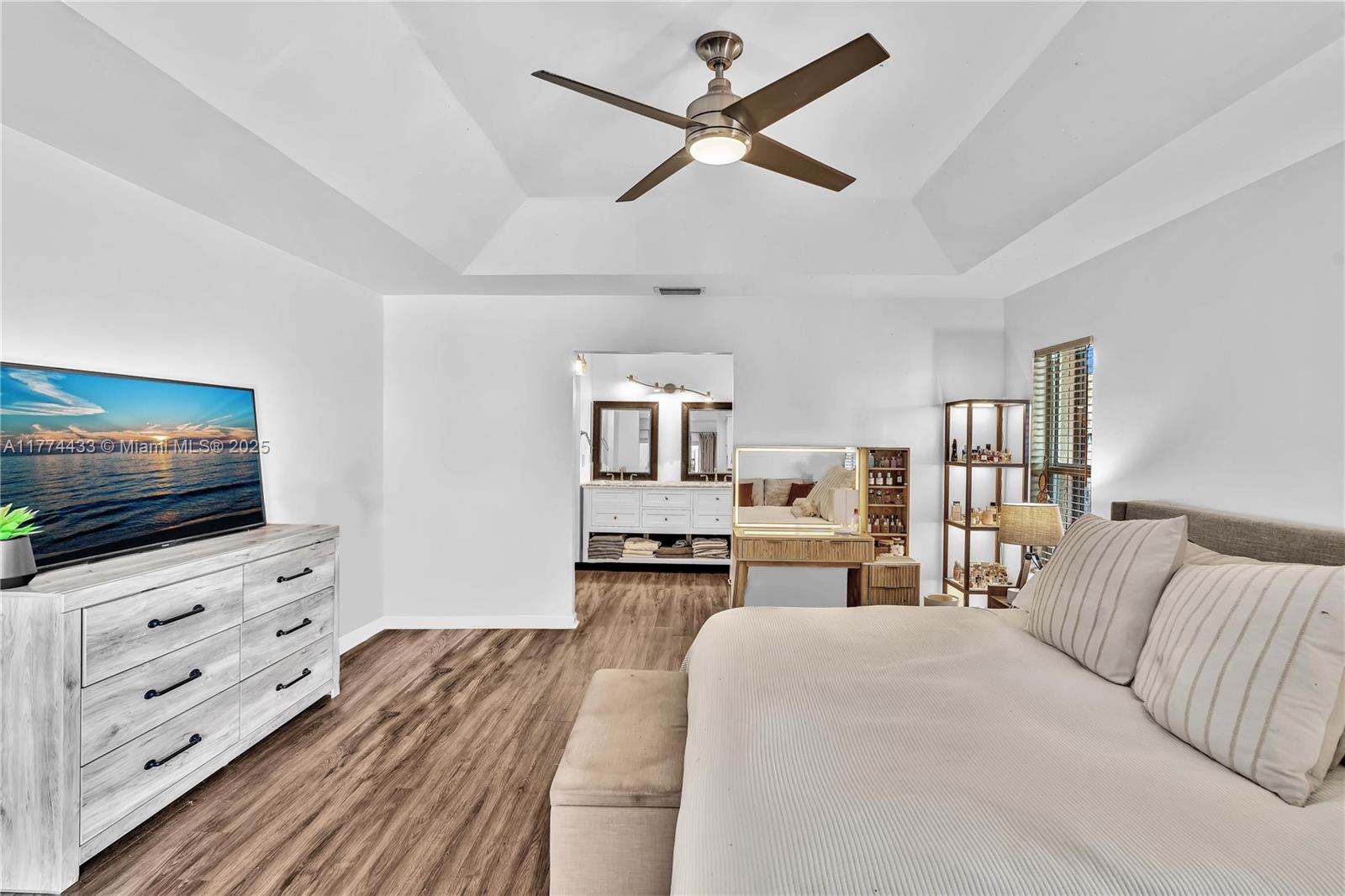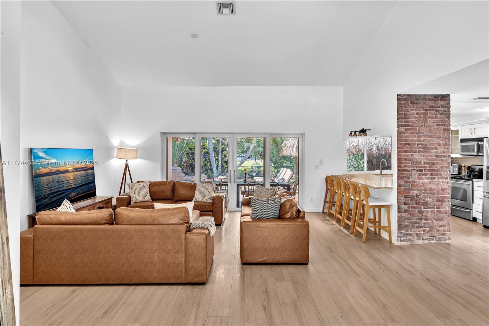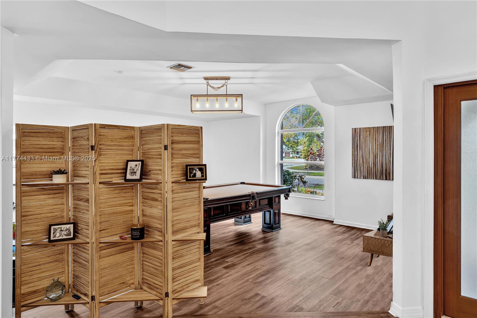 Located in Highly Desirable Country Address. This beautifully renovated home offers the perfect blend of comfort and luxury. Featuring impact windows for safety and efficiency, a brand-new A/C system and a brand-new pool heater, Built-in closets with charming barn doors. This home is move-in ready! Step outside to your oasis backyard overlooking a serene lake, complete with a private dock, tiki bar with a sink and full electric hook-up and a 3-hole putting green—perfect for entertaining or relaxing. Enjoy top A-rated schools and a prime location in a sought-after neighborhood.