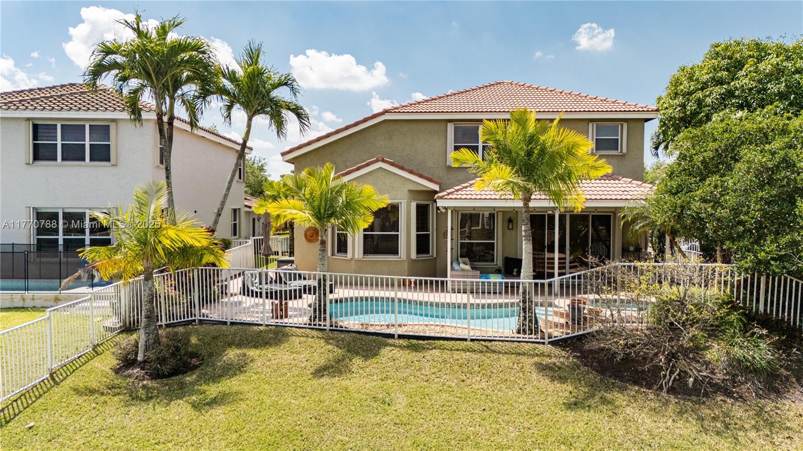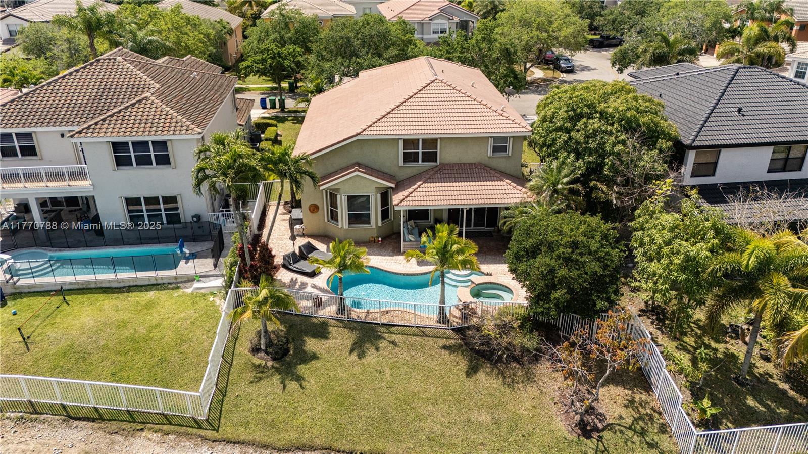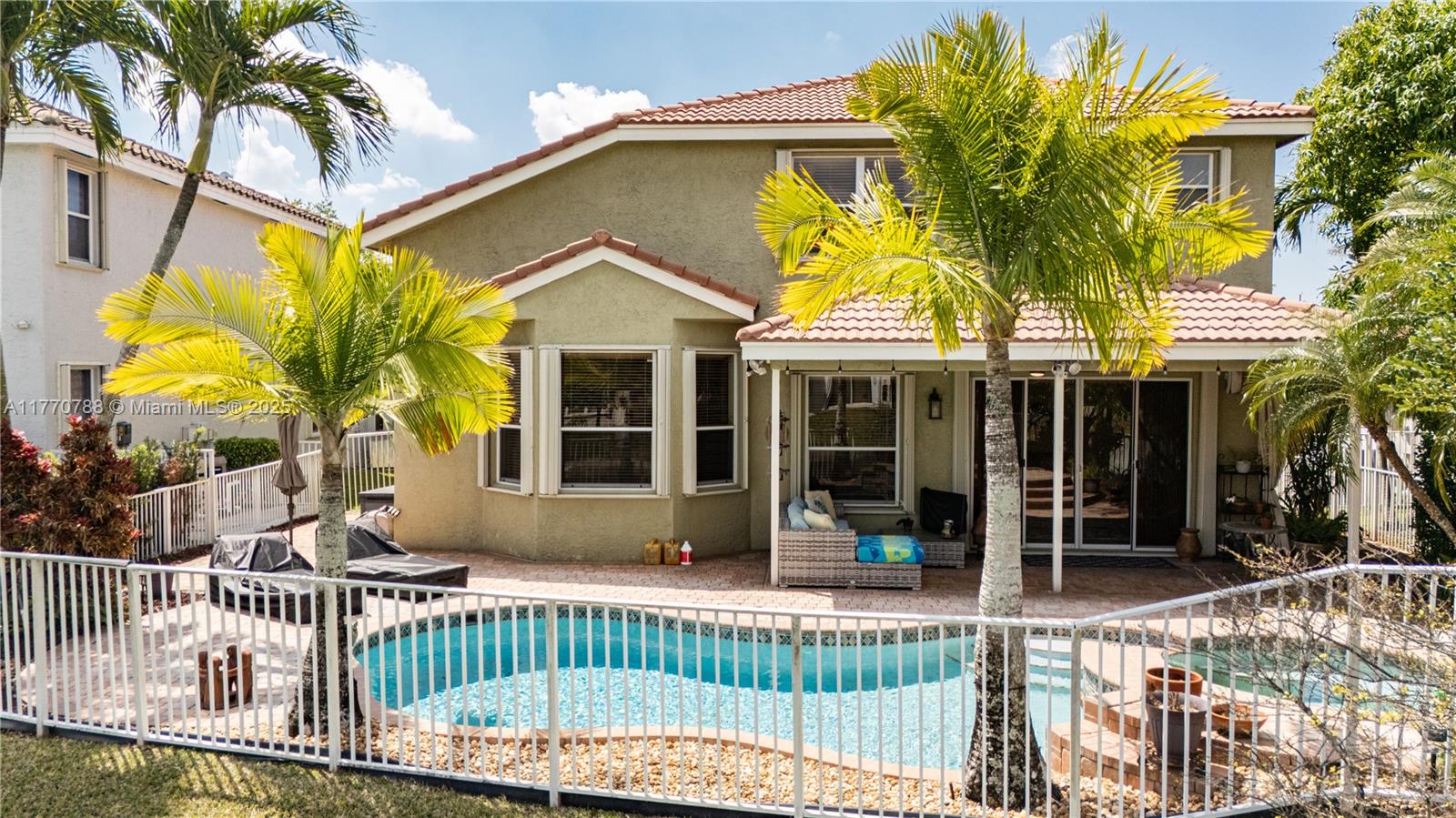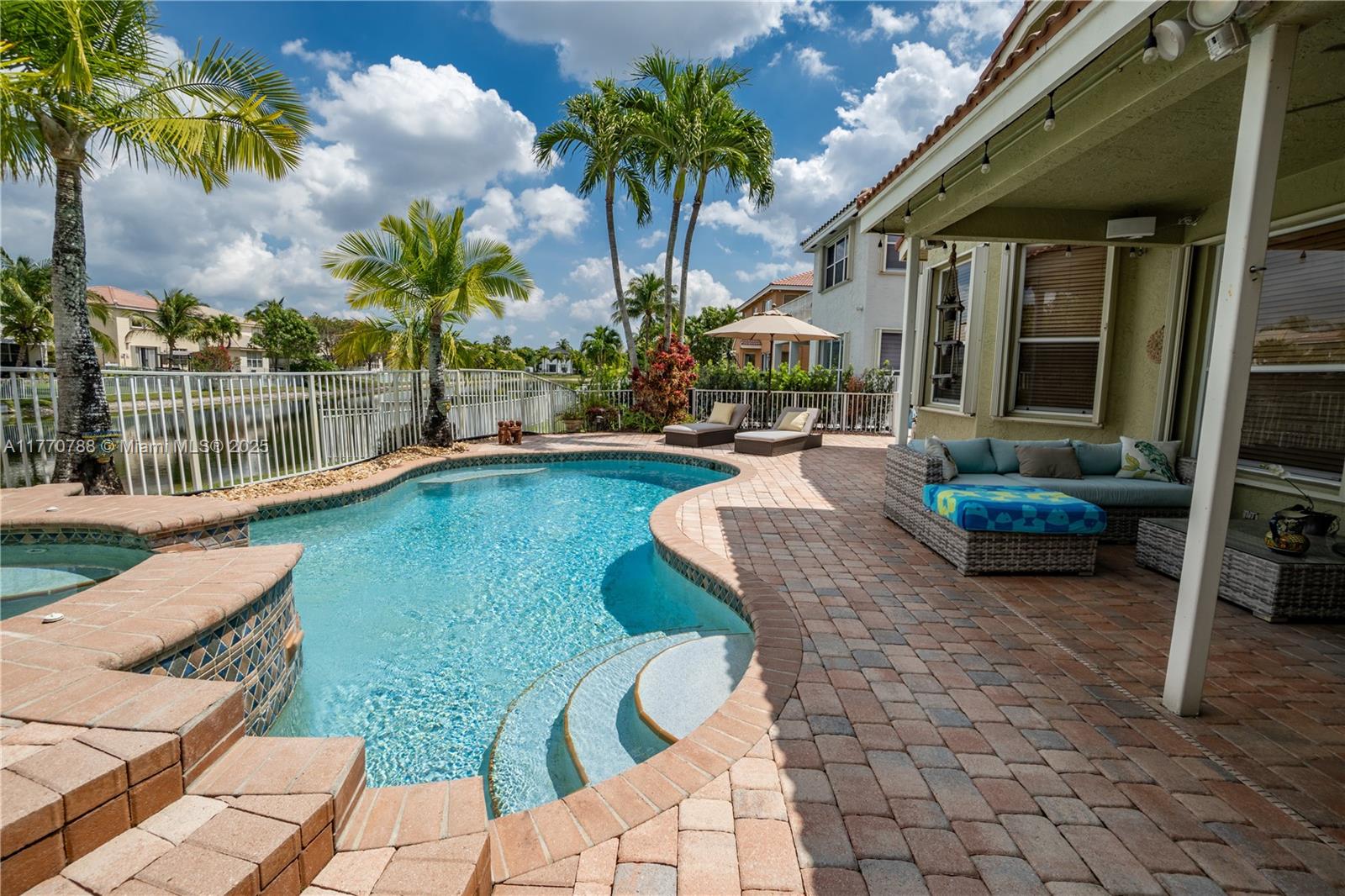 Stunning two-story home in the desired Silver Isles community offers spacious living area with plenty of natural light. Enjoy a unique multi-level layout featuring a convenient downstairs bedroom and full bath. The primary suite has walk-in closets and a split main bathroom with two toilets, two vanities, a soaking tub, and a shared shower. The kitchen offers stainless steel appliances and granite countertops. Enjoy a view of the pool and the lake from the breakfast area. Step outside to a sparkling pool, jacuzzi, and tranquil waterfront views. With a 300A electrical panel, accordion shutters, and a 2-car garage, this home is both stylish and practical. The community has a pool, gym, and playgrounds. Close to hospital, highways and shopping. Don't miss this amazing opportunity!