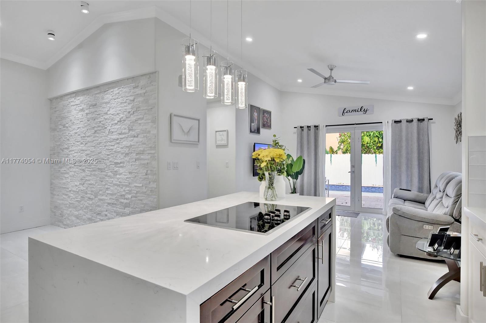 Miami Lakes Pool Home! Gorgeous home completely remodeled, formal living, dining, amazing kitchen with stainless steel appliances and a cooking island with an electric stove top. This home has an over size master bedroom that includes a walk-in-closet, a master bath with double sinks, shower and whirlpool tub. It has a split bedroom plan, laundry area with washer & dryer, family room and one car garage. It has a breathtaking pool area and a covered patio which is perfect for barbecues and entertaining. Impact windows and front door.