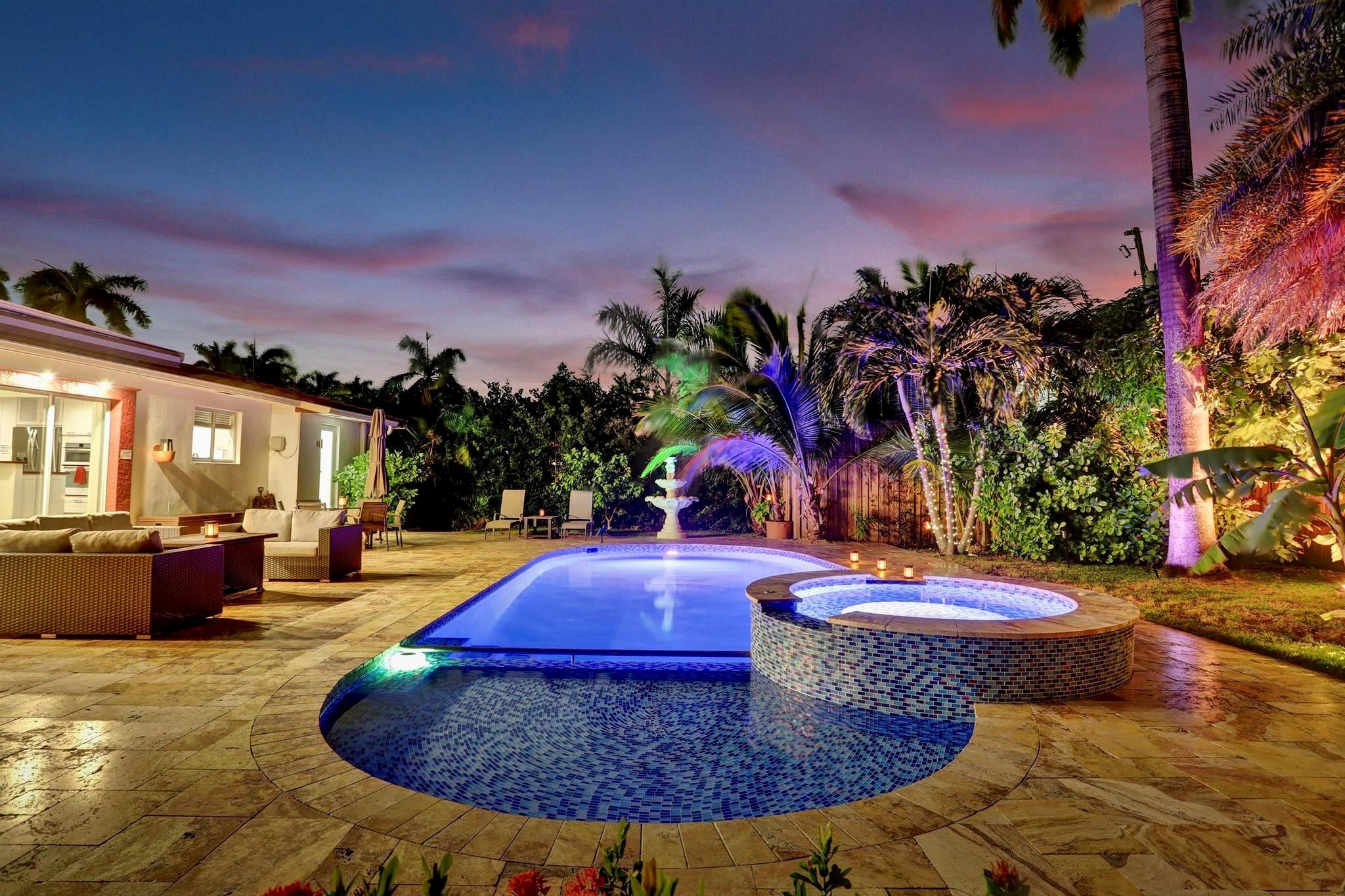 Live half a mile from Hollywood Beach and the Broadwalk! This beautiful 4 bed/3 bath pool home in Hollywood Lakes is on a quiet block, 2 blocks from South Lake and 1.5 miles to the ArtsPark and Downtown Hollywood. Property has over $400k in upgrades, including total pool/backyard renovation, solar panels w battery for hurricane backup, new AC/ductwork, gated back carport and newer appliances. They also added permitted bedroom, bathroom and laundry room. The private backyard (on a double lot!), features a heated saltwater pool, jacuzzi, toddler pool, outdoor shower and tropical landscaping with palms and fruit trees. Conveniently located 6 miles to FLL airport, 5 miles to Dania Pointe and 9 miles to Downtown Ft Lauderdale.