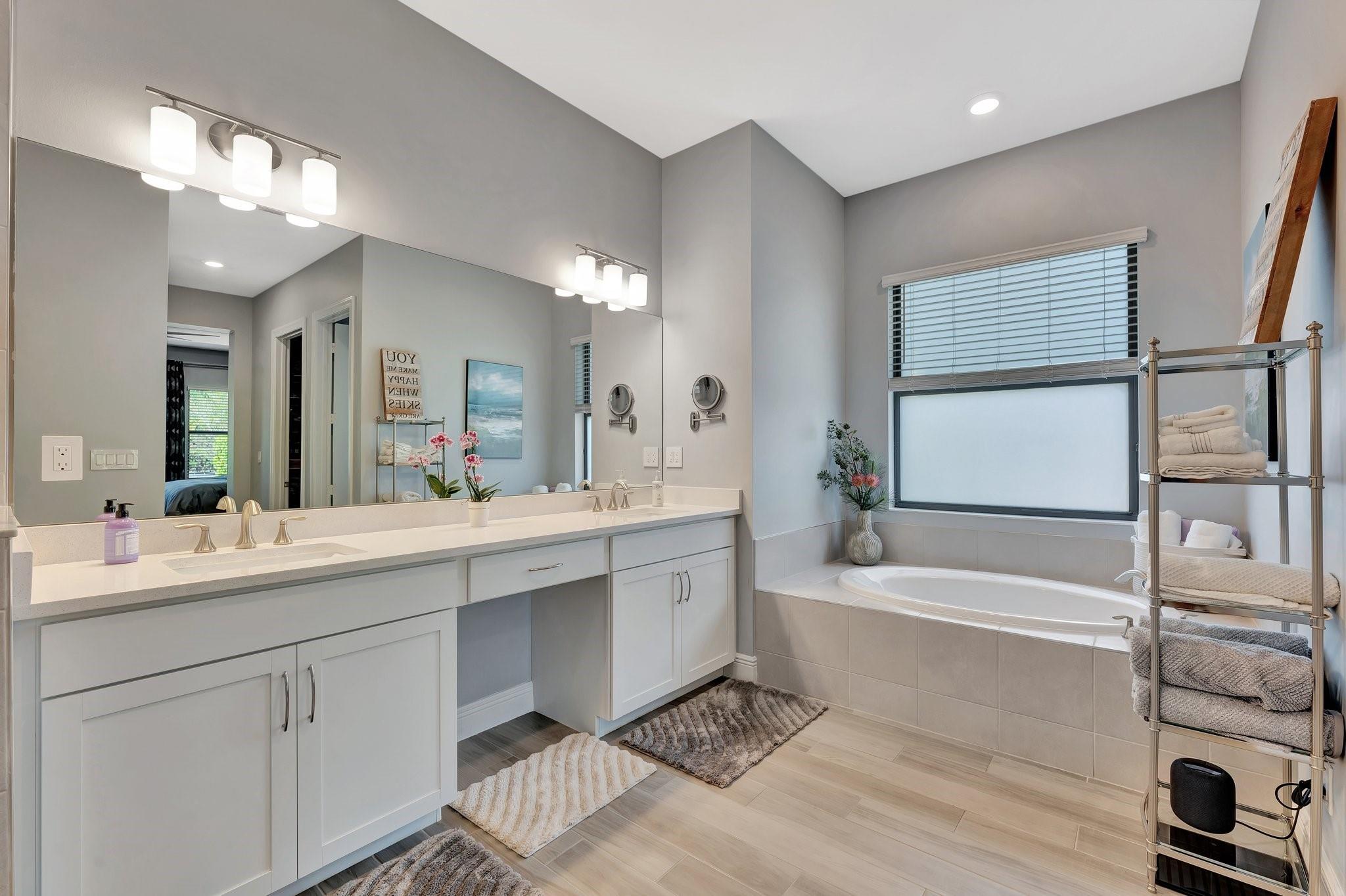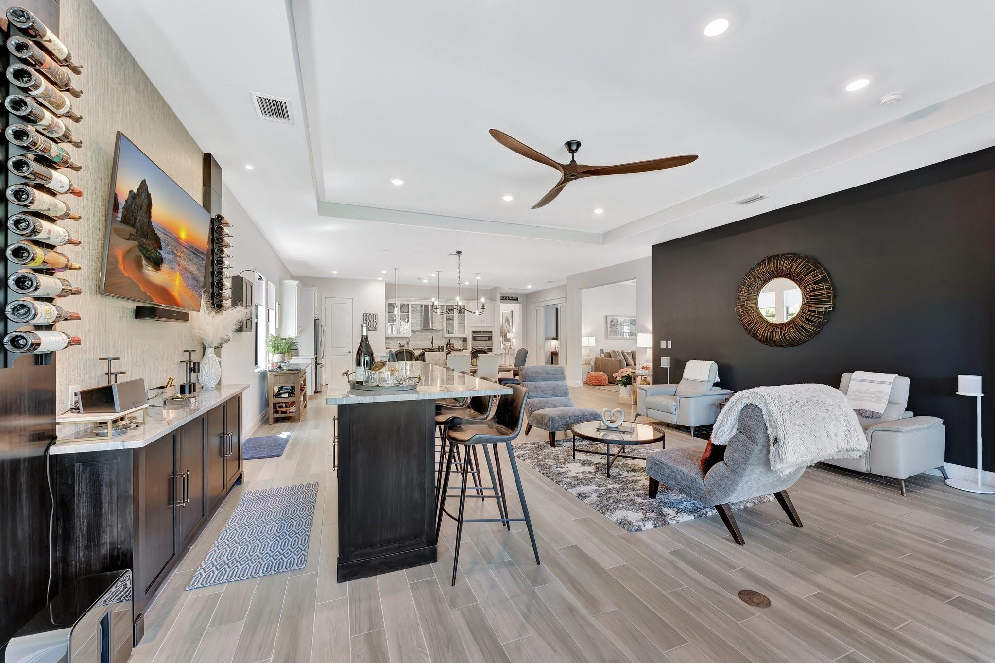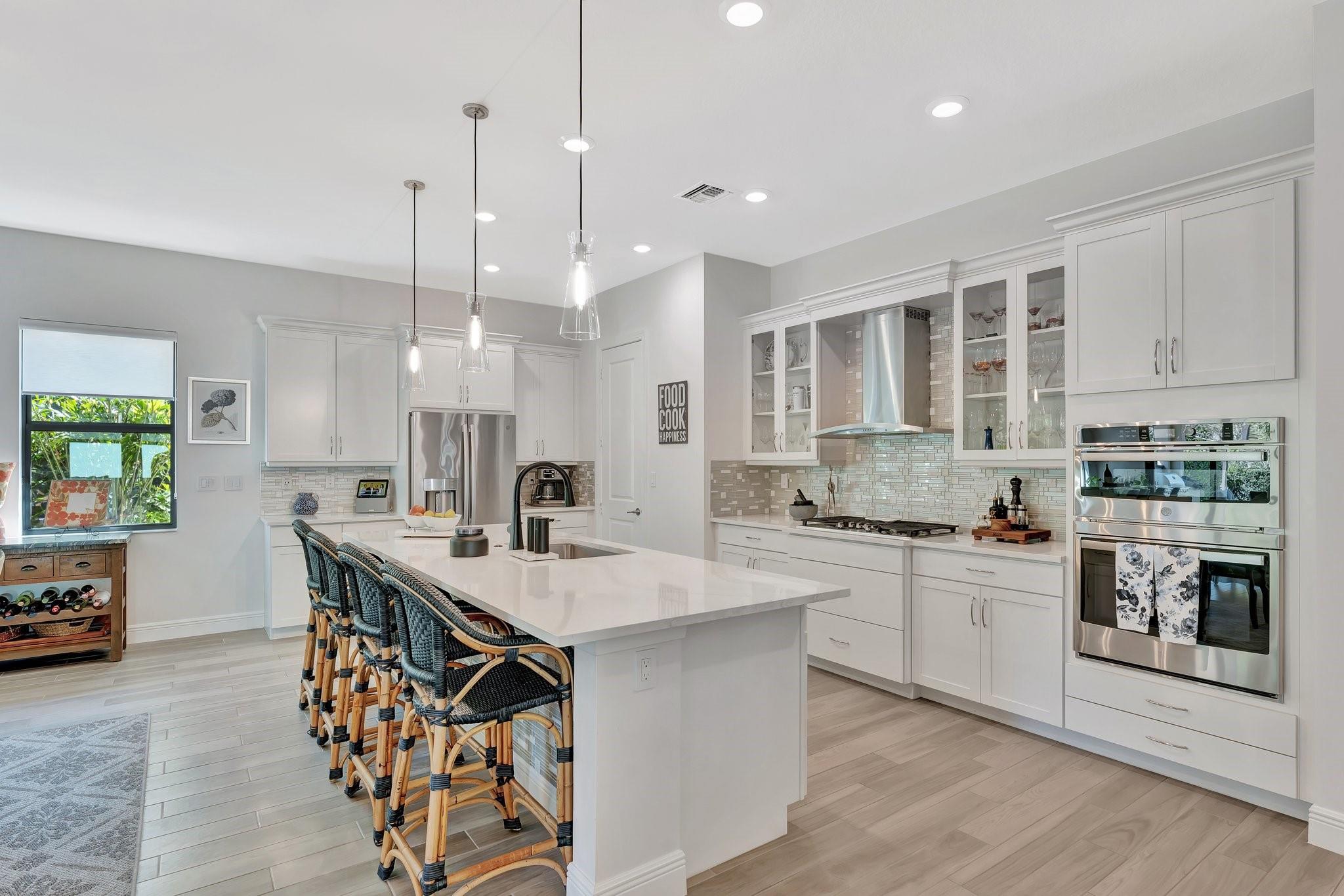 Luxurious Parkland Bay Home on a 10,465 sq ft Oversized Lot. Notable upgrades include a whole-house Generac generator with an extended warranty, an 8-year warranty on the AC system, and upgraded lighting throughout, including designer chandeliers. Additional enhancements include impact windows, a four-panel stacker patio door with automated sunscreen, upgraded window treatments, an epoxy garage floor, and a fully fenced yard. A movable custom-built bar crafted from maple wood features an onyx countertop and wine display. Step outside to your private oasis—a spacious, park-like backyard extending 5,000 sq ft beyond the extended paver patio, complete with a built-in natural gas gourmet kitchen equipped with top-of-the-line Blaze appliances and a built-in refrigerator.
