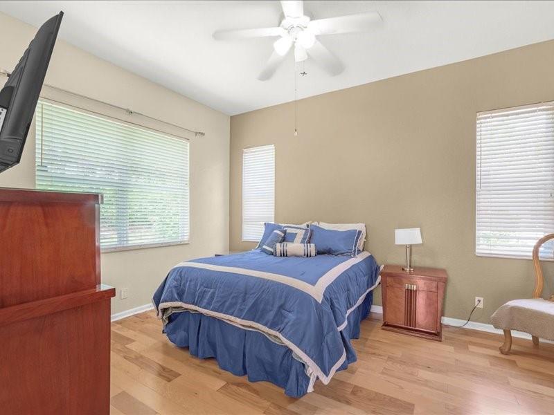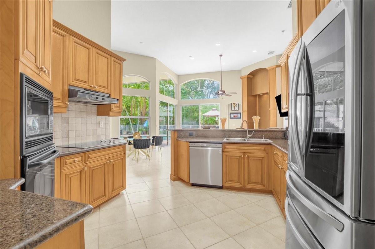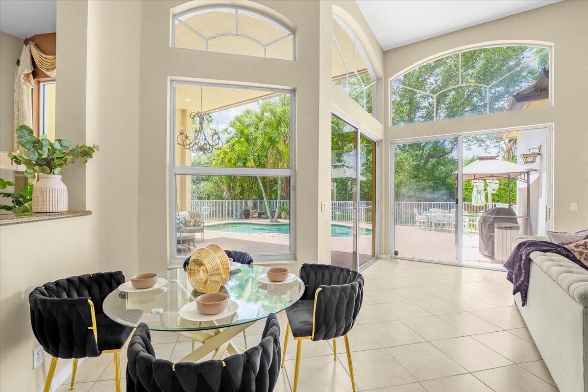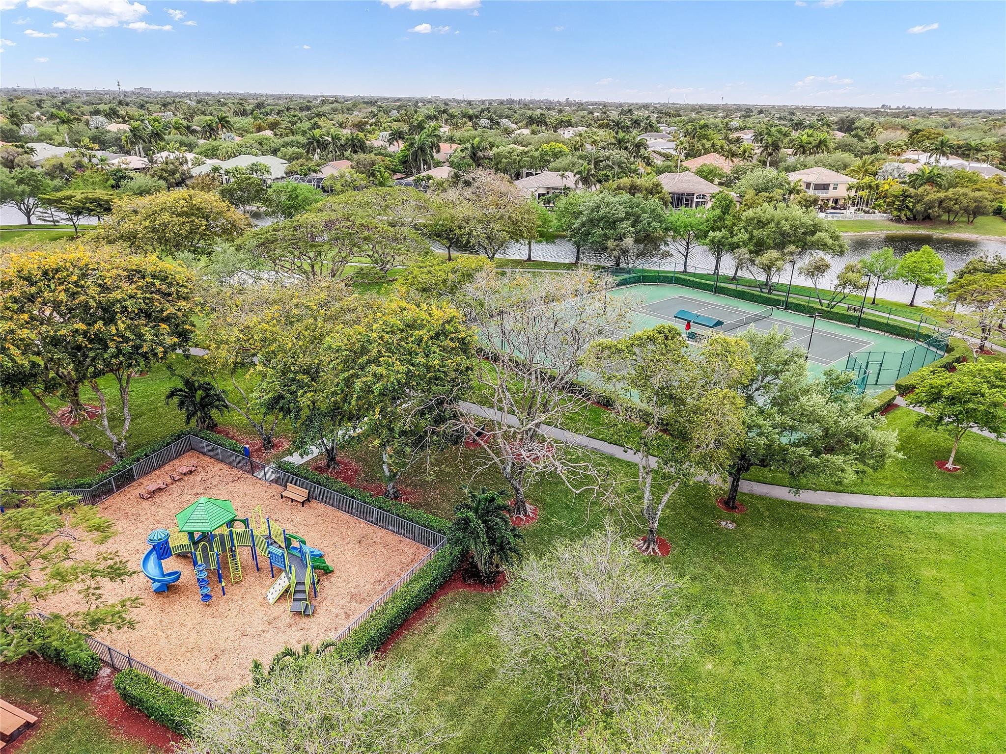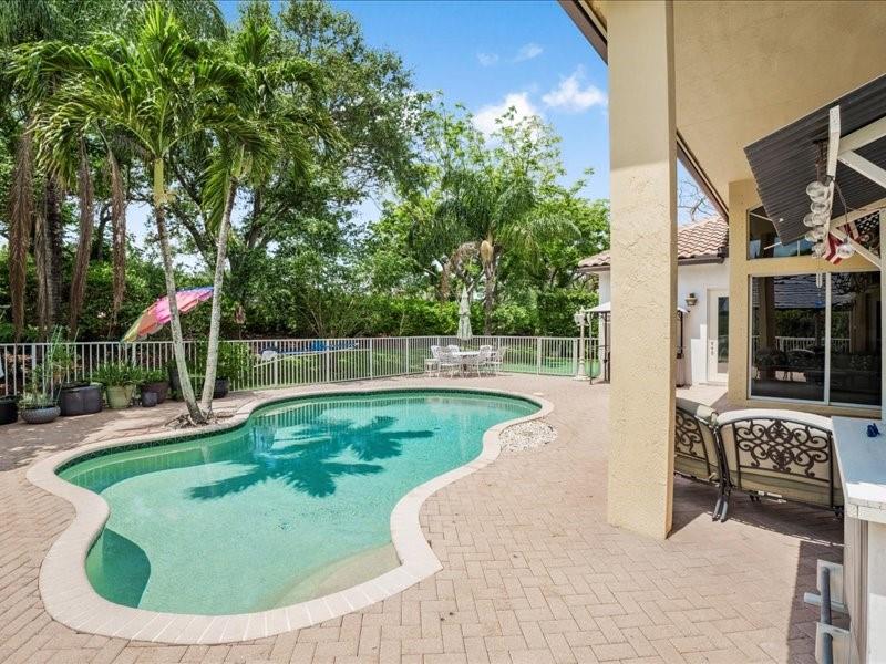 Motivated Seller! Welcome to this sought after gated community, Fox Ridge in Parkland. NEW ROOF (2023) with oversized gutters. Brand new dual AC units. This stunning five-bedroom, four-bath estate features 16-foot ceilings, three way split floor plan, a three-car garage, and a private tropical pool with an oversized patio. Inside, you'll find large tile flooring, wood laminate in the bedrooms, and custom California-style closets in every walk-in. The kitchen includes a breakfast nook with a glassed bay window. Located in a 24-hour gated community with tennis courts, a playground, and a picnic area, this home offers both elegance and convenience!