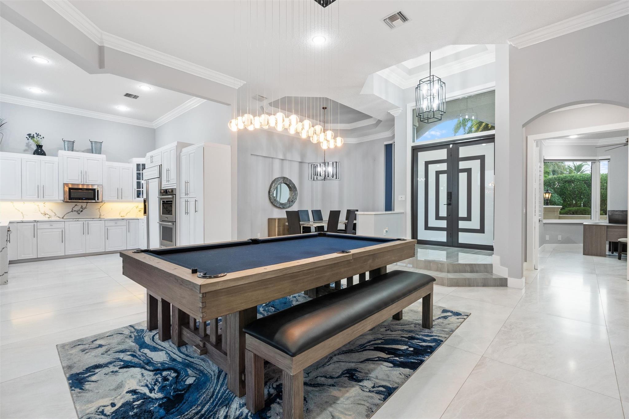 WOW OH WOW!! YOU DON'T WANT TO MISS THIS FABULOUS ONE STORY WATERFRONT HOME IS SOUGHT AFTER HAWKS LANDING*COMPLETELY RENOVATED MODERN INTERIOR IN 2022*24X48 PORCELAIN FLOORS THROUGH-OUT* IMPACT WINDOWS AND DOORS 2023* KITCHEN W/ WHITE CABINETRY AND QUARTZ COUNTERS W WATER FALL EDGE AND STAINLESS STEEL APPLIANCES*4 BEDROOMS PLUS OFFICE AND 3 1/2 BATHS*TWO AC'S 2015/2022*LUSHLY LANDSCAPED*TRIPLE SPLIT PLAN*FRESHLY PAINTED EXTERIOR*CIRCULAR DRIVWAY*3 CAR GARAGE WITH MINI SPLIT AC*REMODELED POOL AND SPA 2015 WITH WATER FEATURES AND LED LIGHTS*MOVE IN READY*THIS SPECIAL PROPERTY IS READY TO SEE TODAY! ENJOY THE HAWKS LANDING LIFESTYLE W/ RENOVATED CLUBHOUSE & FITNESS CENTER*7 LIGHTED CLAY TENNIS COURTS*2 PICKLEBALL COURTS*FULL COURT BASKETBALL*COVERED PLAYGROUND*NAIL SALON & MORE!