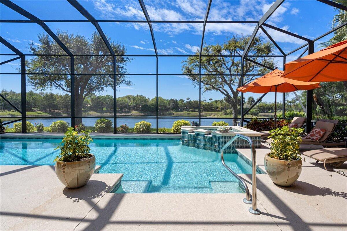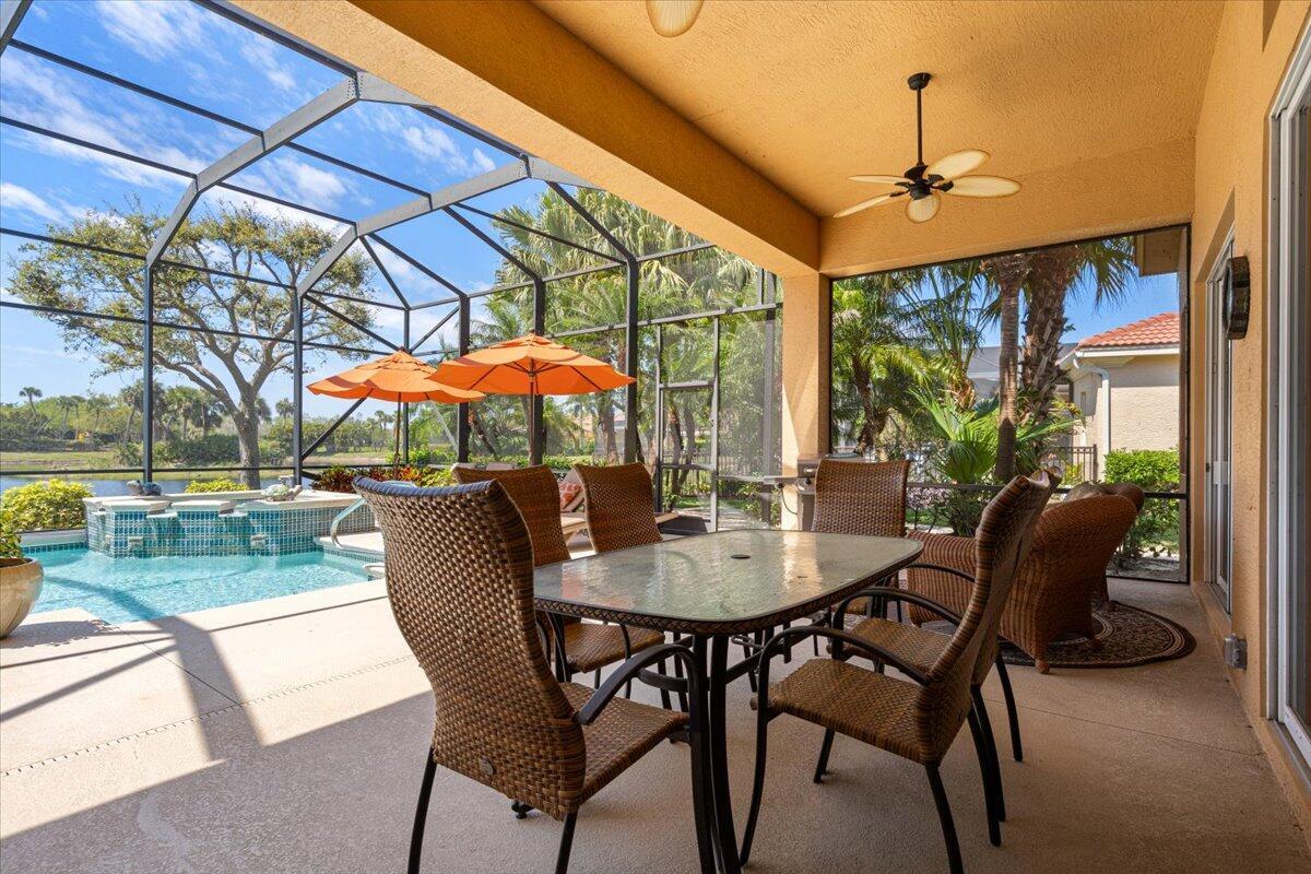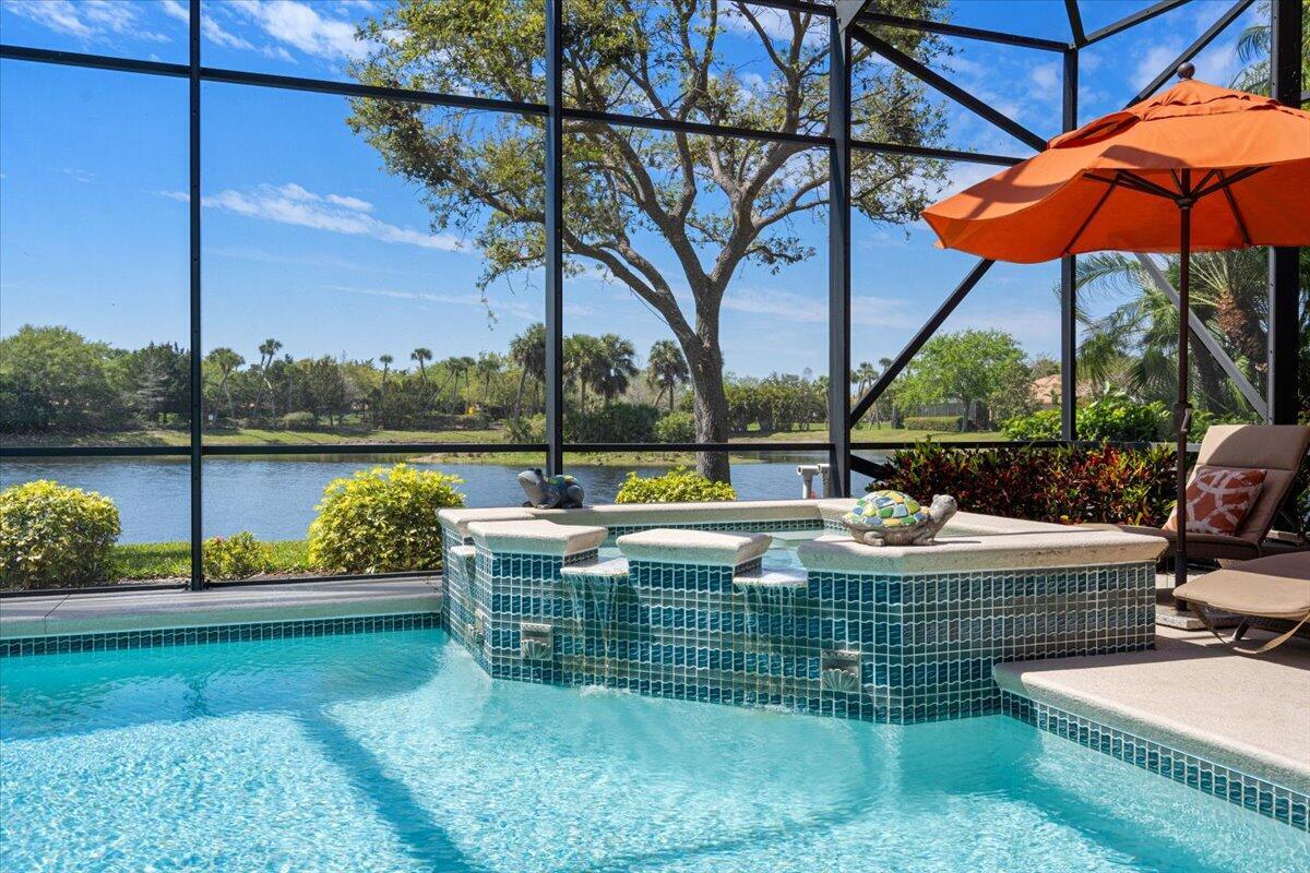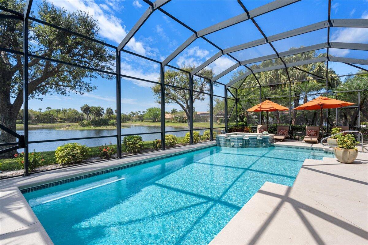 Fabulous Lake VIEW pool home in Verano (PGA Village). Features CBS Construction, Impact hurricane windows & doors, Barrel Tile roof & paver driveway. Furnished & decorated 4 BR's, 3.5 BA's, custom window Treatments, volume ceilings, side load 2 Car Garage with room for a golf Cart. Boasting formal living room, dining room, eat in Kitchen with 42'' cabinets, granite counter tops, tile backsplash, breakfast bar, stainless steel appliances & pantry. Grand Master Suite with sitting area, walk in closets & LG Master BA includes Roman Tub, dual sinks & separate shower. Split floor plan offers privacy for guests. Fantastic Screen enclosed Lanai with new pool heater. Enjoy this exceptional lake view w/ mature landscaping & view of an island in the lake! Can Move right in. ''TURNKEY'