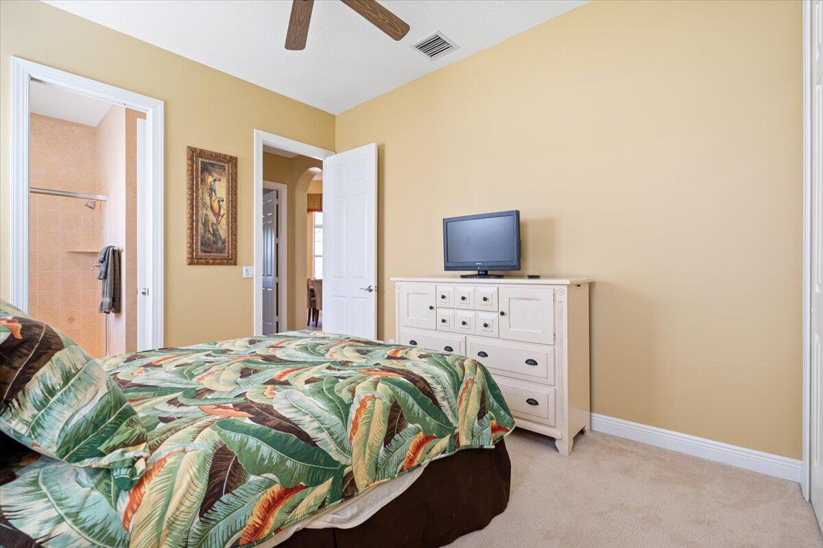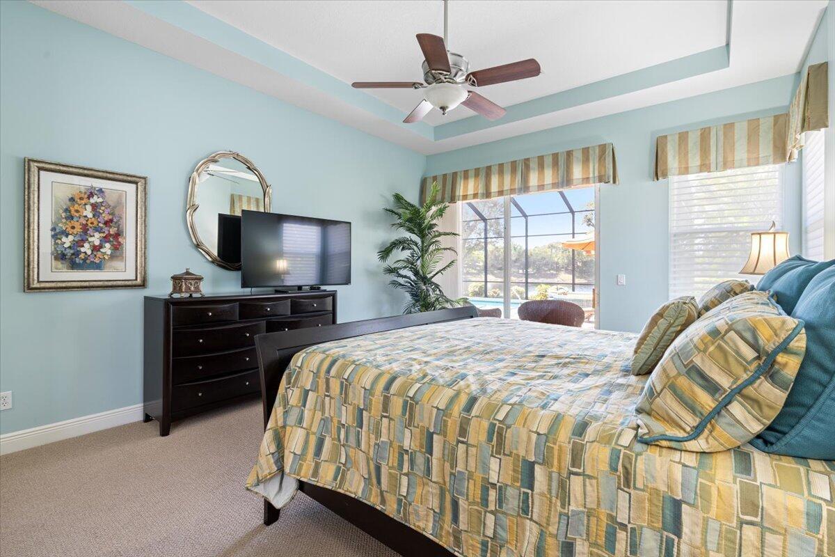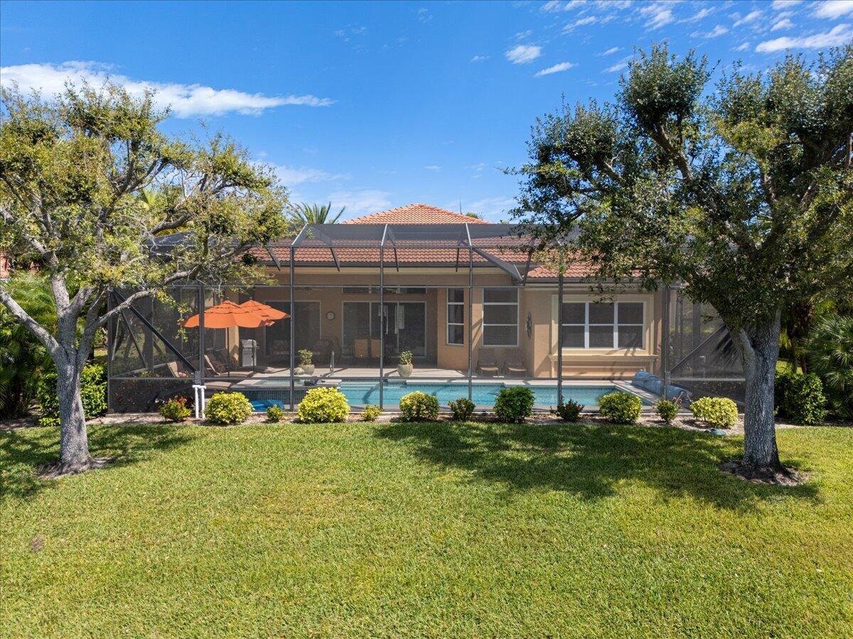 Fabulous Lake VIEW pool home in Verano (PGA Village). Features CBS Construction, Impact hurricane windows & doors, Barrel Tile roof & paver driveway. Furnished & decorated 4 BR's, 3.5 BA's, custom window Treatments, volume ceilings, side load 2 Car Garage with room for a golf Cart. Boasting formal living room, dining room, eat in Kitchen with 42'' cabinets, granite counter tops, tile backsplash, breakfast bar, stainless steel appliances & pantry. Grand Master Suite with sitting area, walk in closets & LG Master BA includes Roman Tub, dual sinks & separate shower. Split floor plan offers privacy for guests. Fantastic Screen enclosed Lanai with new pool heater. Enjoy this exceptional lake view w/ mature landscaping & view of an island in the lake! Can Move right in. ''TURNKEY'