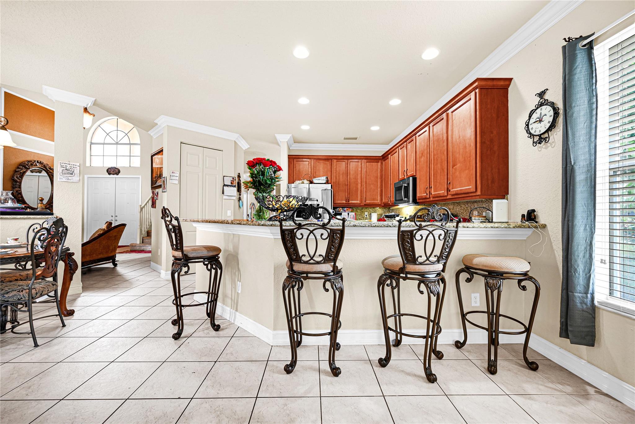 This stunning 4-Bedroom, 2.5-Bathroom home sits on a spacious, fully fenced 8,100 sq. ft. corner lot in the prestigious Canyon Springs gated community. Built in 2007, it features a grand entryway with 20-foot ceilings and an open-concept kitchen with granite countertops, stainless steel appliances, and ample cabinetry. The expansive master suite offers a sitting area, his and hers walk-in closets, and a spa bathroom featuring a whirlpool tub, a separate shower, and his and hers sinks. Additional highlights include a large laundry room, storm shutters, and a 2-car garage with side-door entry. Enjoy resort-style living with amenities including a clubhouse, pool, state-of-the-art gym, nursery, tennis courts, event halls and much more! Motivated Seller!! Schedule your exclusive tour today.