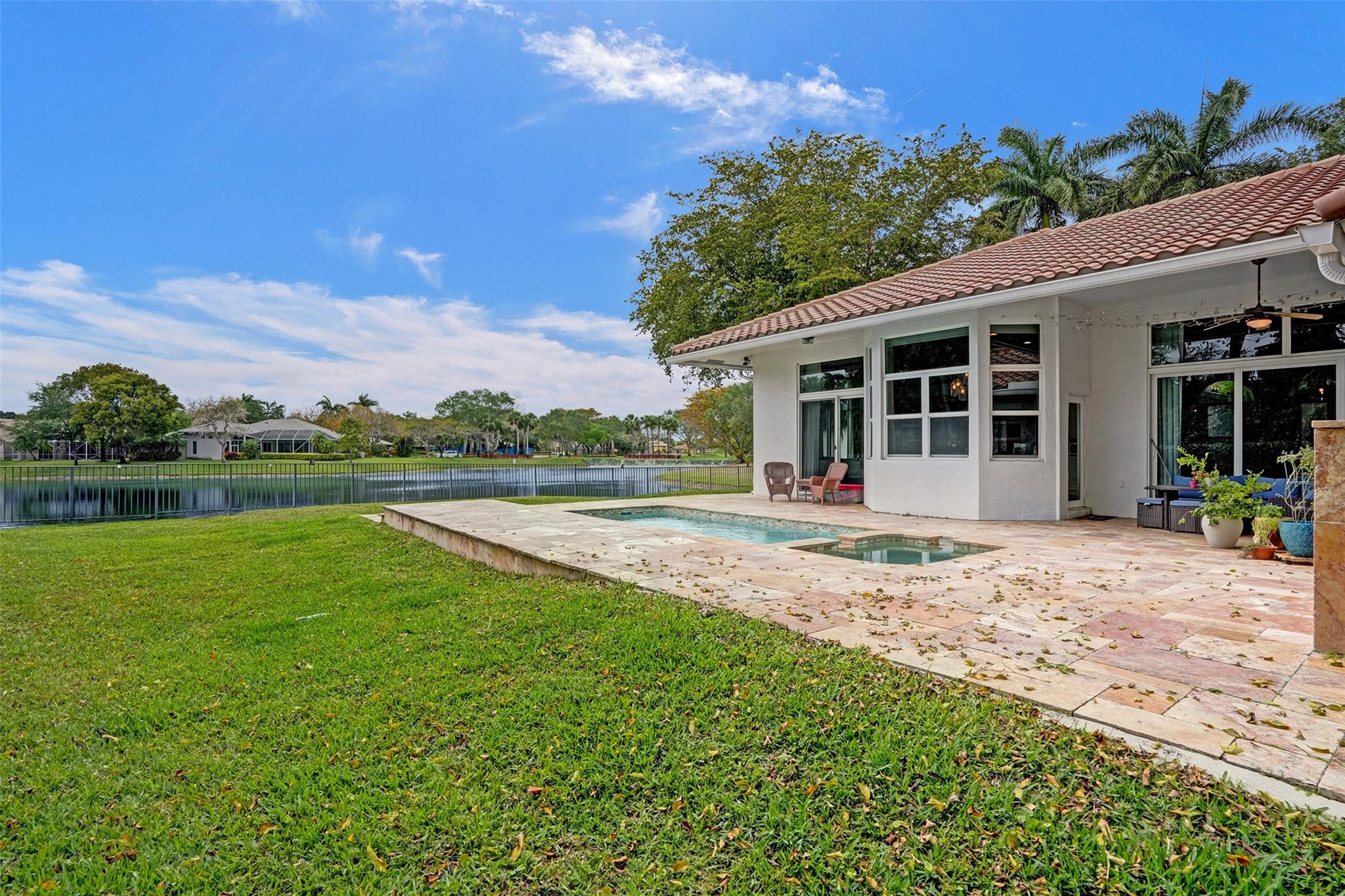 Tucked away at the end of a quiet cul-de-sac, this Meadow Run charmer sits alongside a peaceful lake. New roof in 2015. Kids can walk to all three of Parkland's highly rated schools. Updated pool area is perfect for entertaining and year-round fun. Oversized lot (.32 acre) sits at the end of an inviting tree-lined street. Interior is light and brite, and well-appointed: impact windows, updated kitchen and baths, wood floors, salt pool heated spa, - a must see. Meadow Run is a well-run premier subdivision in the heart of Parkland - recently finished improvements with enhanced security/cameras, street coating, common area landscaping/monument signs, and added 2 pickleball courts and basketball.