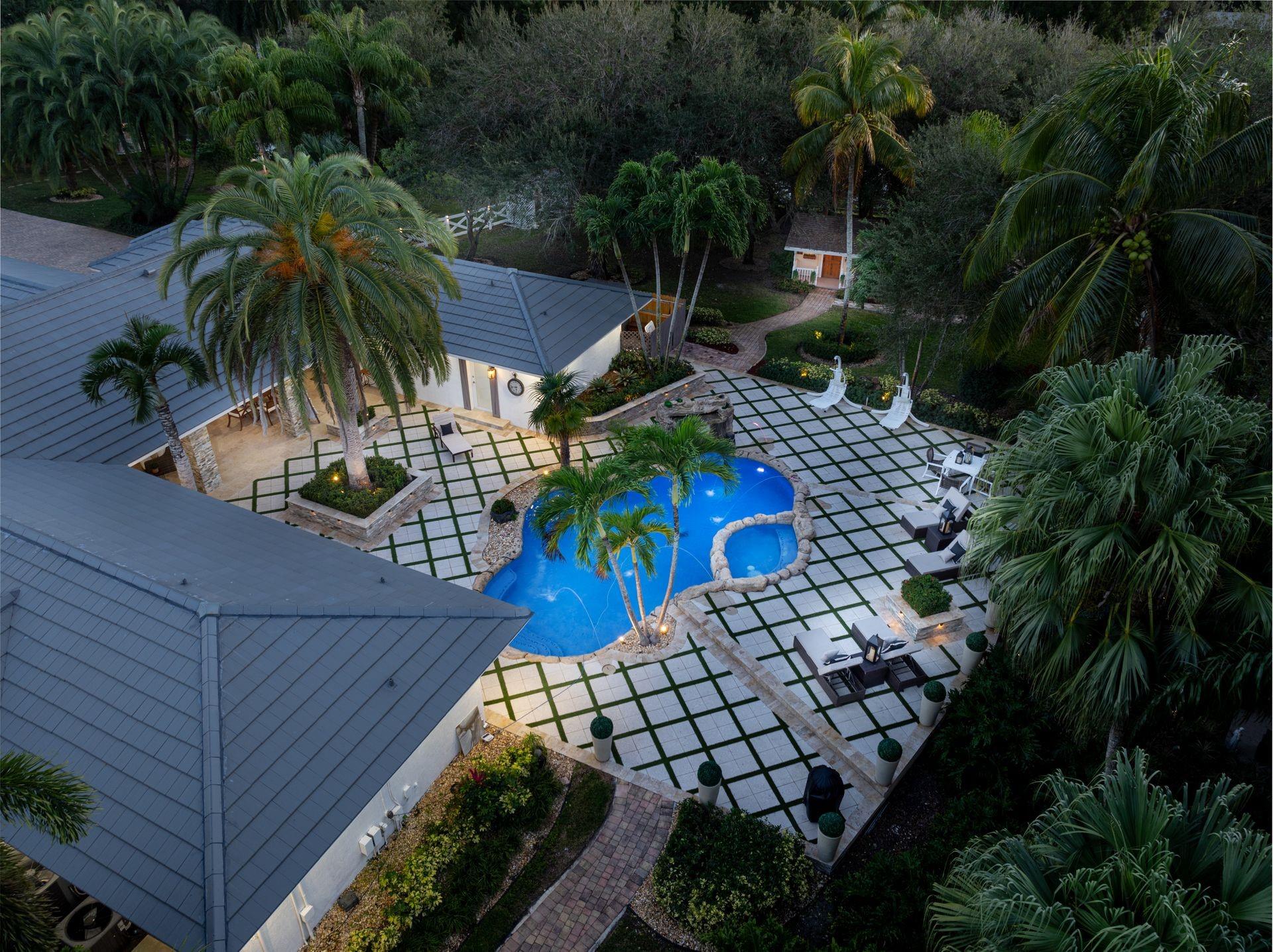 Nestled on 5 private acres, this extraordinary estate spans 10,000 SF and offers a world-class lifestyle with a full equestrian center, separate guest home, private sauna, and lush gardens featuring a gazebo and koi pond. Ideally located just 30 minutes from Miami and Fort Lauderdale airports, this hidden oasis combines luxury, security, and resort-style living. Behind grand gates, the main residence is designed for both lavish entertaining and everyday comfort, showcasing 5 bedrooms, 4.5 bathrooms, a home theater, billiards room, office, and gym. Brazilian hardwood floors, coffered ceilings, and a chef’s kitchen with marble finishes elevate the sophisticated interiors. The primary suite and newly renovated spa-like bathroom opens to a serene outdoor retreat.