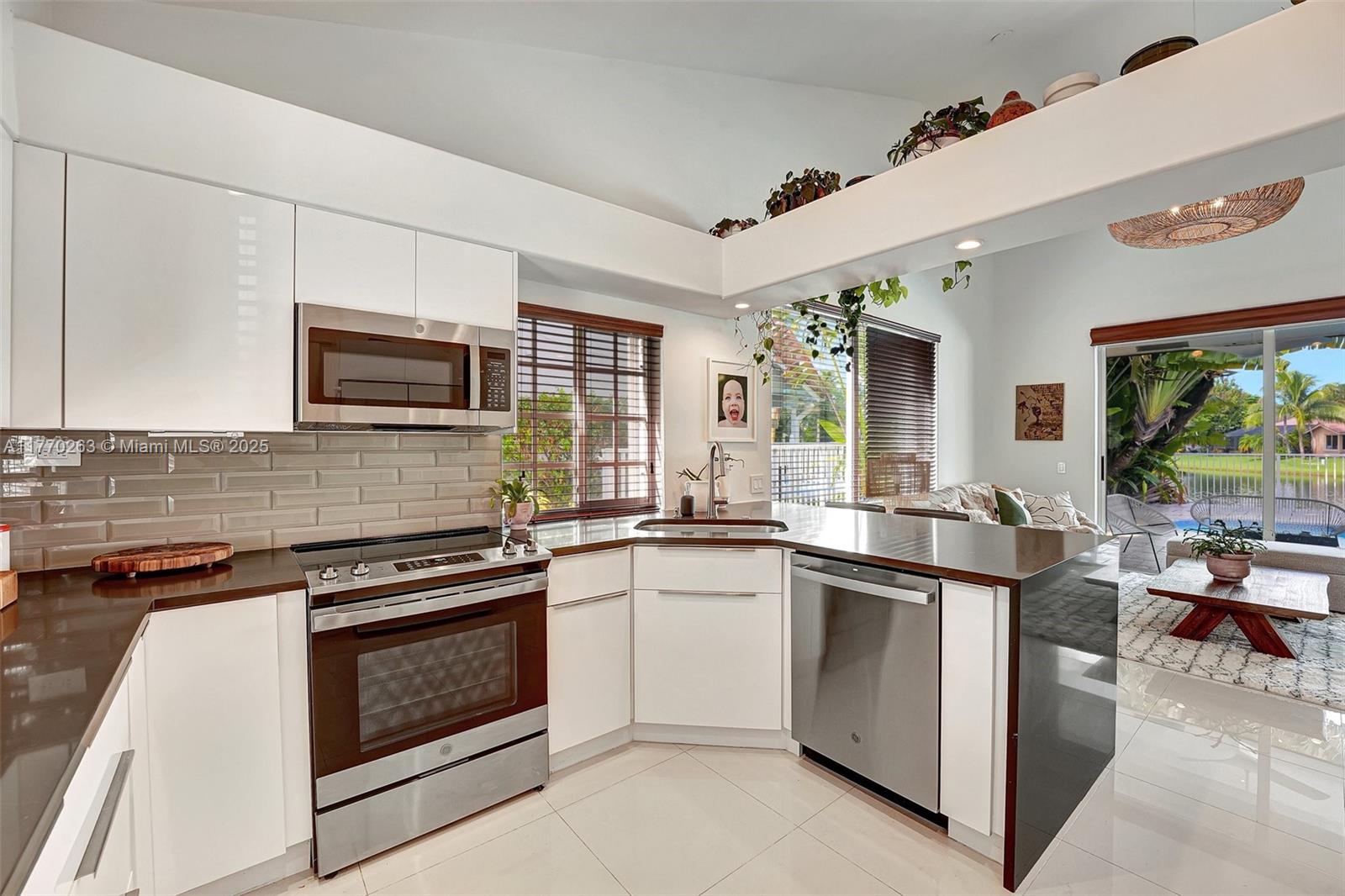 Beautiful home located in the highly desirable gated community of Laguna Springs One. This spacious two-story residence offers 5 bedrooms and 3 full bathrooms, with soaring vaulted ceilings and stunning lakefront views from the poolside patio and yard. The fully remodeled kitchen features sleek Italian-style cabinetry, quartz countertops, and stainless steel appliances. The master suite is conveniently located on the first floor. Additional upgrades include a new roof, new A/C unit, Salt water pool with new pool pump accordion shutters, and fully renovated bathrooms. Centrally located in the heart of Weston, just minutes from Weston Town Center, A+ rated schools, and major highways. This is a must-see property that blends luxury, comfort, and convenience!