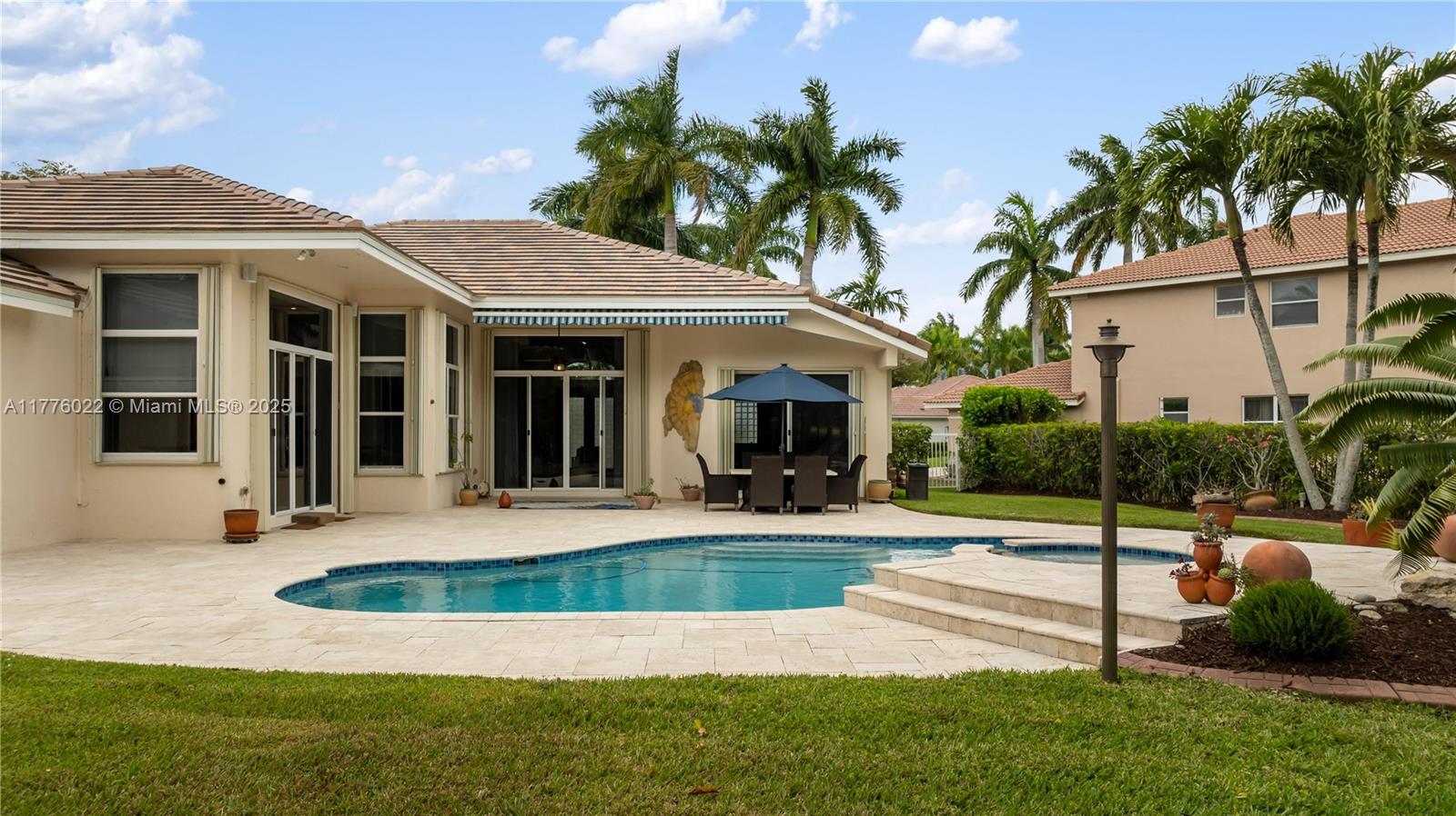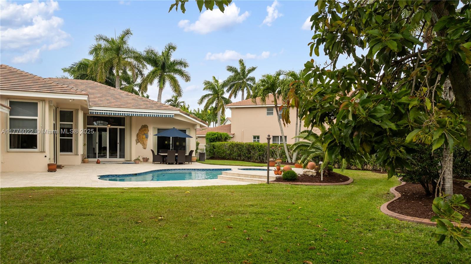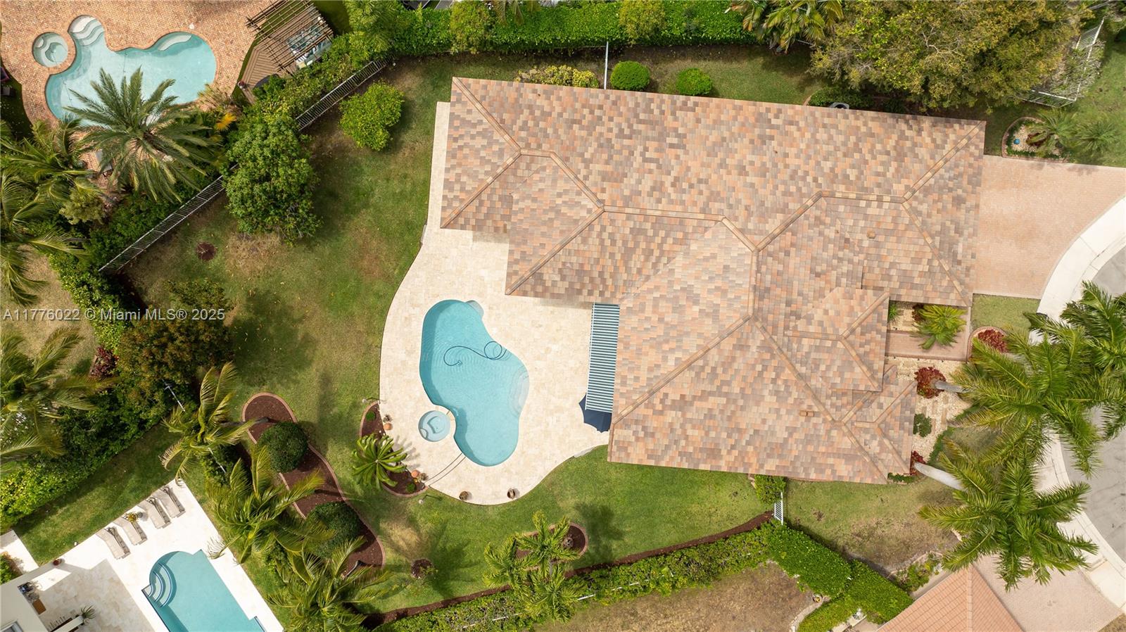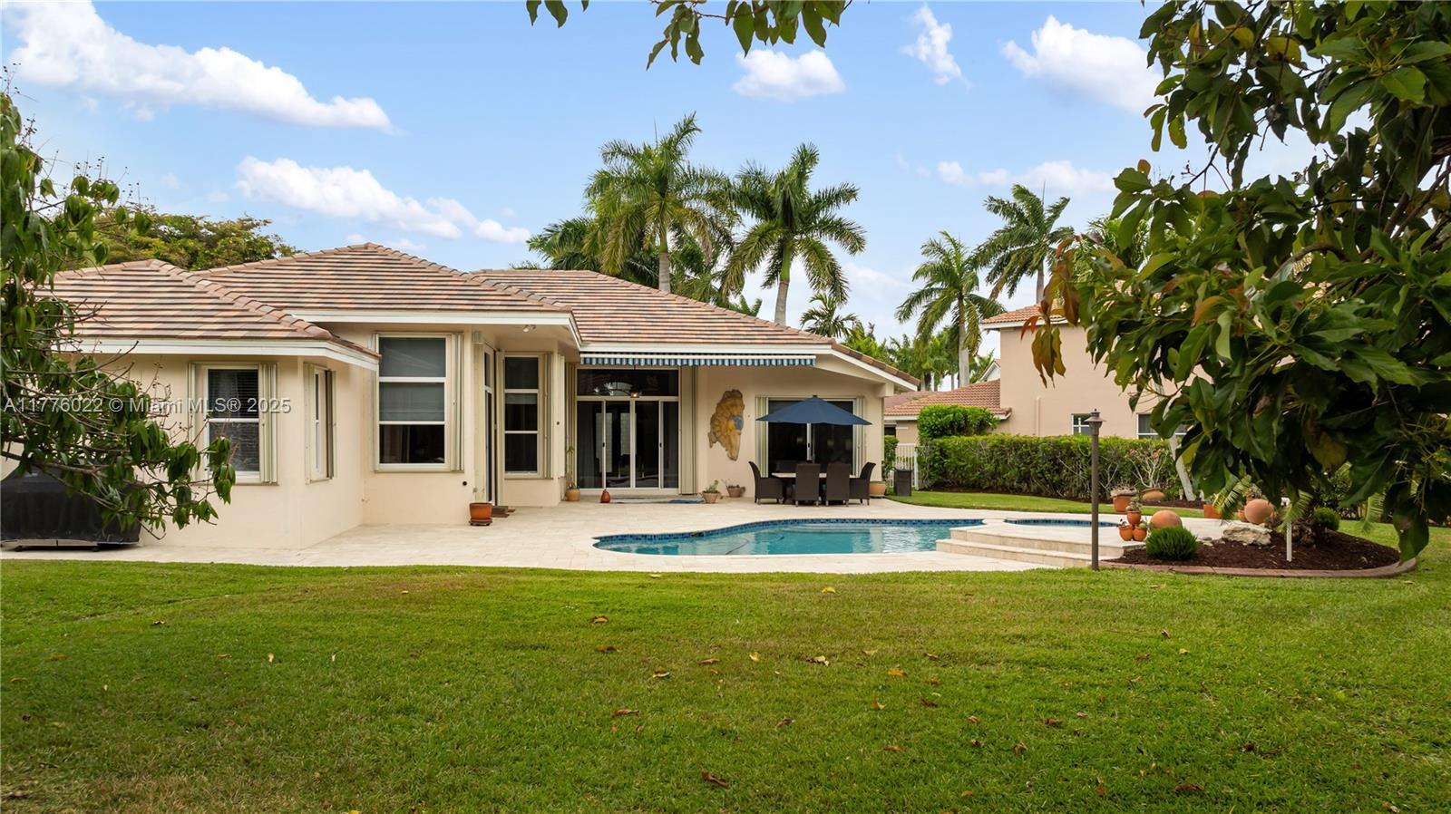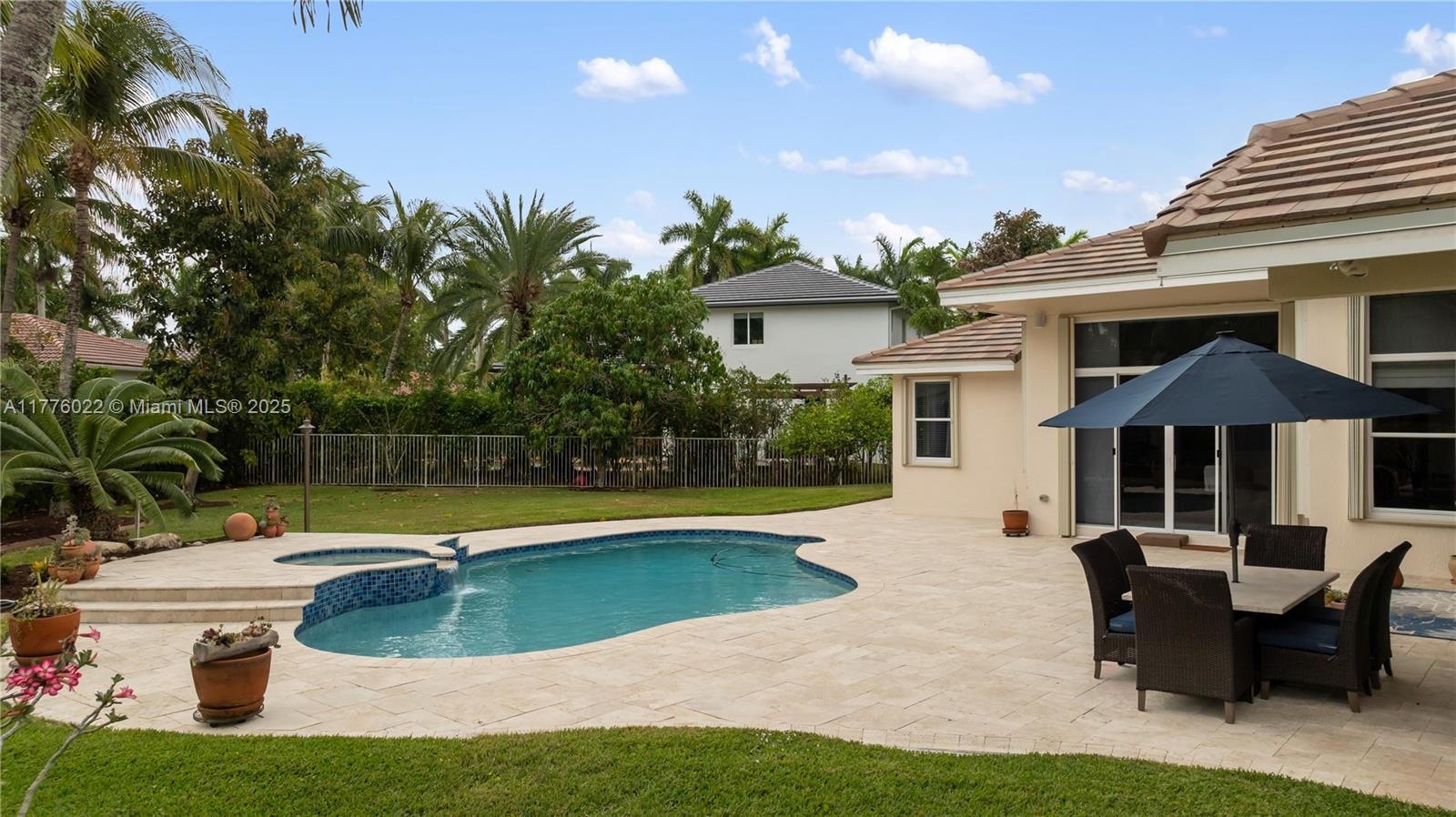 Welcome to this stunning one-story home nestled on a spacious pie-shaped lot of nearly 15,000 sq ft in the middle of a peaceful cul-de-sac. This beautiful residence boasts 5 spacious bedrooms and 3 bathrooms, one bedroom converted into an office offering the perfect balance of comfort and style. Recent upgrades include a brand new roof installed in March 2025, ensuring peace of mind for years to come. The master bath has been beautifully renewed with a sleek, modern style, and the kitchen has been completely remodeled with top-of-the-line appliances. The home showcases elegant marble floors throughout the main areas. Freshly painted both inside and out. Enjoy year-round outdoor living with a private pool perfect for entertaining or relaxing. This home also includes a spacious 3-car garage.