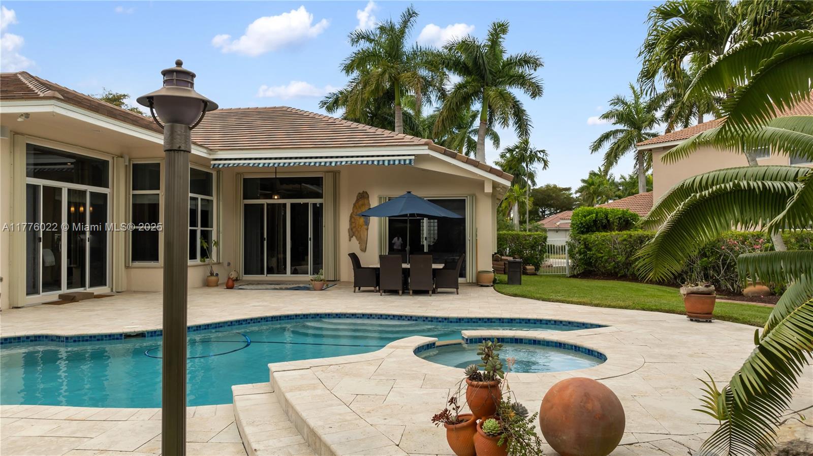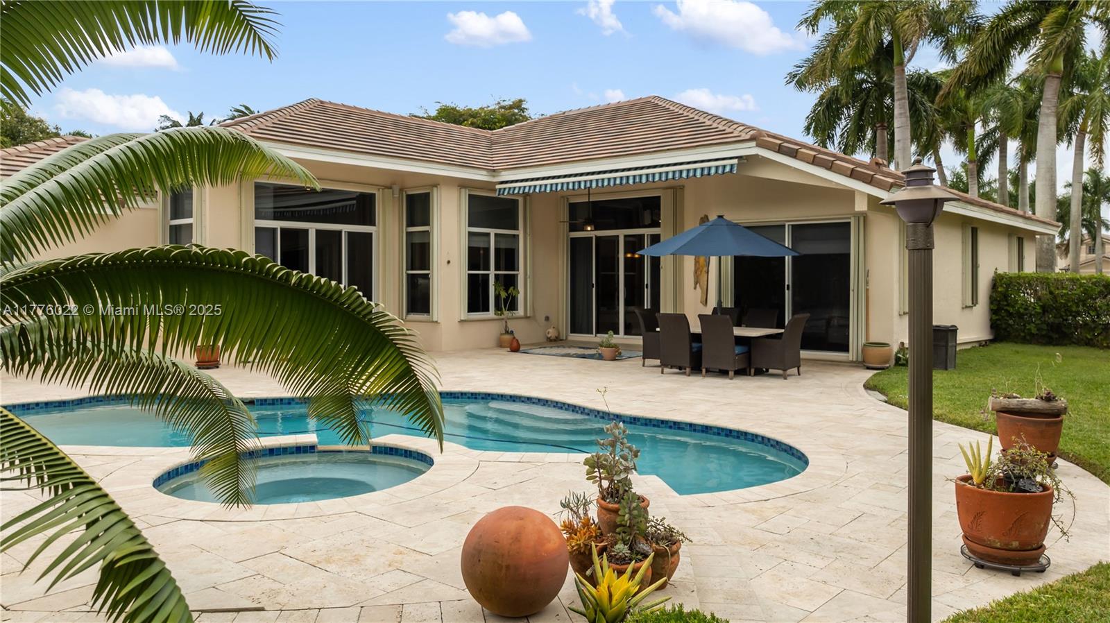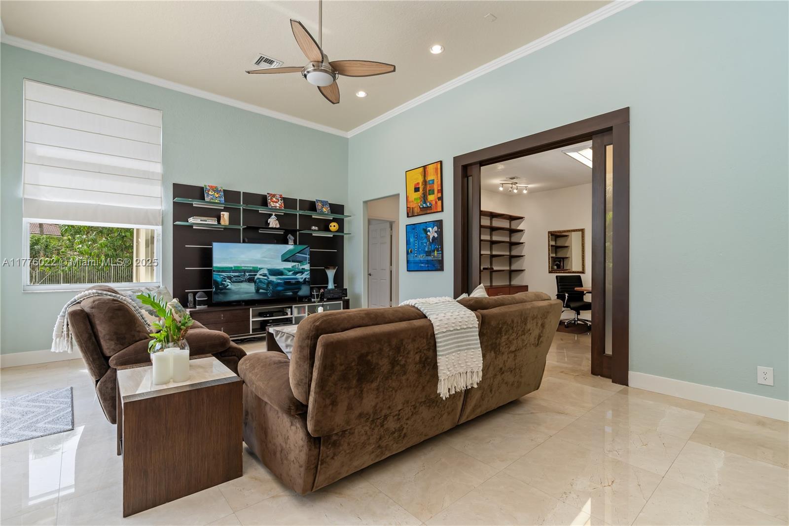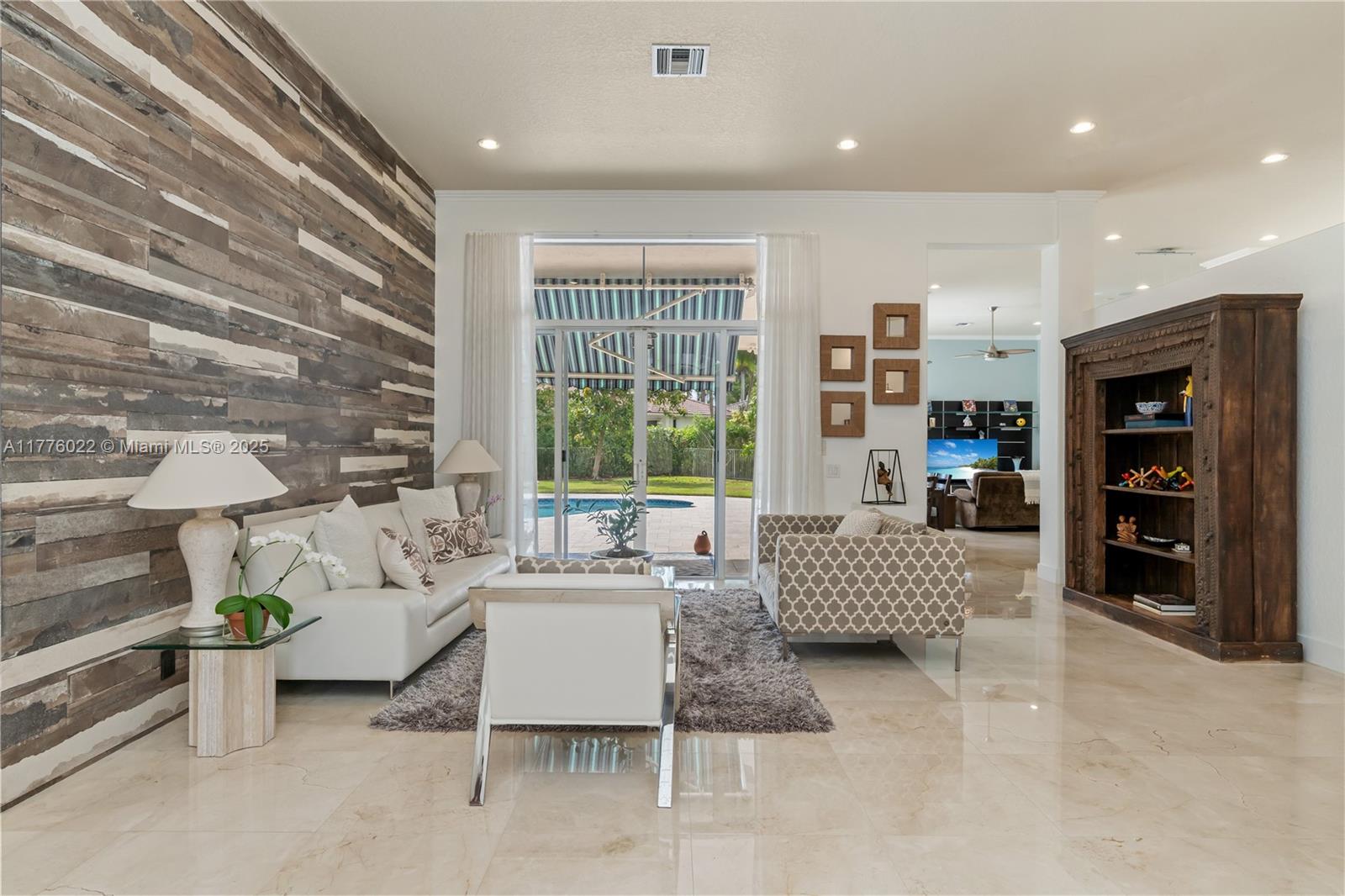 Welcome to this stunning one-story home nestled on a spacious pie-shaped lot of nearly 15,000 sq ft in the middle of a peaceful cul-de-sac. This beautiful residence boasts 5 spacious bedrooms and 3 bathrooms, one bedroom converted into an office offering the perfect balance of comfort and style. Recent upgrades include a brand new roof installed in March 2025, ensuring peace of mind for years to come. The master bath has been beautifully renewed with a sleek, modern style, and the kitchen has been completely remodeled with top-of-the-line appliances. The home showcases elegant marble floors throughout the main areas. Freshly painted both inside and out. Enjoy year-round outdoor living with a private pool perfect for entertaining or relaxing. This home also includes a spacious 3-car garage.