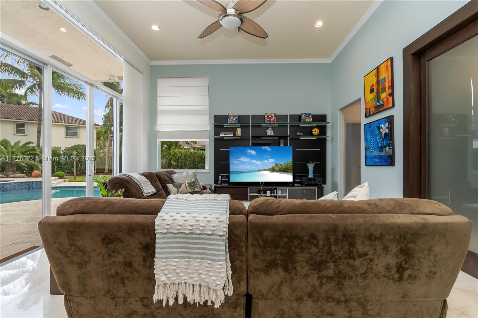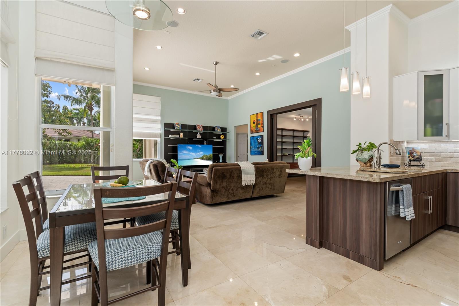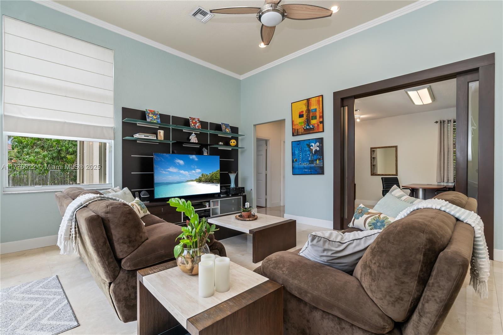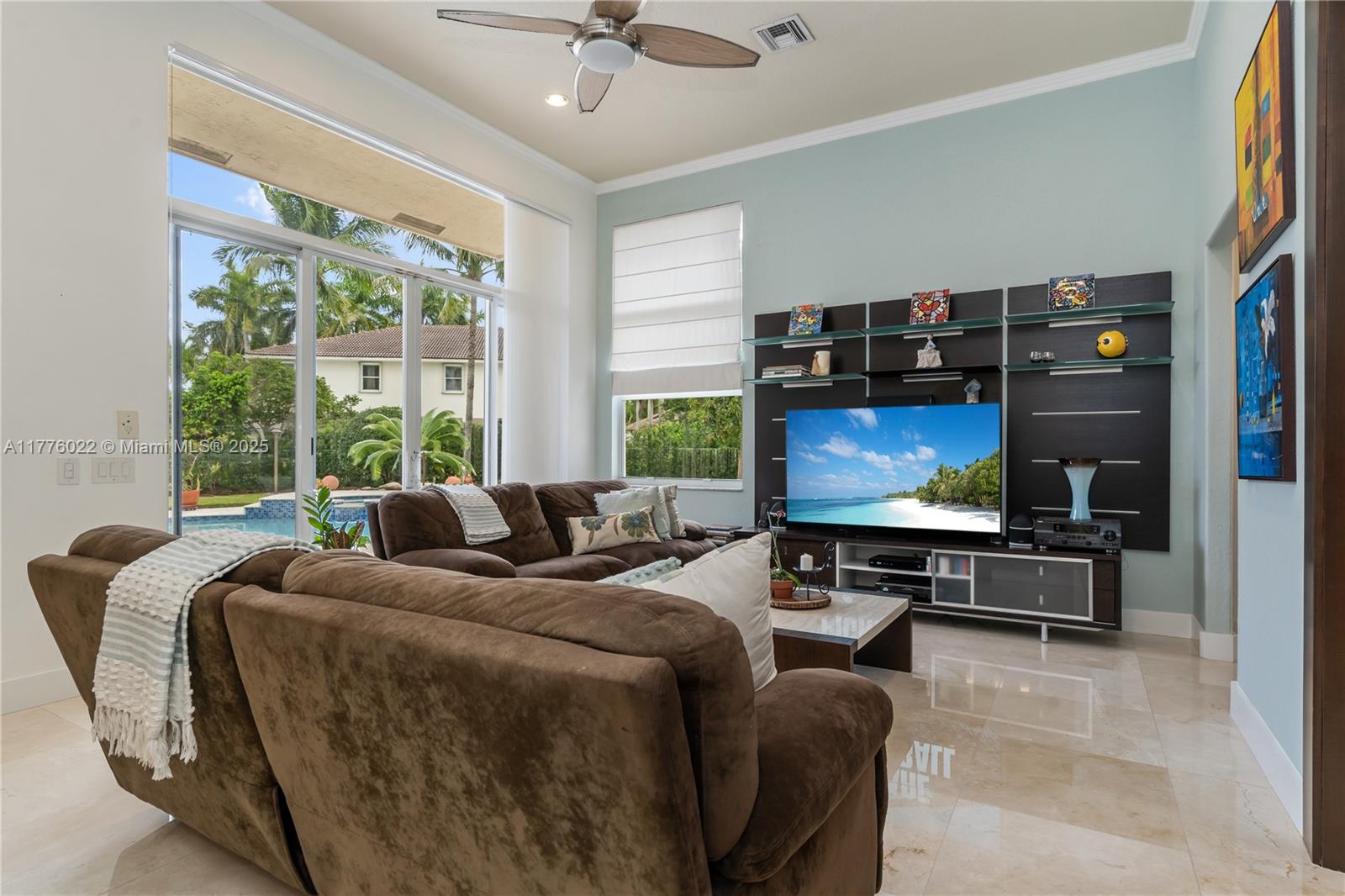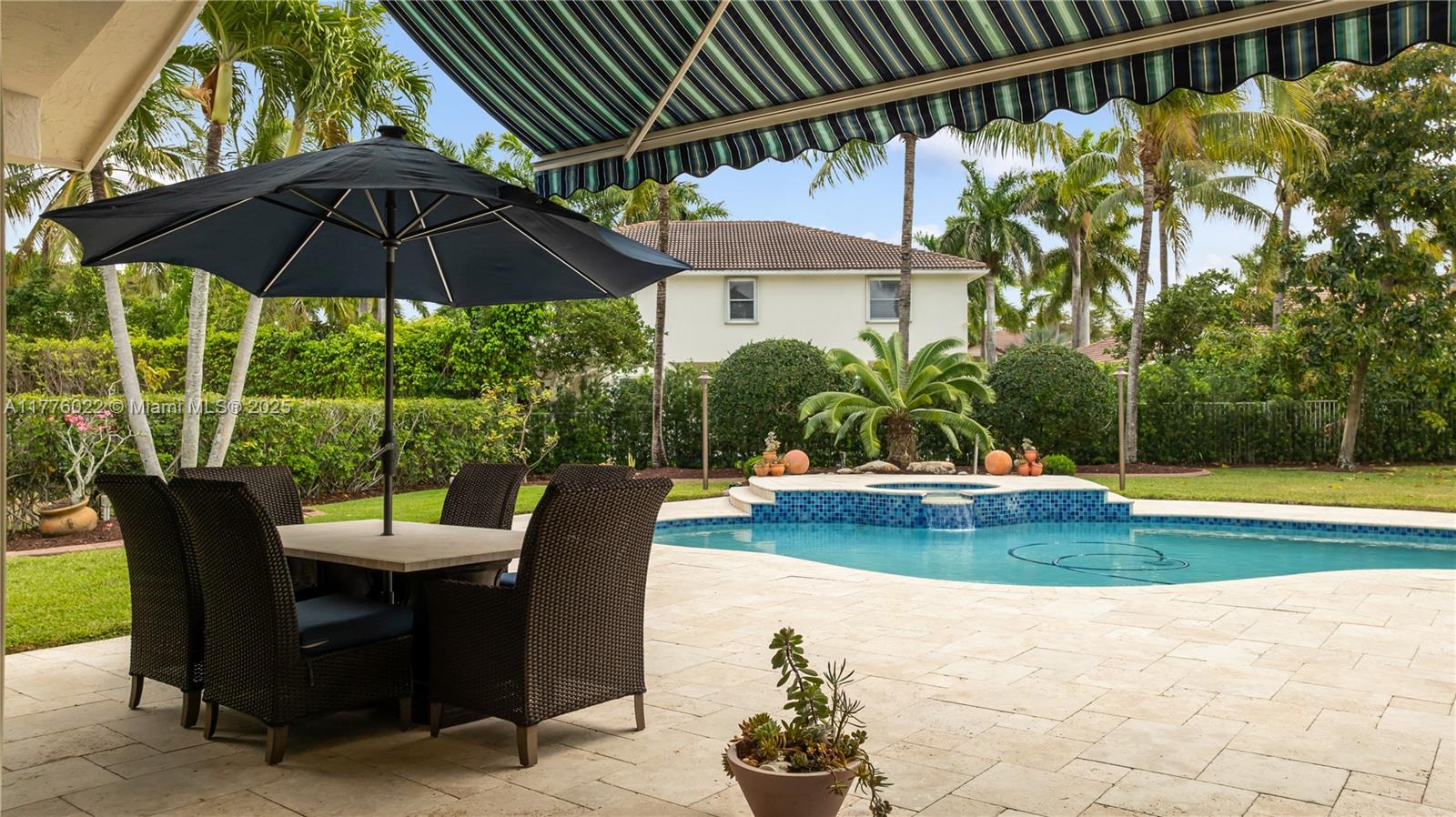 Welcome to this stunning one-story home nestled on a spacious pie-shaped lot of nearly 15,000 sq ft in the middle of a peaceful cul-de-sac. This beautiful residence boasts 5 spacious bedrooms and 3 bathrooms, one bedroom converted into an office offering the perfect balance of comfort and style. Recent upgrades include a brand new roof installed in March 2025, ensuring peace of mind for years to come. The master bath has been beautifully renewed with a sleek, modern style, and the kitchen has been completely remodeled with top-of-the-line appliances. The home showcases elegant marble floors throughout the main areas. Freshly painted both inside and out. Enjoy year-round outdoor living with a private pool perfect for entertaining or relaxing. This home also includes a spacious 3-car garage.
