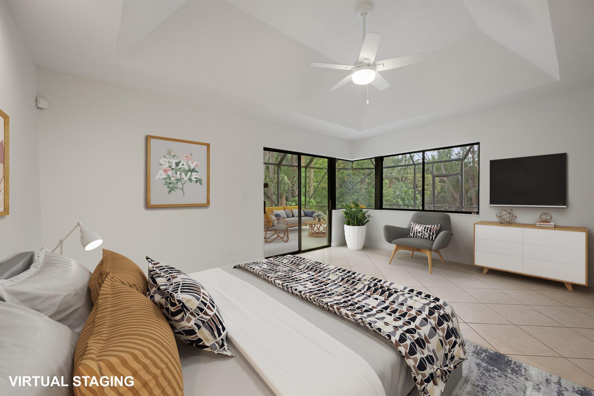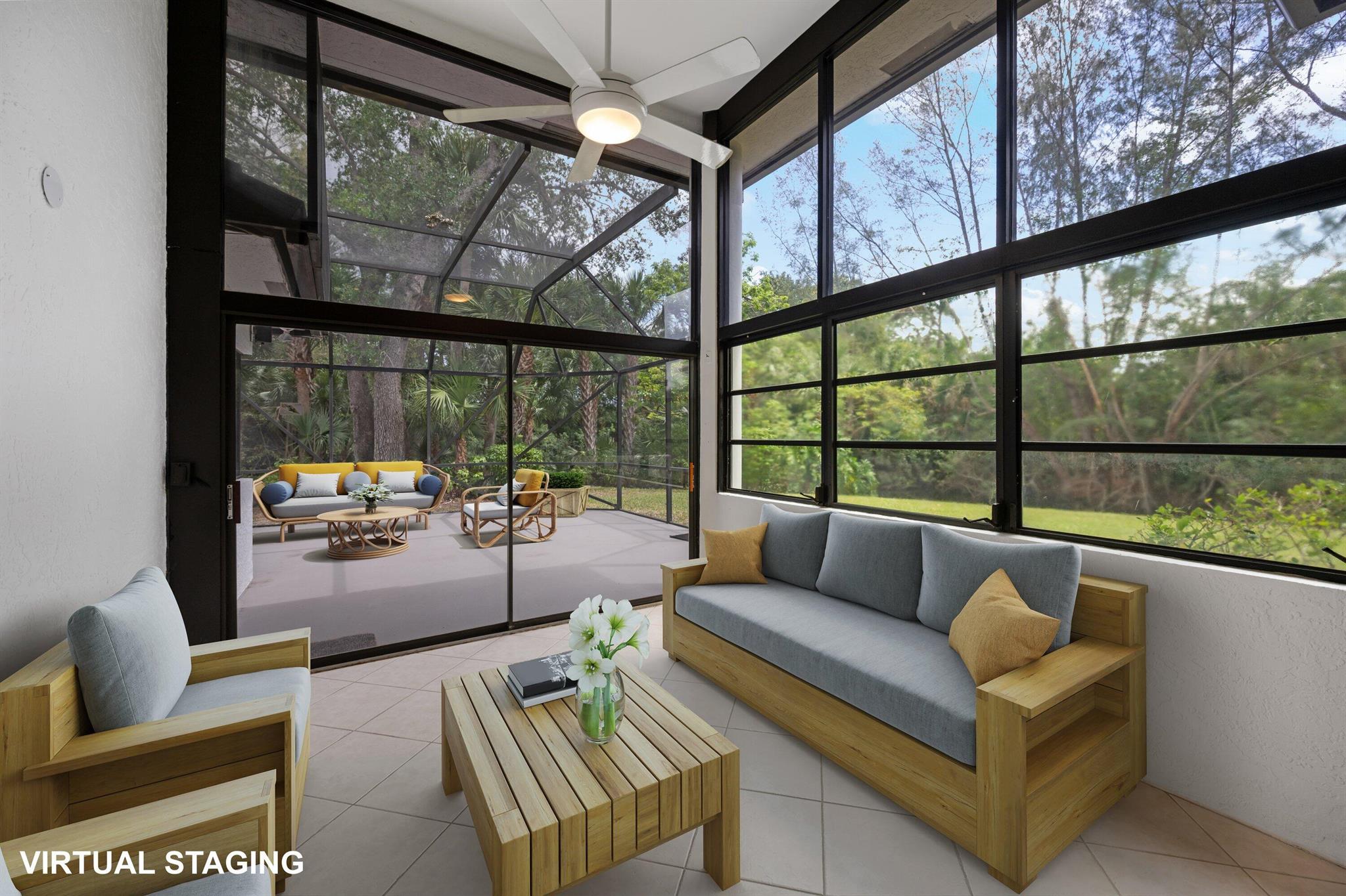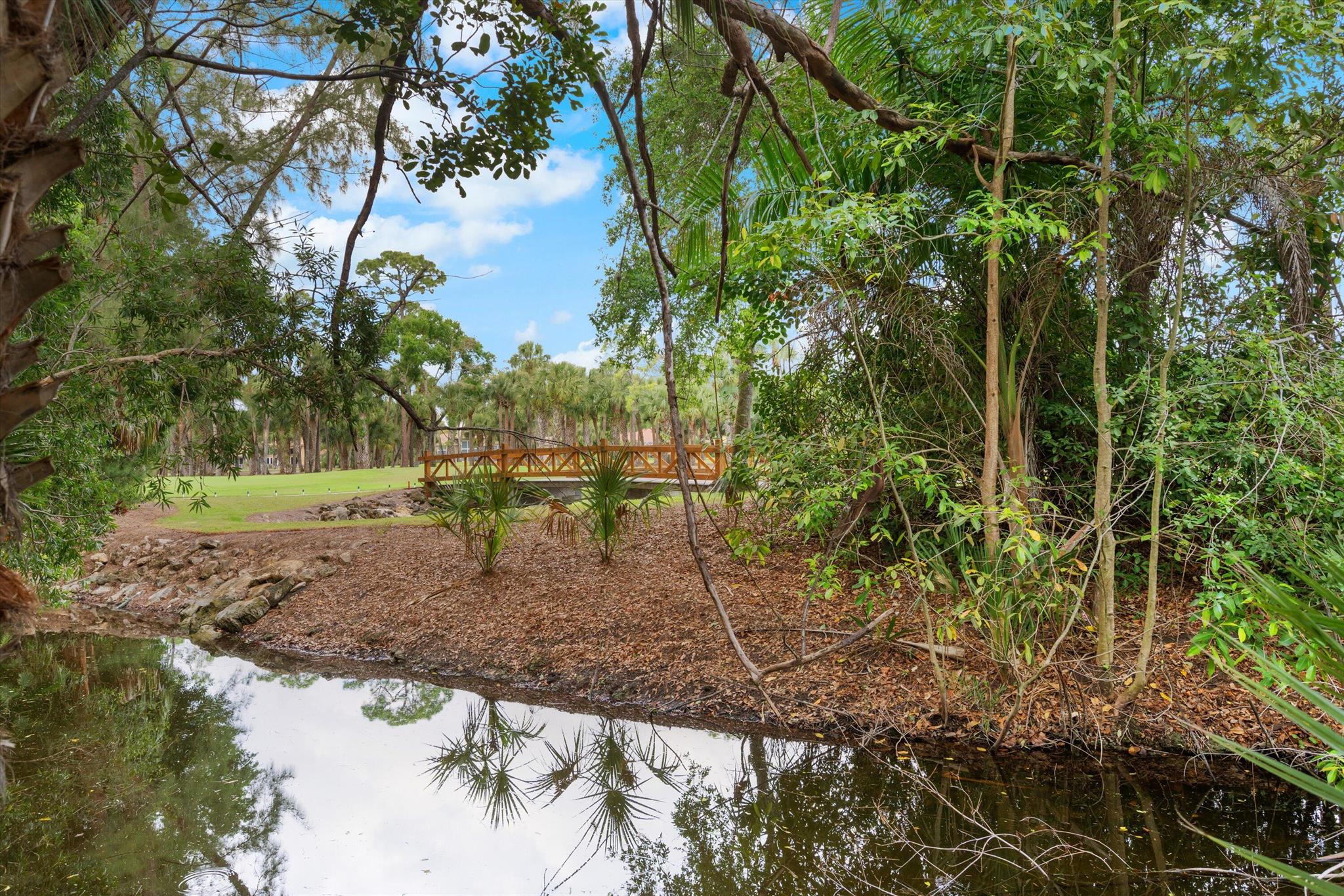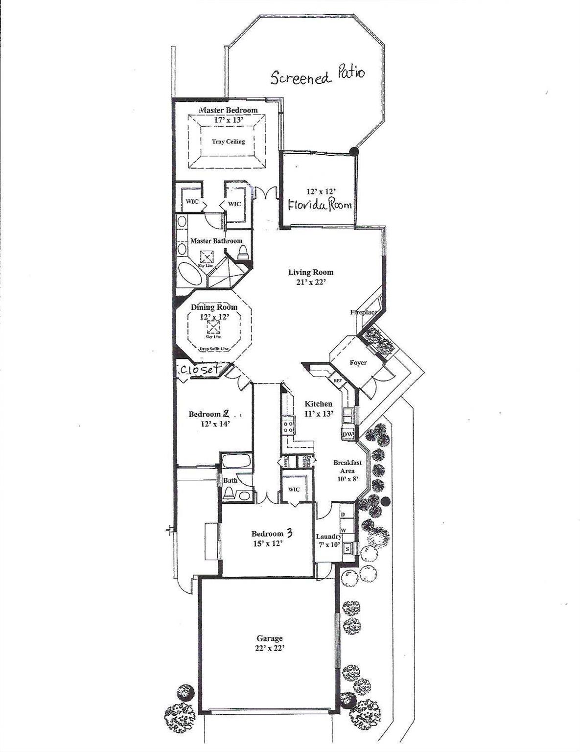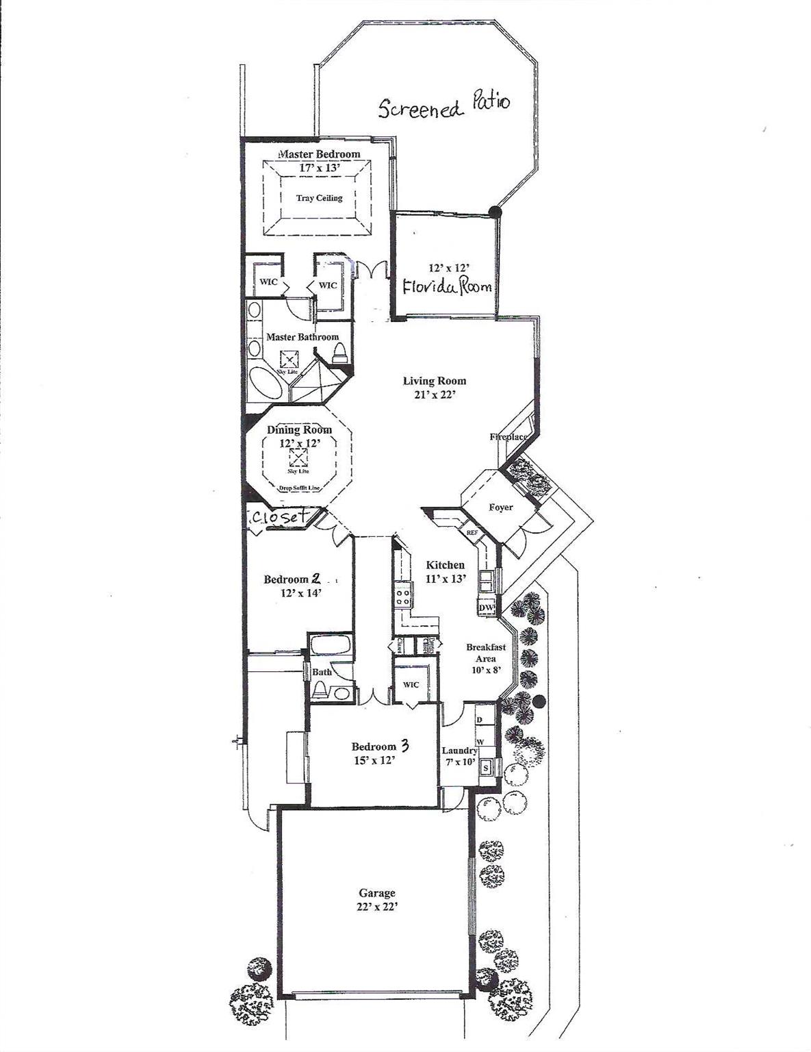 NEWLY PRICED=BUYER'S OPPORTUNITY! Located in beautiful BREAKERS WEST on a secluded corner lot surrounded by native Florida palms, oak trees and water, this private location is like no other! Spacious 1-story home has a NEW TILE ROOF with 3 Bedrooms + Florida Room, 2 Baths and large 2-car garage. Impressive 13 ft ceilings in main living areas and 8ft sliding doors with 4ft transom windows above offers both spaciousness and great natural light. Living Room has tile floors, a modern designed fireplace and opens the octagonal shaped Dining Area. The spacious eat-in kitchen has ample counter space, a pantry closet and seamless glass window in the Breakfast nook. Conveniently located off the kitchen is a separate Laundry Room with utility sink and cabinets above.