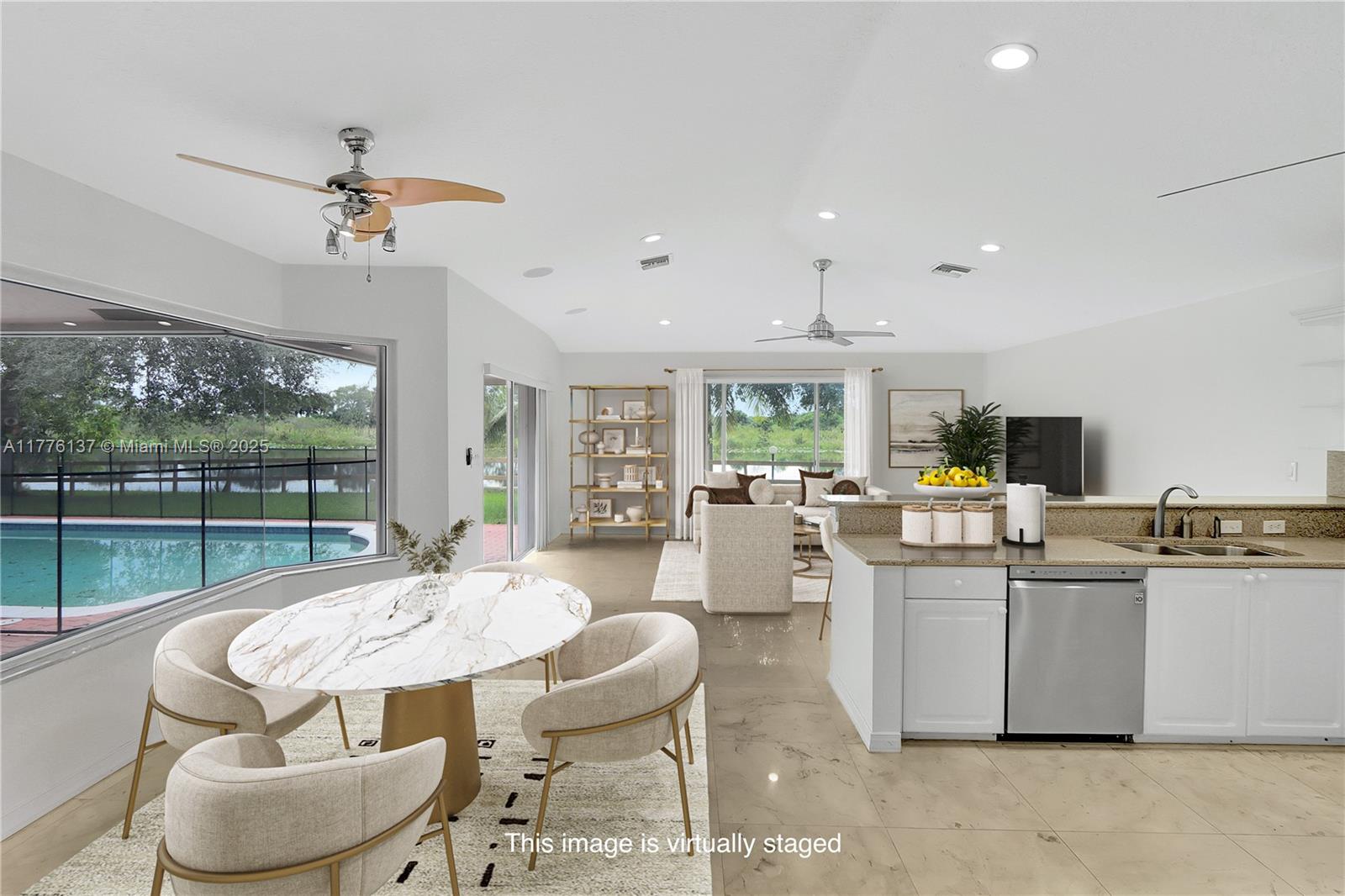 Discover this stunning lakefront home in the coveted Trails of Pembroke Pines, a sought-after equestrian community! This spacious 4-bedroom, 2-bathroom pool home sits on a sprawling 37,634 sq ft lakefront lot. The inviting layout features formal living and dining rooms, a generous family room, and eat-in kitchen—perfect for relaxation and entertaining. Sleek marble floors flow seamlessly to an outdoor terrace with a sparkling pool and vast lawn with breathtaking lake views. Additional perks include a two-car garage, ample driveway space, and a dedicated laundry room. Located in a peaceful neighborhood with top-rated schools, this home offers quick access to U.S. 27, I-75, Sawgrass Expressway, and I-595—putting convenience at your doorstep. Make it yours today!