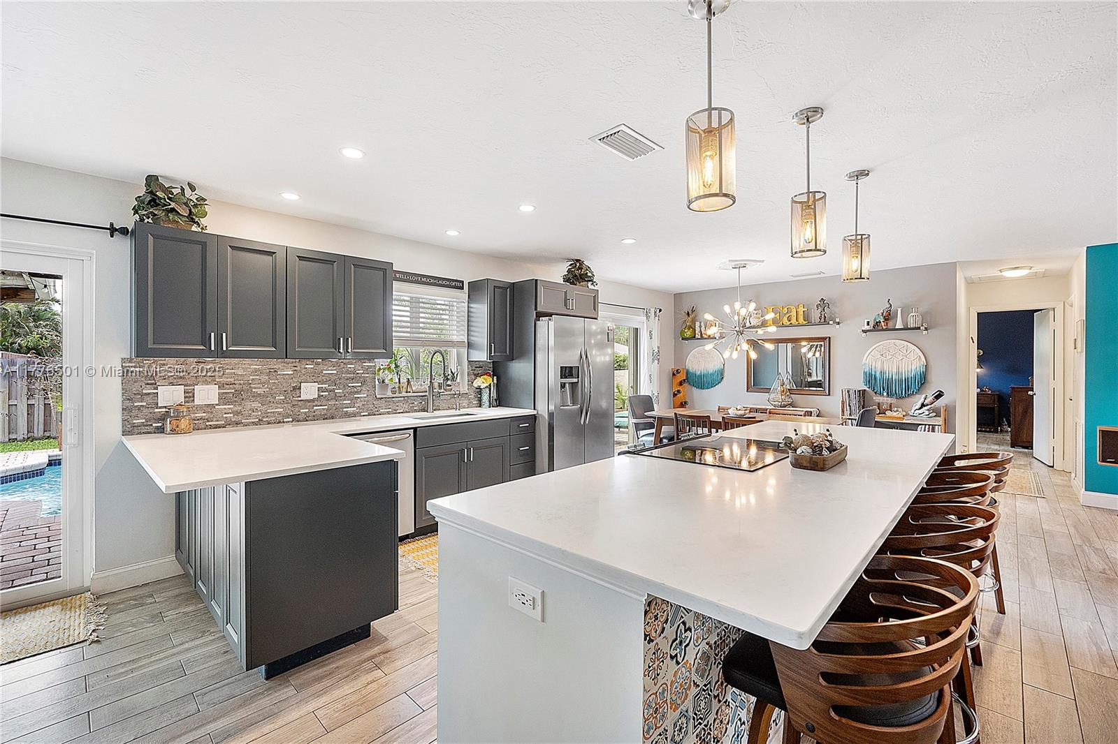 Discover modern living in this beautifully updated 3-bed, 2-bath home in Palm-Aire Village East. Nestled on a quiet cul-de-sac, this home features a bright open floor plan, sleek finishes, and impact windows. Wood tile flooring throughout the home. The stylish kitchen boasts quartz countertops, stainless steel appliances, and a spacious island. Modernized bathrooms were thoughtfully designed. The entertainer’s backyard includes an outdoor bar, oversized swimming pool, and ample space for gatherings. Located minutes from top schools, including Calvary Christian Academy, plus shopping, dining, and beaches. Move-in ready and perfectly located—don’t miss this opportunity!