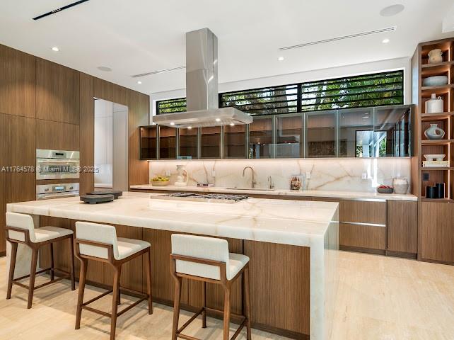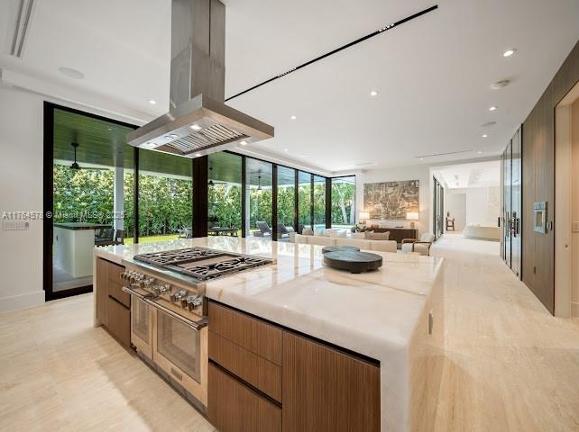 Stunning new home located on beautiful Granada Blvd.. Its grand entrance with spectacular swivel front door, exterior and interior water features and a 25 ft travertine wall sets the tone for the sophistication within. This breathtaking home offers a keystone fireplace, stone floors, elevator & mud room. Its jaw dropping kitchen is a culinary dream, with a butler's pantry & separate wine closet. Living areas overlook the outdoor oasis with pool & summer kitchen, perfect for alfresco dinning and entertaining. The family/man cave room includes a dazzling bar that is a work of art. Gorgeous primary suite and with covered terrace and spectacular bath with steam shower, free standing tub, and outside shower that transcends you to a 5 star hotel. Come see this masterpiece and make it yours.