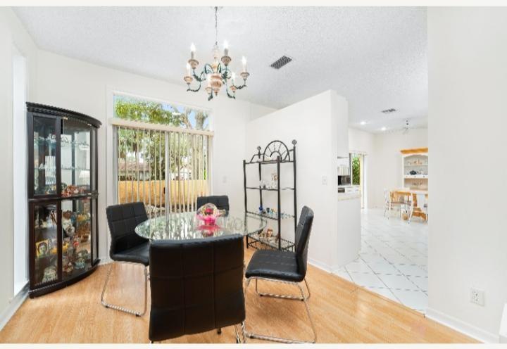 WOW FREE STANDING VERY LARGE TWO STORY 4 BEDROOM 3 FULL BATHS WITH A GARAGE. THIS WAS THE ORIGINAL MODEL HOME, SO IT HAS NICE EXTRAS! THERE IS ONE BEDROOM AND FULL BATH DOWNSTAIRS, THREE BEDROOMS INCLUDING THE PRIMARY BEDROOM UPSTAIRS. LOVELY PRIMARY BATH FEATURES FLOATING VANITY, ROMAN TUB & SEP. SHOWER. SECONDARY BEDROOMS ARE LARGE AND SHARE A AJOINING STYLE BATH. VERY LARGE EAT IN KITCHEN WITH WHITE CABINETS AND SLIDING GLASS DOORS TO YOUR BIG BACKYARD. LIVING AREAS INCLUDE LIVING ROOM, WITH A WET BAR AND DINING ROOM WHICH ALSO HAS SLIDERS LEADING TO YOUR YARD. BIG COMMUNITY POOL CLOSE BY. PORTOFINO 2 ASSOCIATION FEE COVERS ROOF, PAINTING, OUTSIDE OF HOME BUIDING INSURANCE, WATER & ALL OUTSIDE LANDSCAPING MAINT. ETC... GREAT BUY & EASY LIVING HURRY COME SEE!