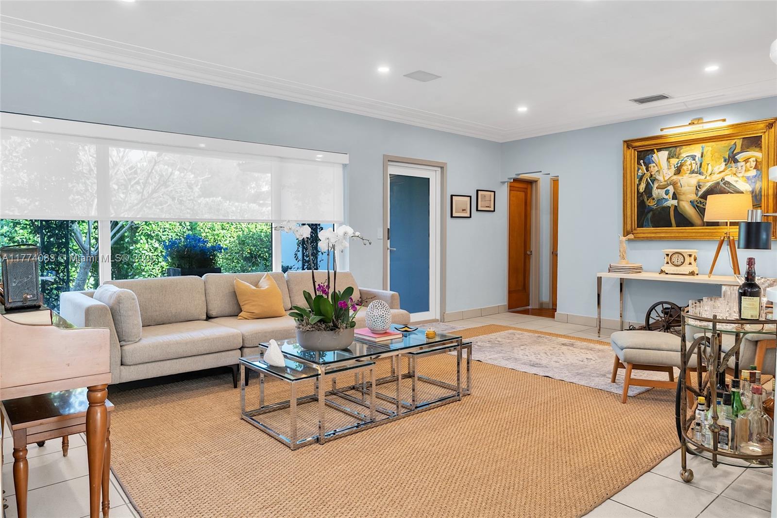 MUST SEE! An extraordinary opportunity in Miami Beach's most coveted area surrounded by the country's most significant properties (WSJ). The heart of the home dazzles with seamless indoor-outdoor flow, where sun-drenched living spaces open to the pool area with distinct entertainment zones. The kitchen leads into a formal dining, while dual living areas capture eastern daylight and enchanting pool reflections by moonlight. This home is designed to offer livable luxury with a thoughtful wing design three bedrooms on one side, a private fourth bedroom on the north. Voice-activated smart systems and phone controlled security elevate modern living. The intelligent layout ensures privacy and comfortable coexistence. This meticulously maintained residence is where luxury meets functionality.