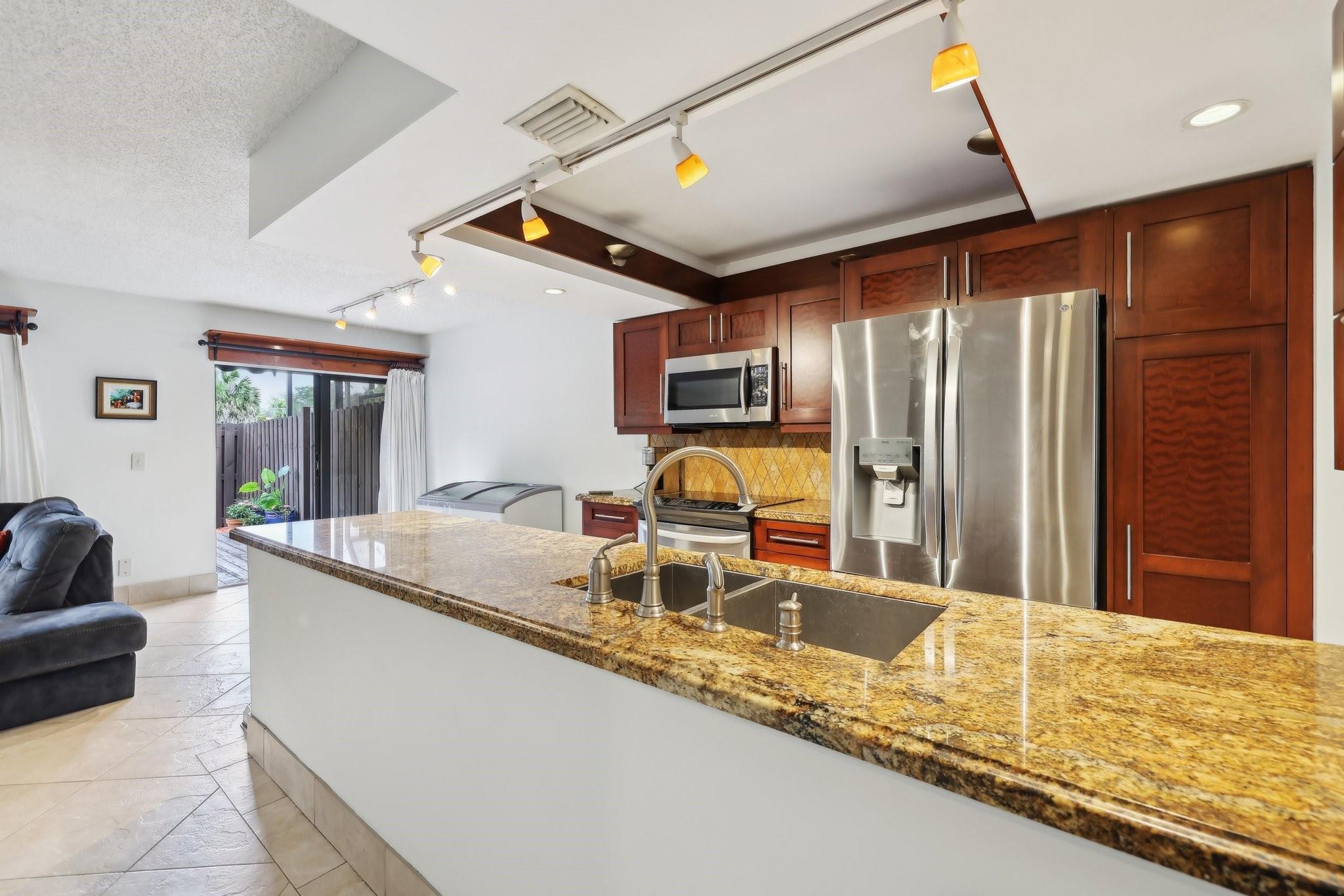 Great location! Don't miss this spacious 1,912 sq. ft. 3 bedroom, 2.5 bath townhome in Villas of Plantation. Roof replaced in 2023 with new separation wall & built-up insulation for positive water run-off. New fence front & back 2025. On demand water heater. Accordion hurricane shutters on 2nd level. Two dedicated parking spaces; one at front of house. Large deck for outdoor entertaining, retractable awning, and direct access to Marcano Estates Park through your backyard gate! Neutral décor. Tile floors throughout. Kitchen features Granite counter-tops, stainless steel appliances, updated cabinetry. Updated baths. Amenities include Pool and Tennis Court. Convenient to major throughways, shopping, entertainment venues, restaurants, schools, etc.
