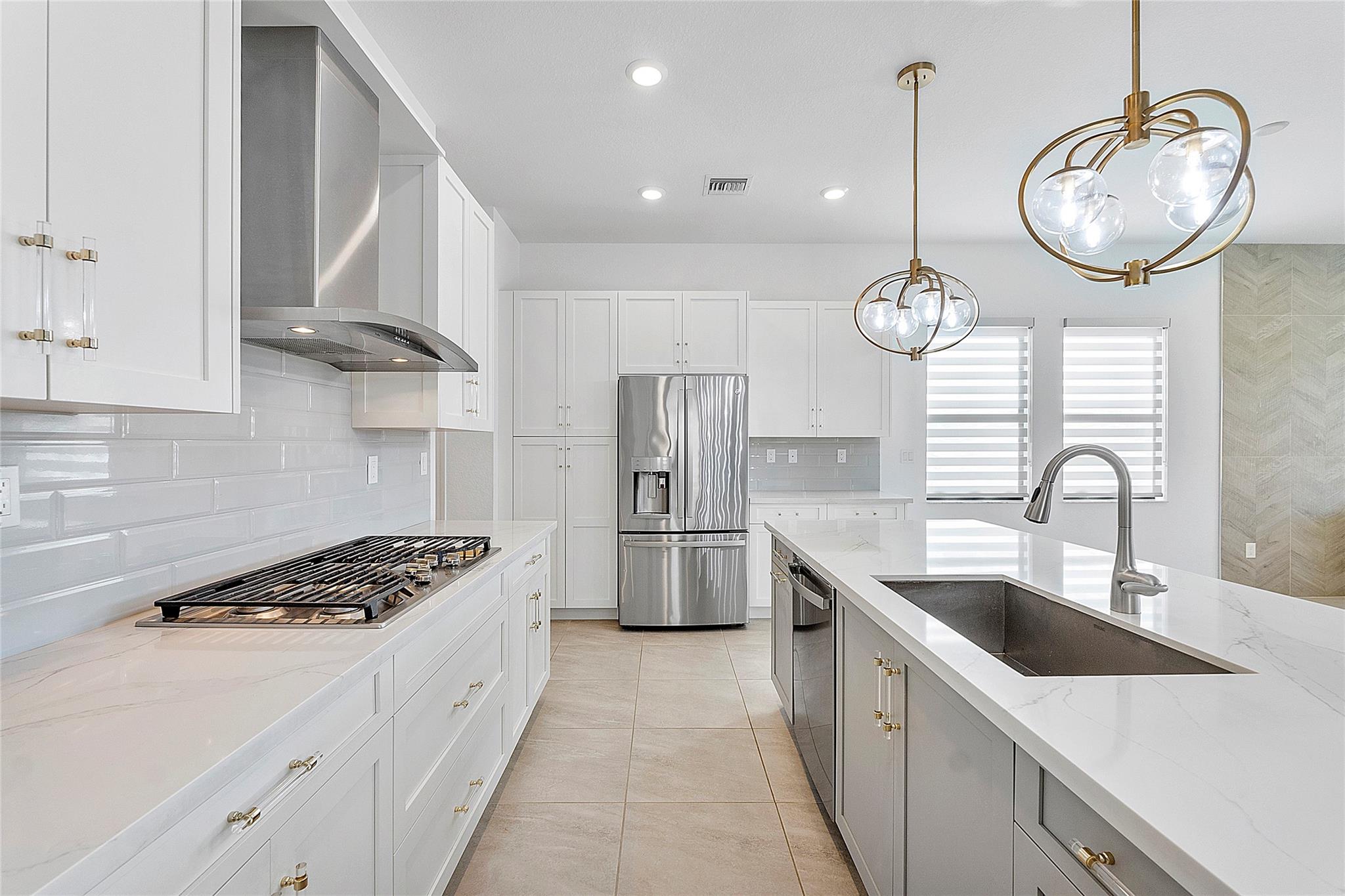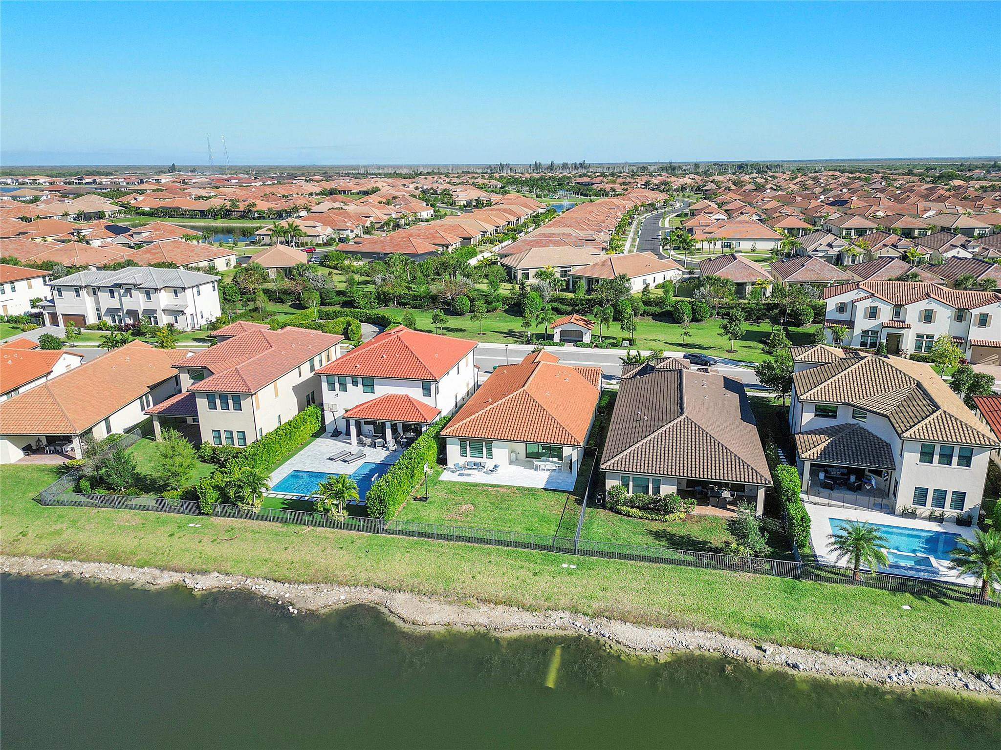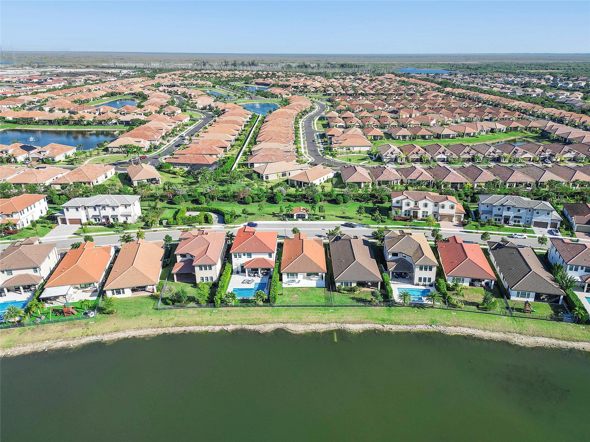 This home was completed in December of 2020 with upgrades and features that include: extended paver 3 car driveway, expansive sand-blasted marble patio deck, fully fenced yard with incredible lake views, a custom bedroom closet, custom hanging wine wall in living area, chevron-tiled living room wall, zebra blinds on all windows and electric zebra blinds on the sliders, new high-end vinyl flooring in the bedrooms and neutral tile in living areas and bathrooms, upgraded kitchen with white quartz tops, white cabinets, gray island with soft close pull-outs and designer hardware, ssl appliances, natural gas cooktop, custom wall paper and high end light fixtures, lots of space for an oversized pool and this home can easily convert to have a 4th bedroom. This home is a must see…