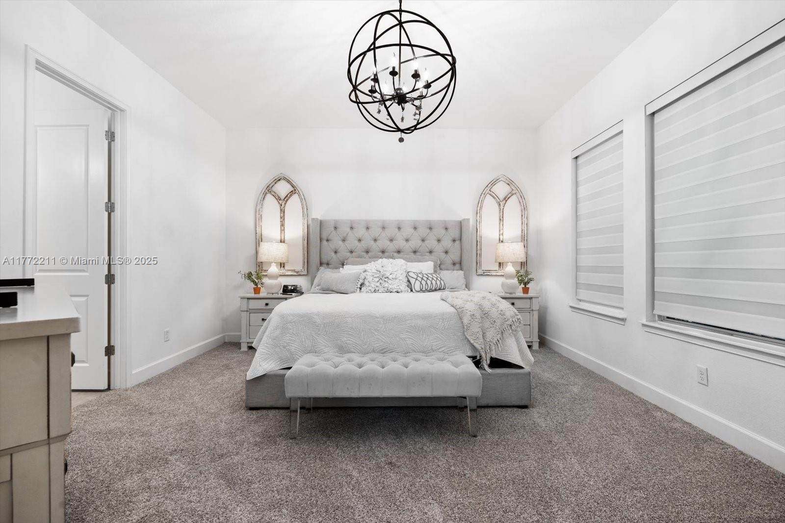 Welcome Home! This stunning 4BD/3BA + flex room, built in 2022, has 2,943 SqFt of luxurious living space. Situated on a pond, every detail has been upgraded w/ HIGH-END LUXURY FINISHES, including appliances and light fixtures. 2 car garage, enlarged paver driveway, & upgraded landscaping for an impressive curb appeal. A true backyard oasis built for privacy, complete with a full screened SALTWATER & HEATED POOL, astroturf, Bahama shutters, new outdoor lights, and a fan. Perfect for relaxing or entertaining! Inside, you'll find custom blinds, window tinting, and a custom-built foyer. Features a whole-house water filter and softener system, a scent system, upgraded tech-level WiFi & cameras, and SO MUCH MORE!