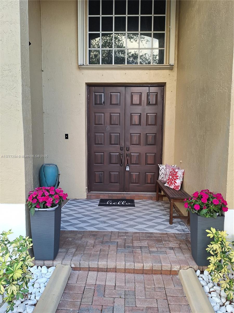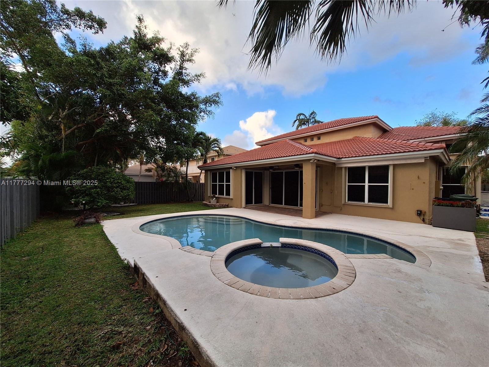 This two-story pool house has it all!! Brand NEW ROOF (April 2025), newly and fully remodeled bathrooms, upgraded gourmet kitchen, 20' high ceilings, a huge primary suite, oversized dining and great rooms, a loft that can be used as a office/game room, epoxy floored garage, and an extended driveway. Interior is freshly painted and with brand new baseboards. Other amenities include accordion hurricane shutters, a patio awning, and a meticulous landscape. Gated community with gym and pool. Association fees cover 24/7 physical security, lawn maintenance and irrigation, fiber optic internet/ cable, and security alarm services.