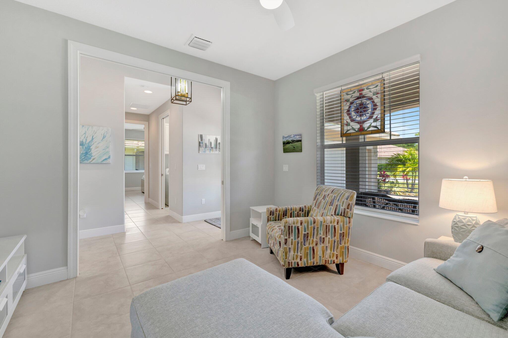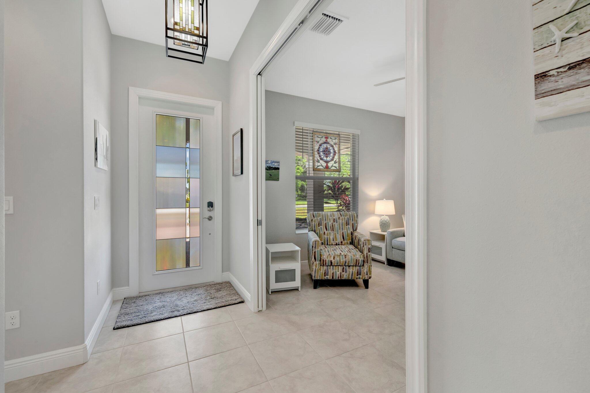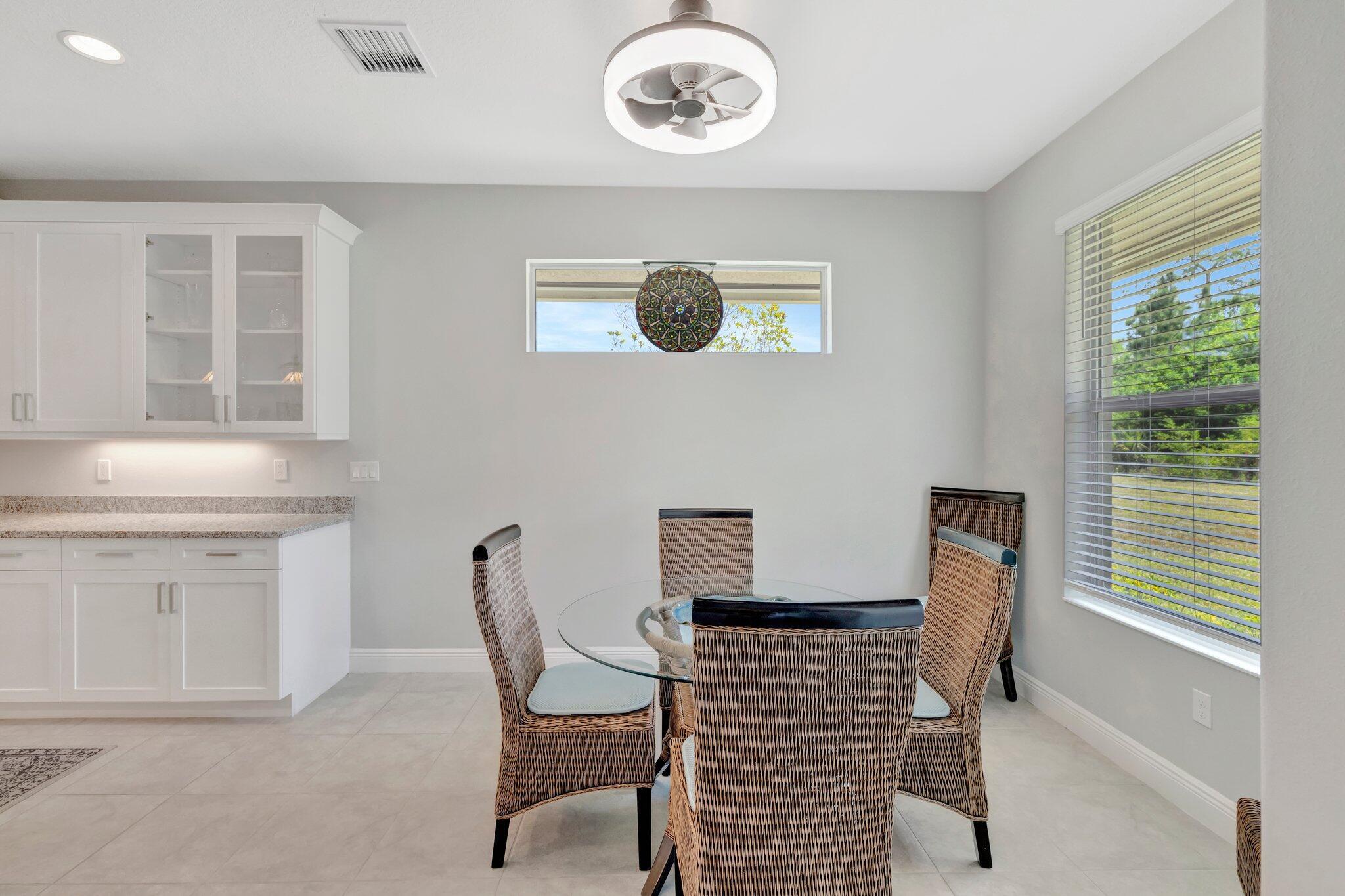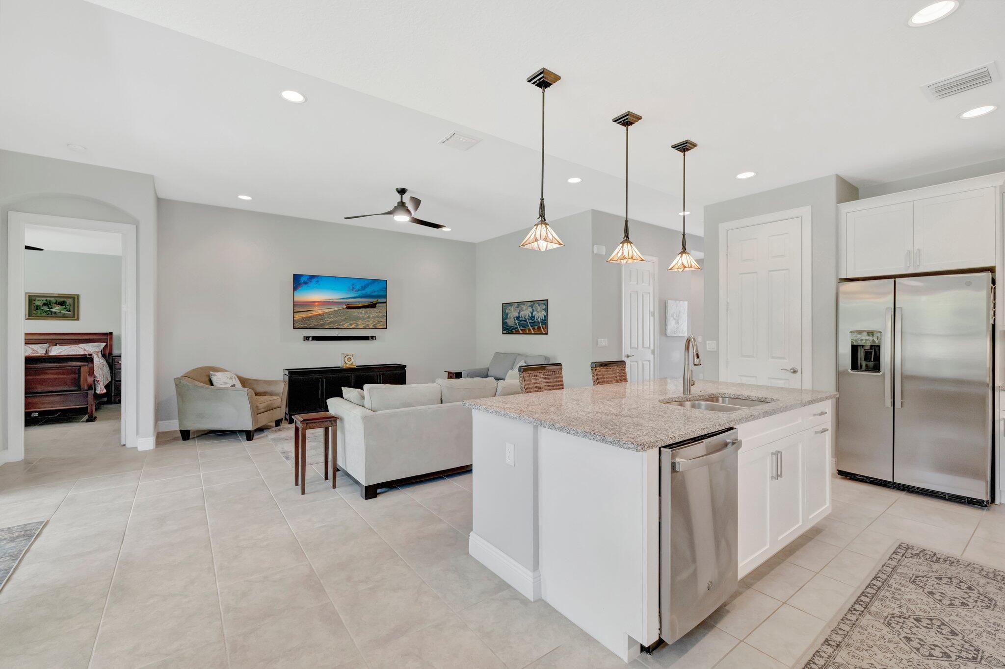 Built in 2022, this ranch style home offers an open-concept layout with high ceilings and tile throughout. The upgraded kitchen boasts a large island, white cabinetry, granite counter tops and stainless-steel appliances. The primary suite features a luxurious roman shower and dual sinks. The home backs up to a wooded area for additional privacy. The large side-entry garage accommodates 2 vehicles, a golf cart, and storage. As a resident, you will have access to an 18-hole championship golf course, tennis courts, vibrant dining and social activities. Membership is not mandatory. The low HOA covers water, sewer, cable, high-speed internet, community security, and common area maintenance. Meadowood Golf and Tennis Club, the Treasure Coasts hidden gem for Florida living!
