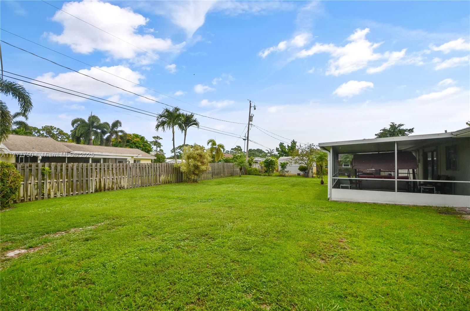 BRAND NEW GABLE/HIP ROOF! (12/10/2024) NO HOA in Florida Gardens, less than a mile from Lake Worth Road & Turnpike. Transferable Termite Bond (3/1/2025) hot water heater (2022) adorable 3/2 w/ all ceramic, vinyl & laminate flooring, large oak tree providing shade for the front exposure of house & yard, this SFH sitting perfectly on fenced in 1/4+ acre. The septic tank was replaced in 2021, & new drain field in 2018. Both oven& fridge were replaced in 2018 & new A/C installed 5/3/2017. The propane tank currently fuels the dryer, but new lines could be added to fuel a future outdoor kitchen, future tankless hot water heater or oven in the kitchen. The storm shutters make this house the perfect Florida home to purchase for a first time home buyer, owner who wants to down-size, or investor
